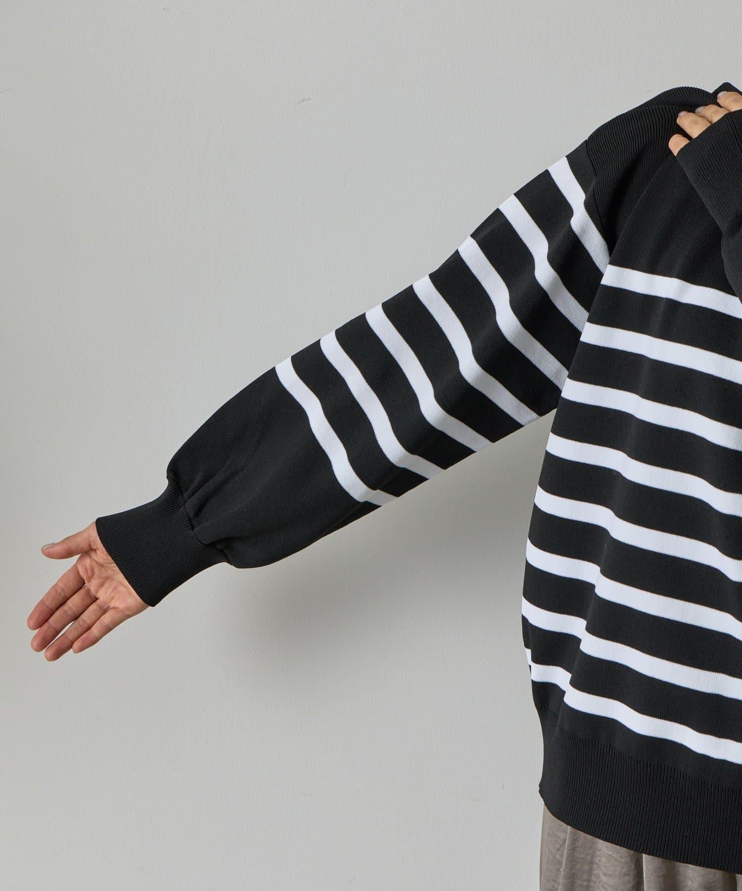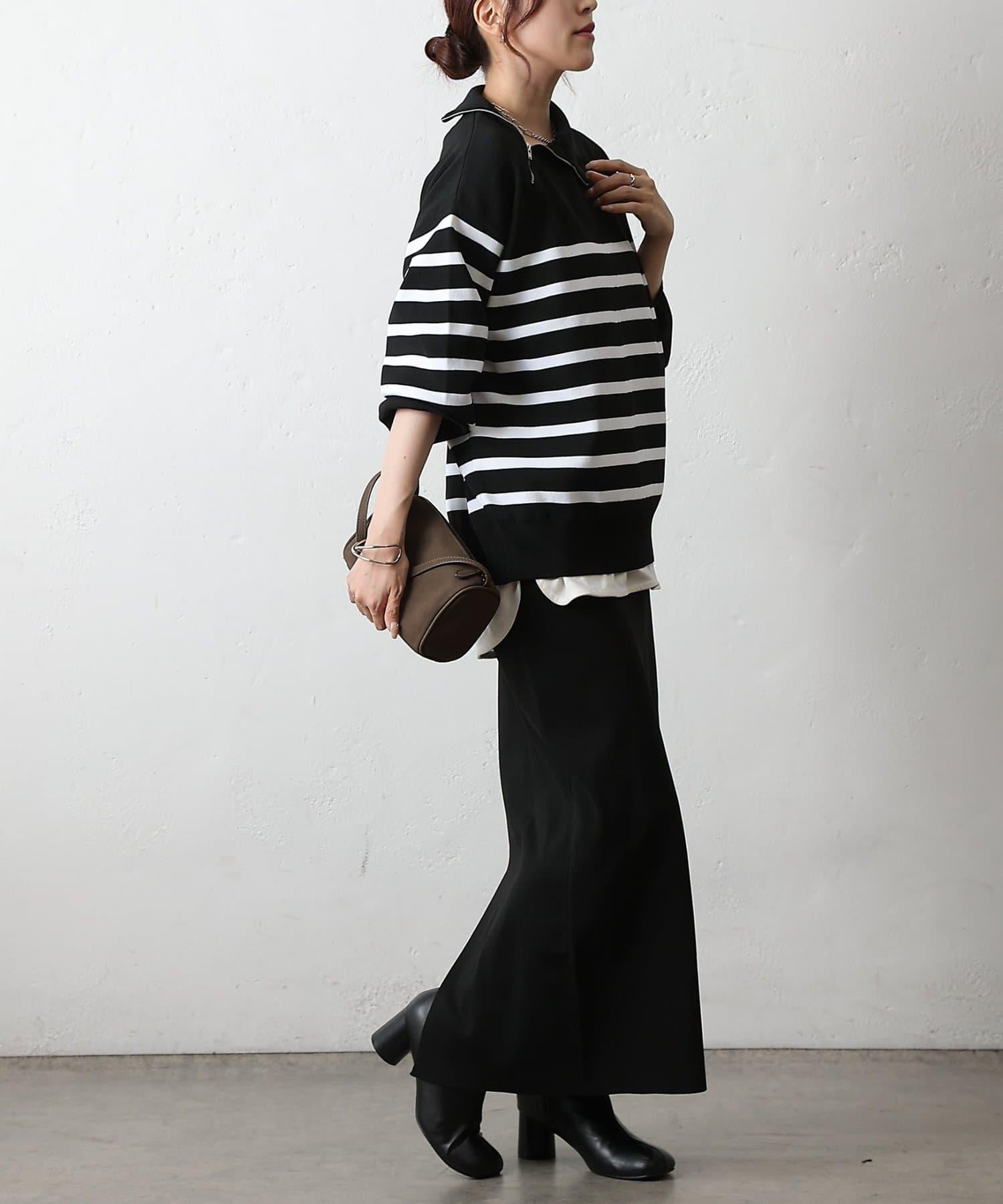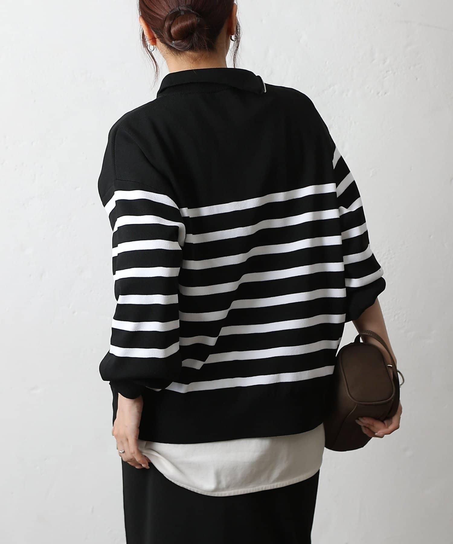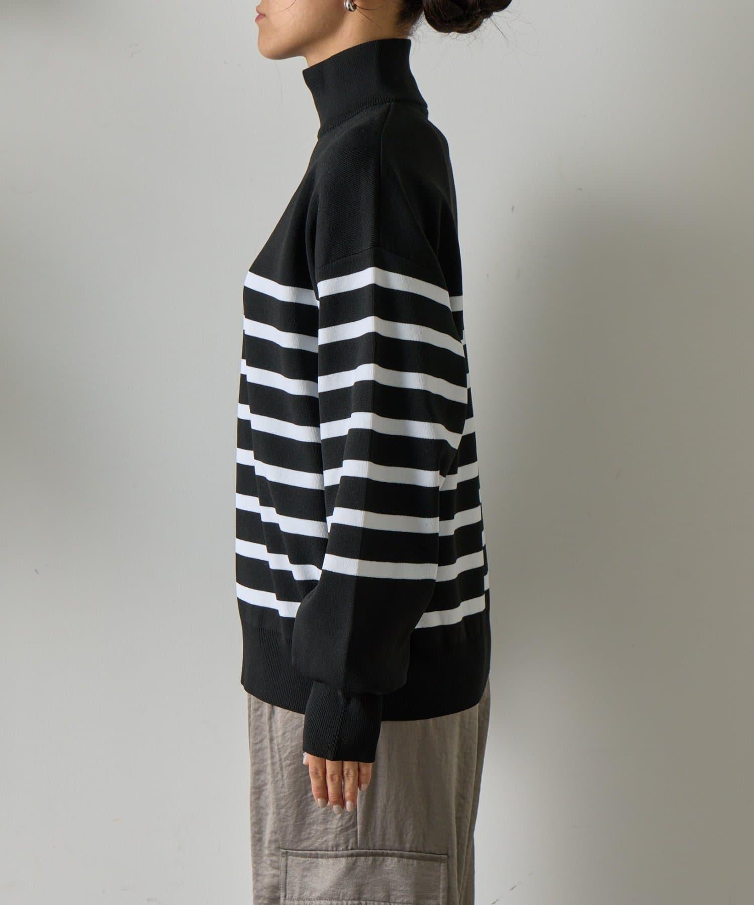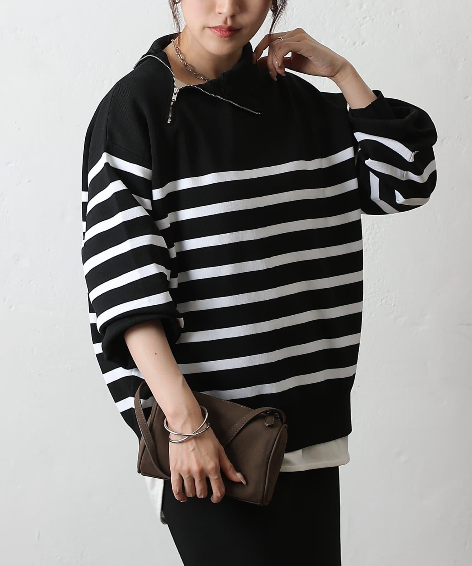 【AW】滌綸紗側頸拉鍊條紋針織衫