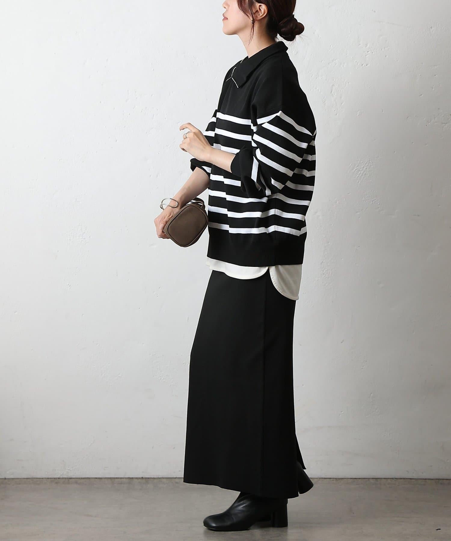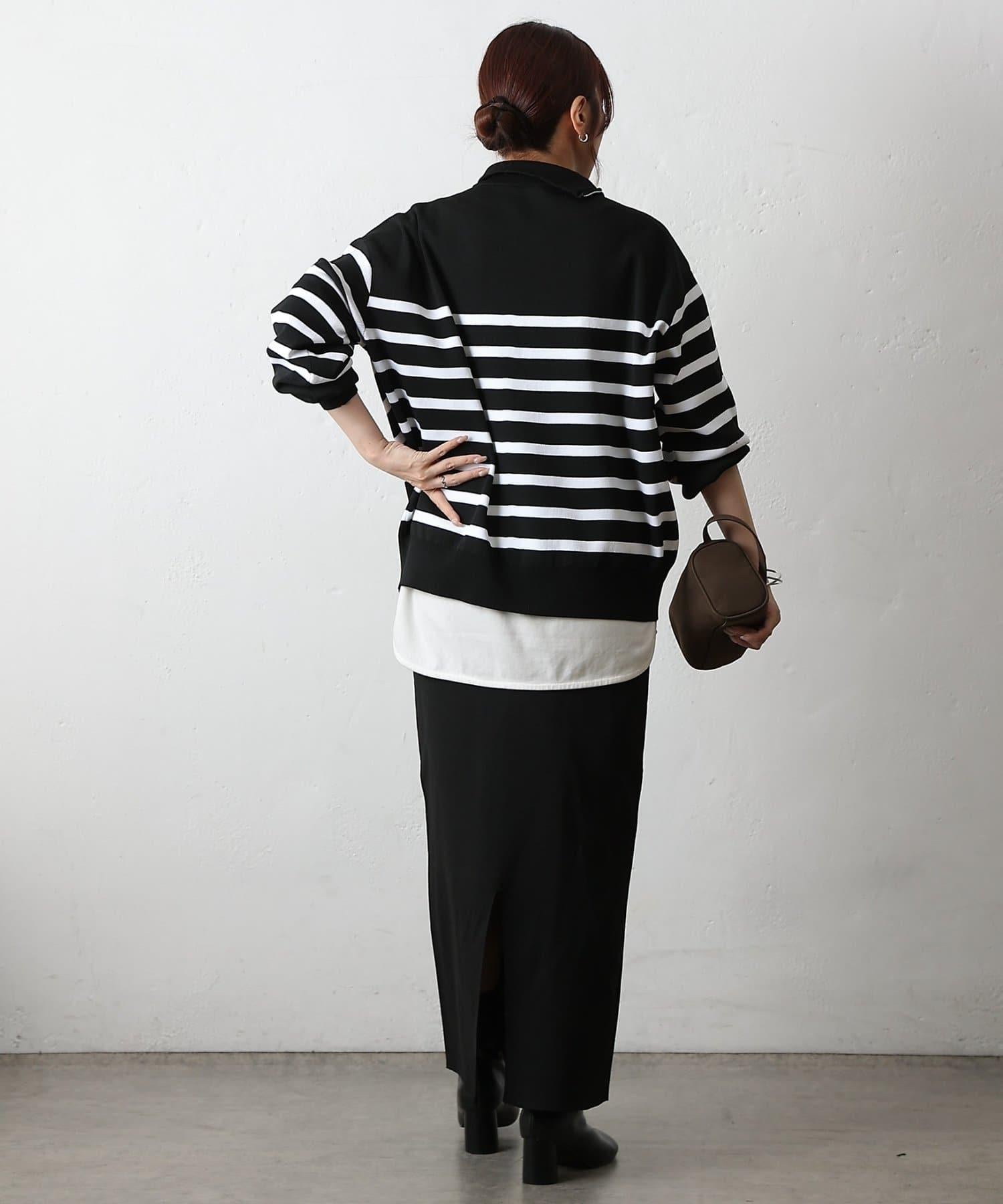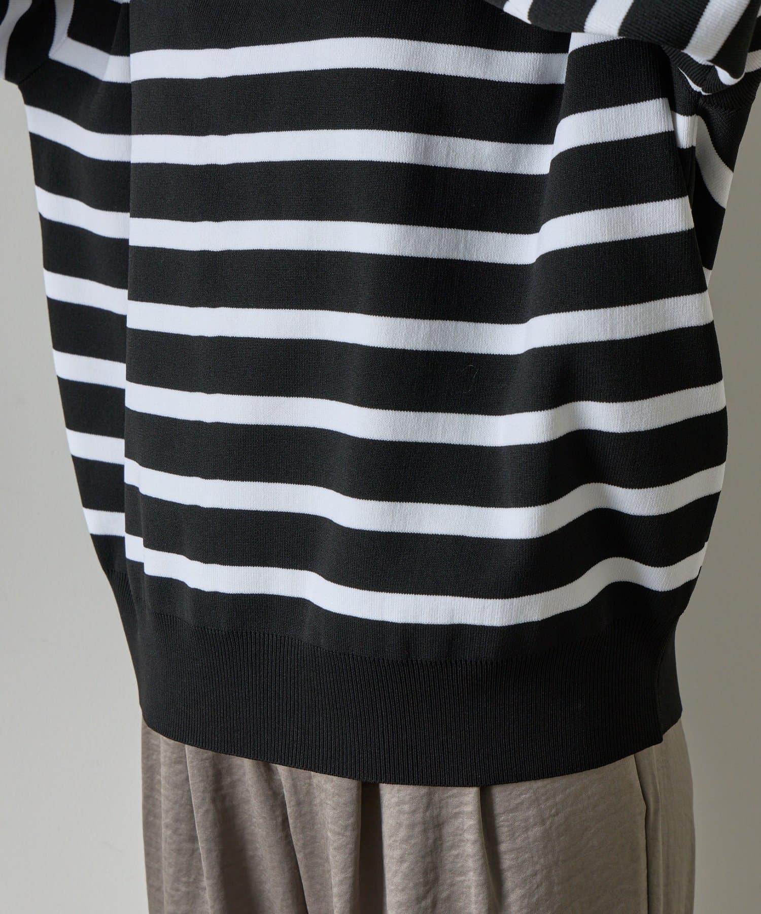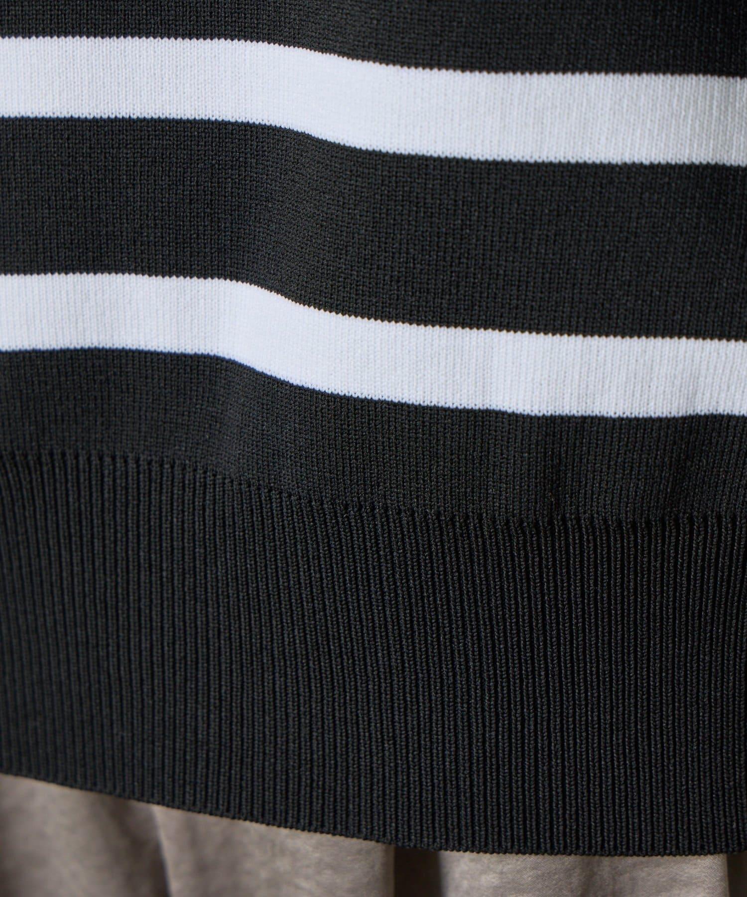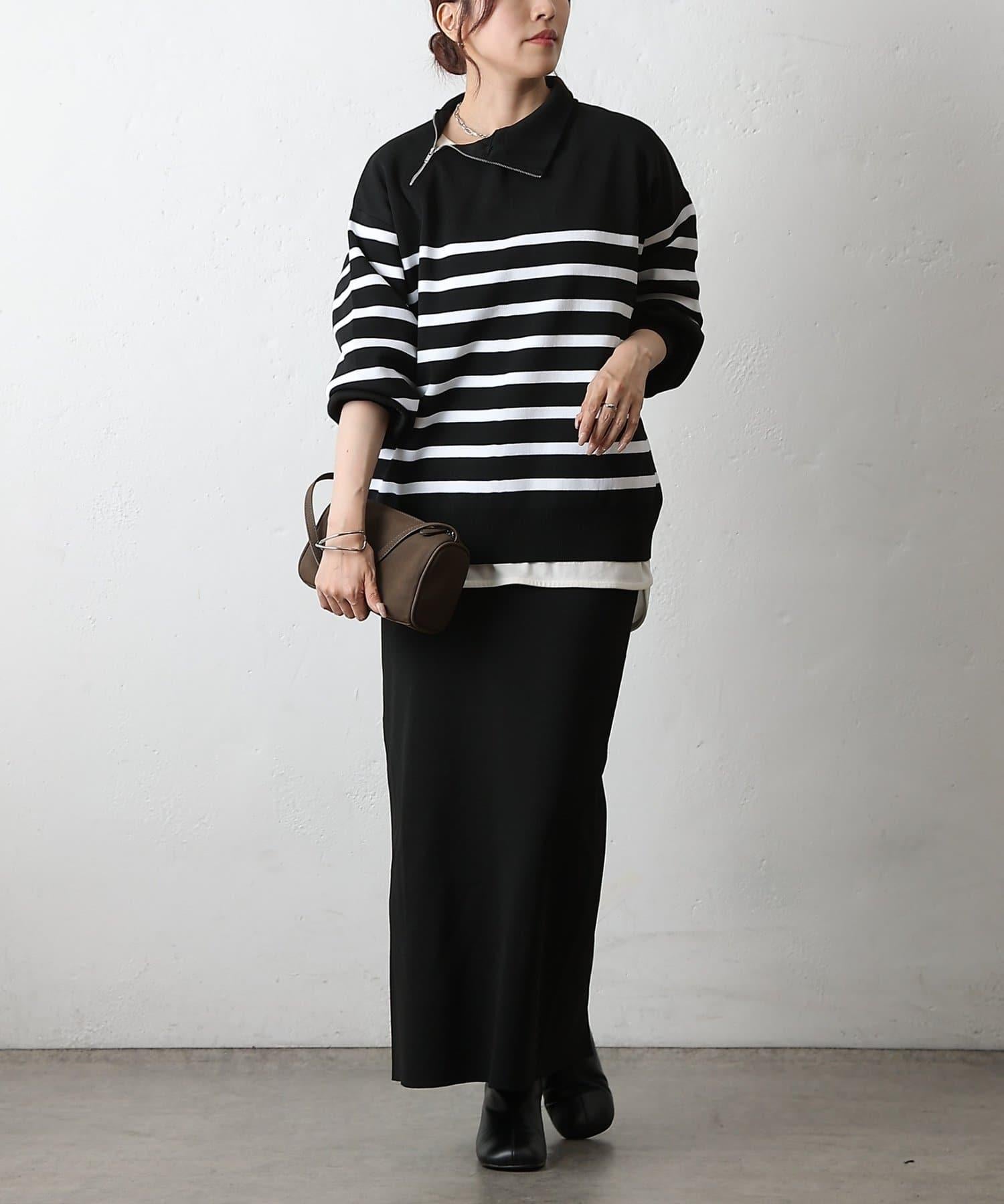 【AW】滌綸紗側頸拉鍊條紋針織衫
