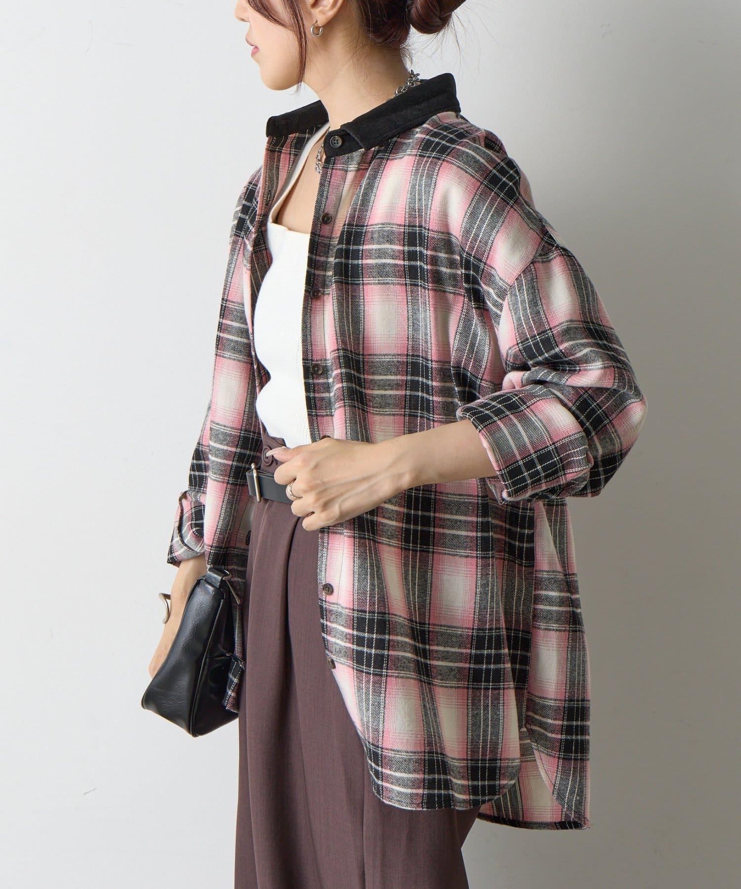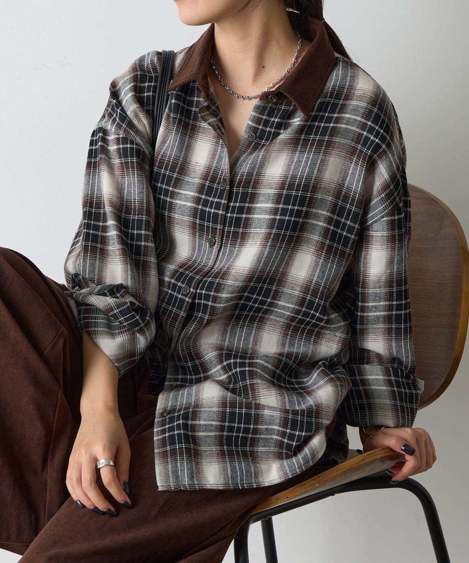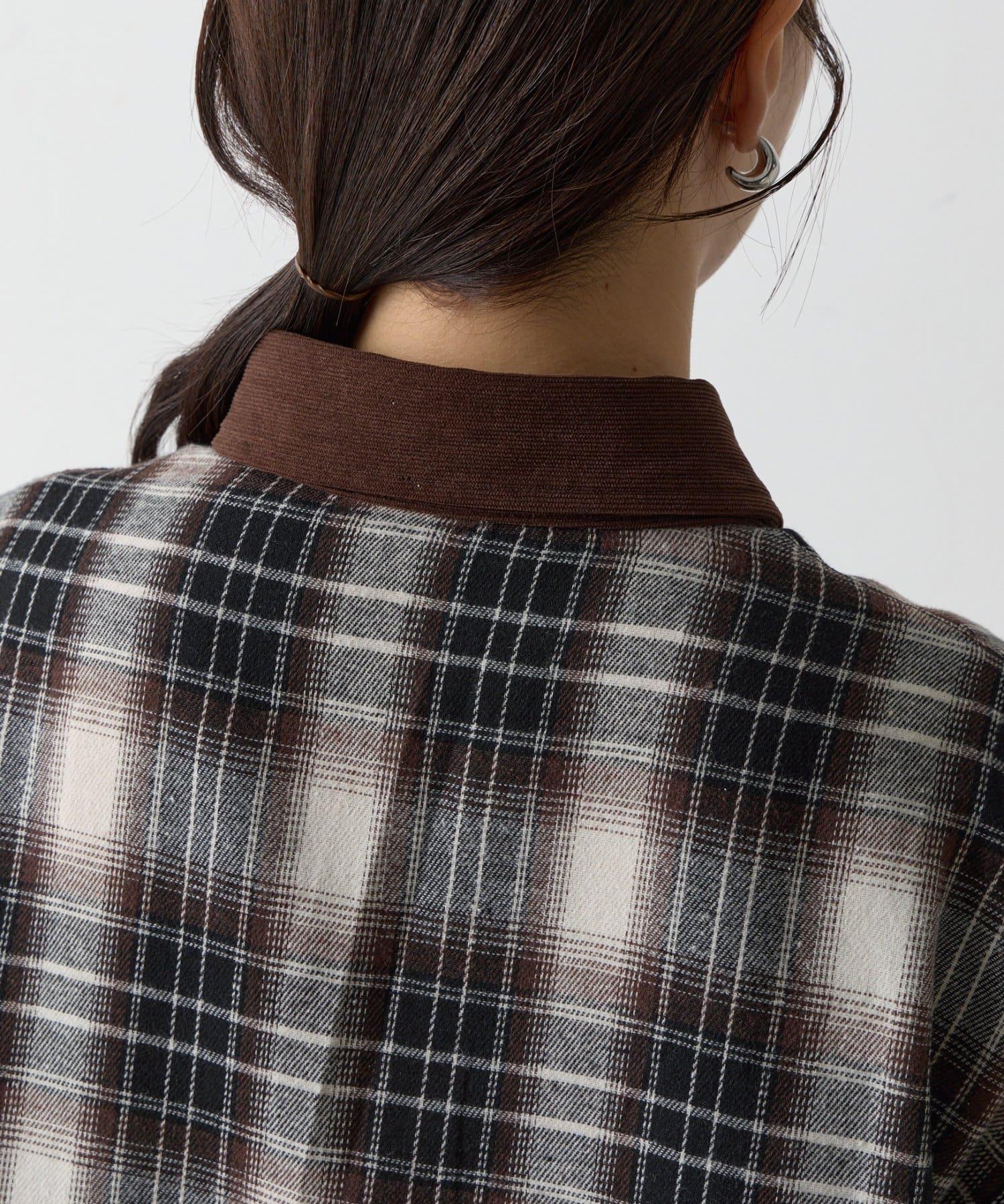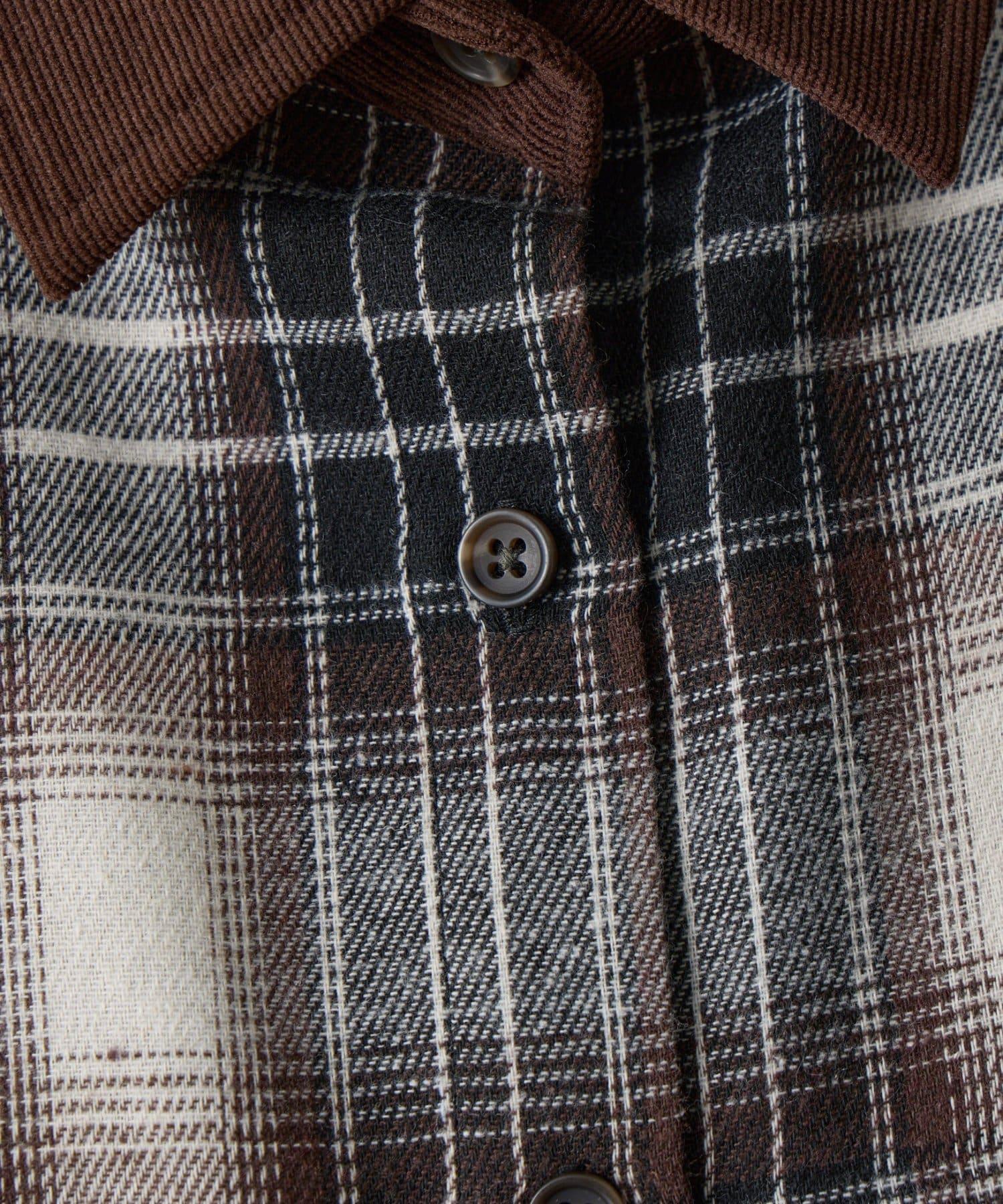 燈芯絨格紋襯衫,燈芯絨材質領口點綴。