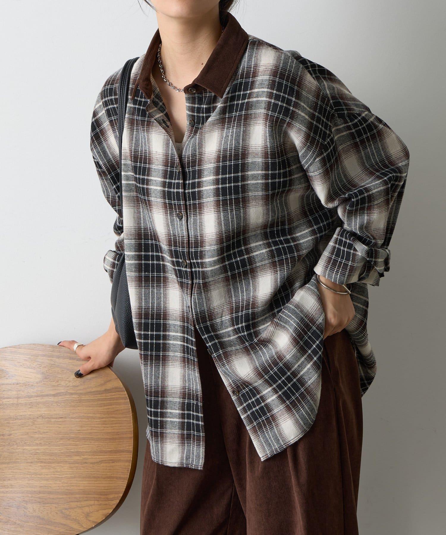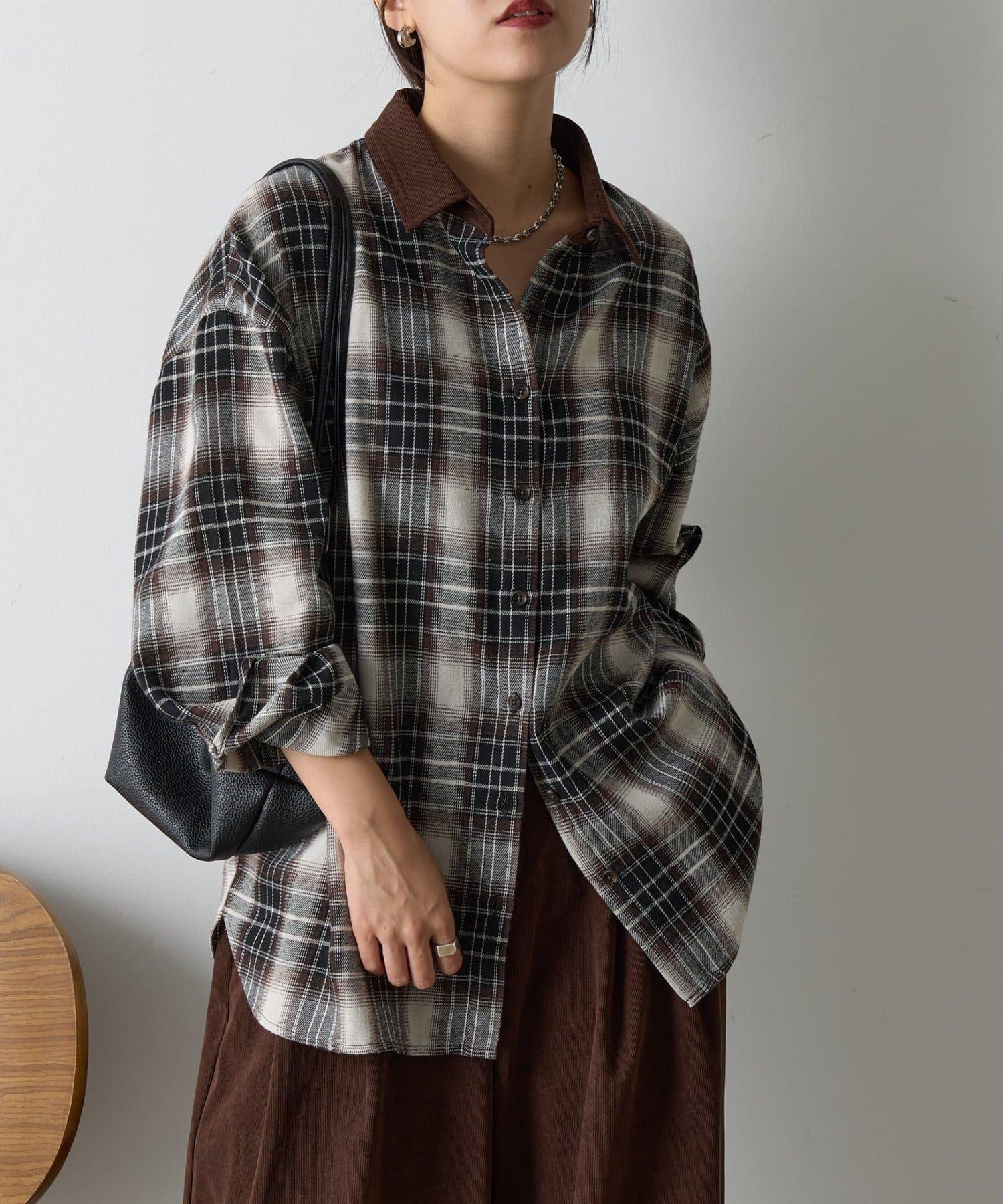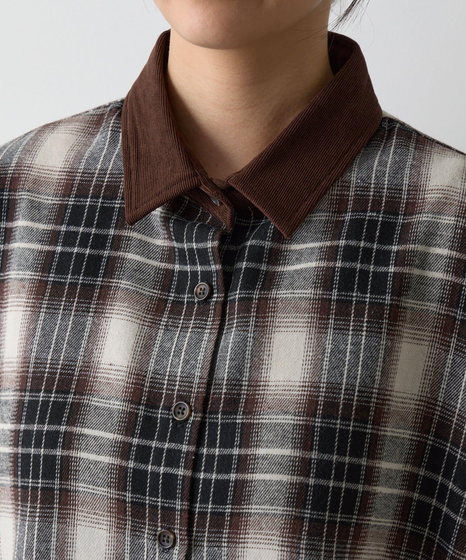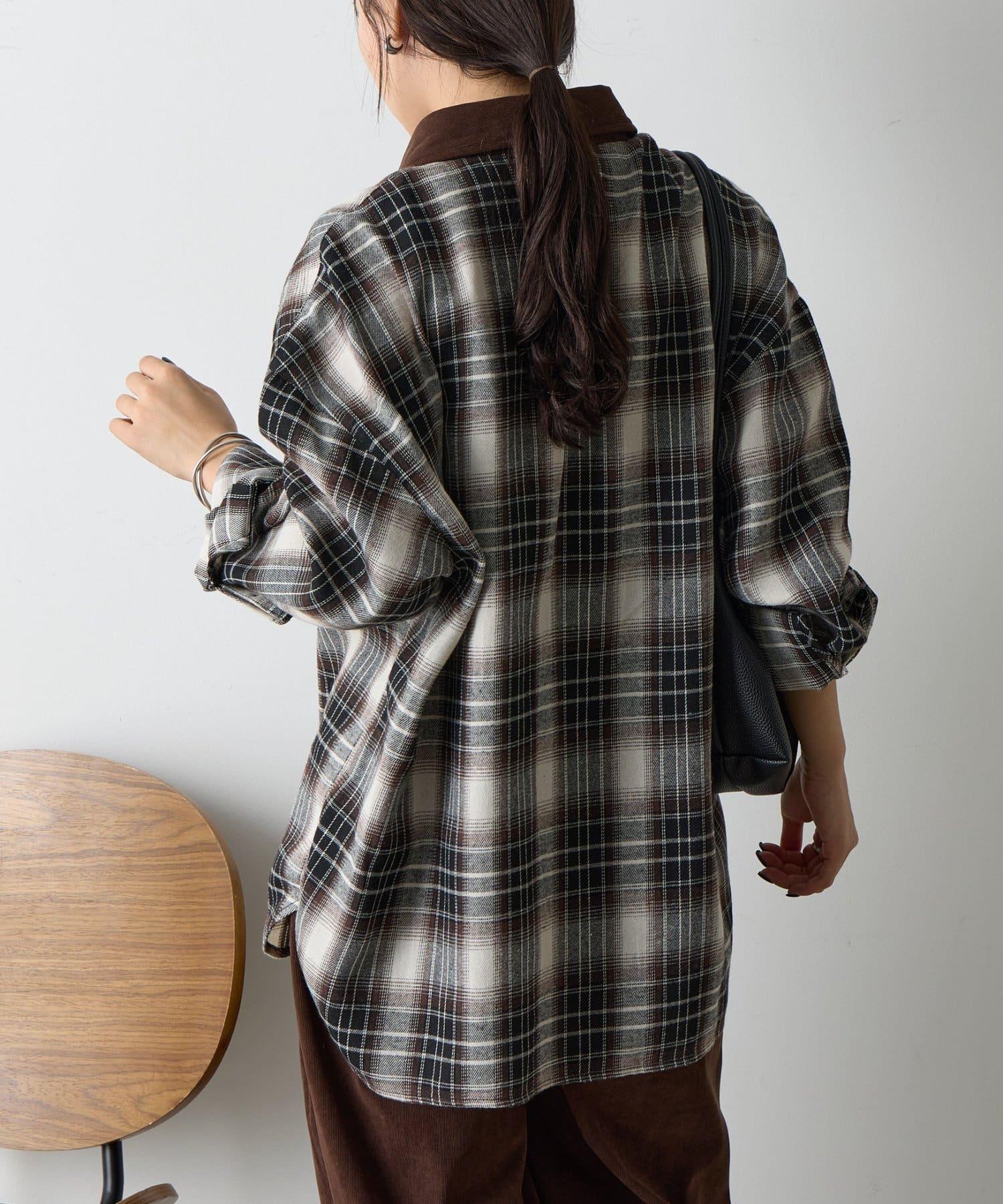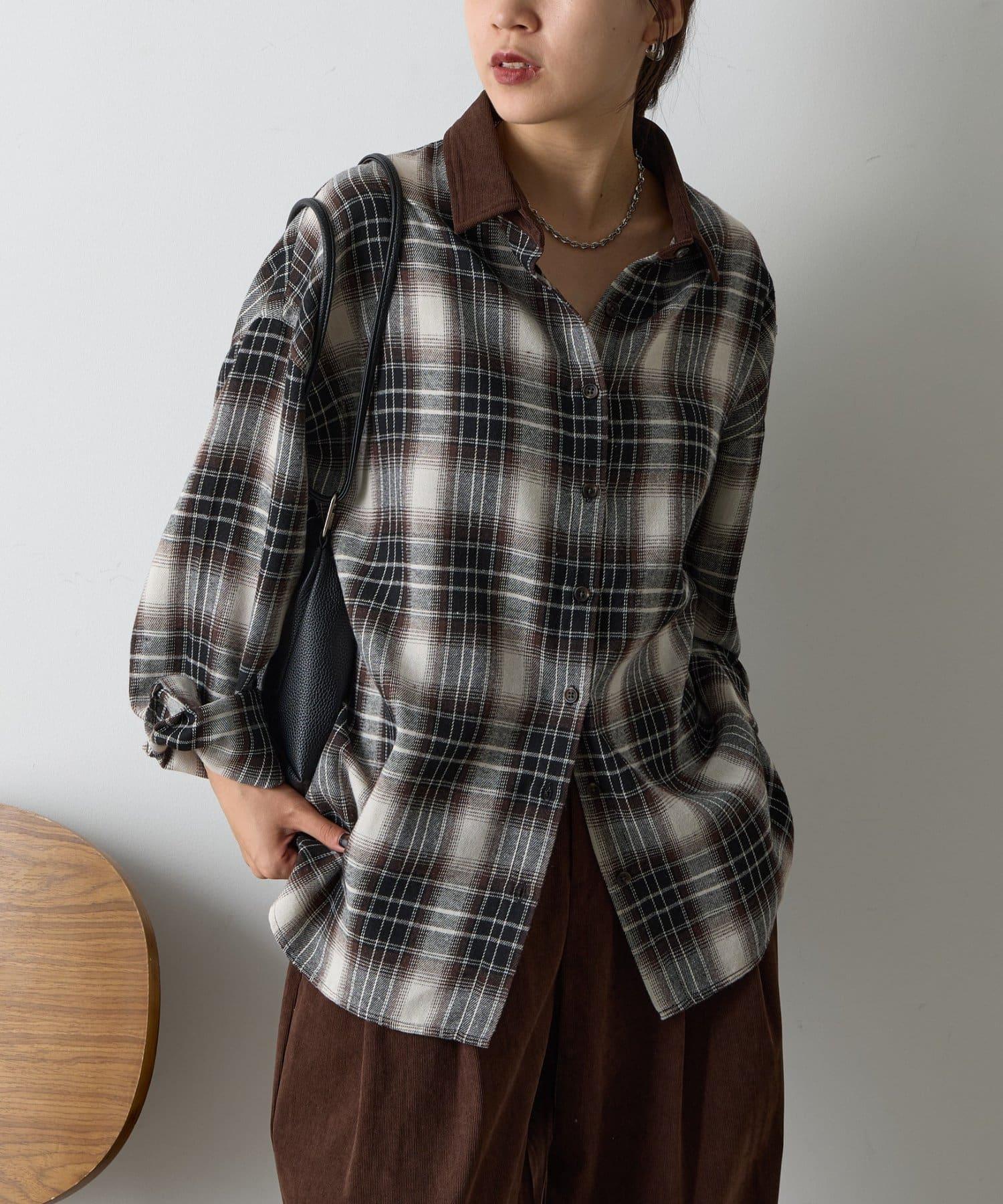 燈芯絨格紋襯衫,燈芯絨材質領口點綴。