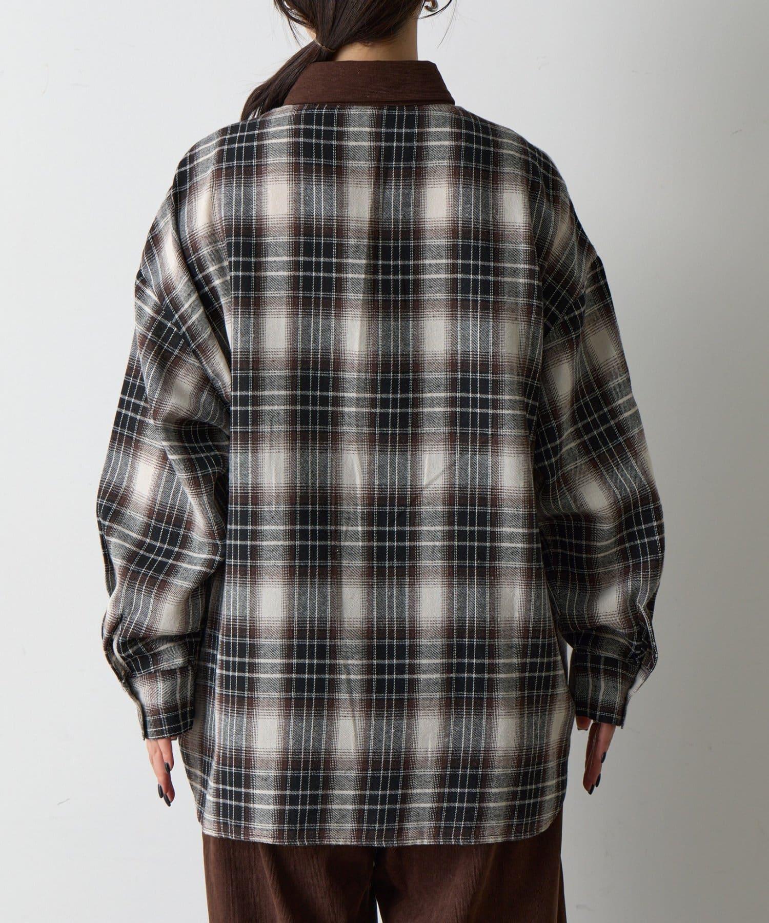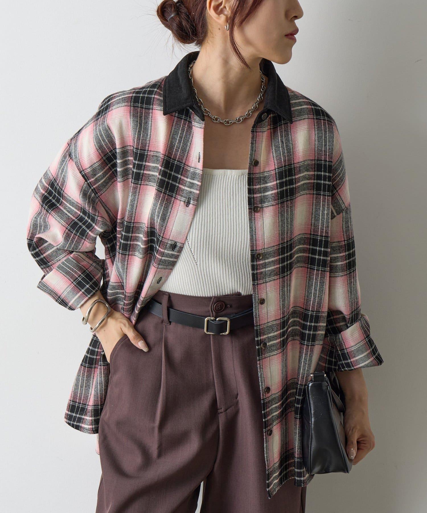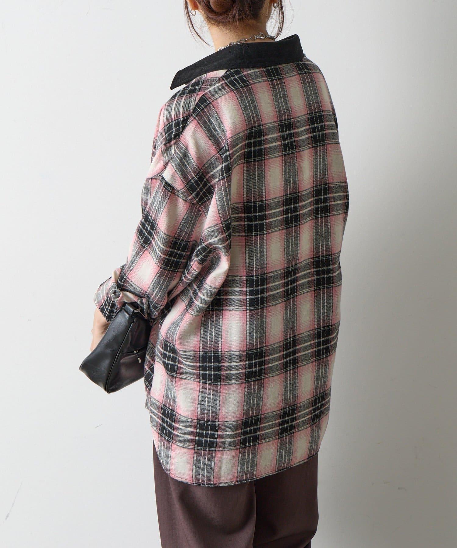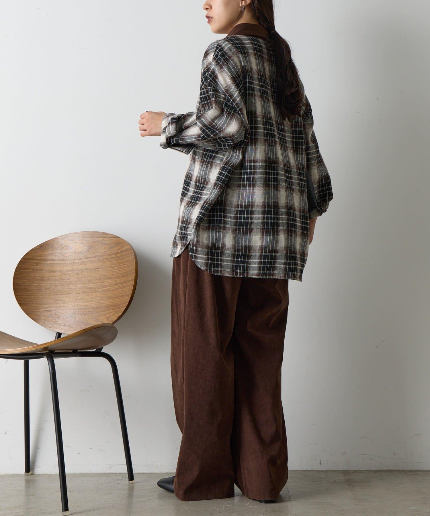 燈芯絨格紋襯衫,燈芯絨材質領口點綴。