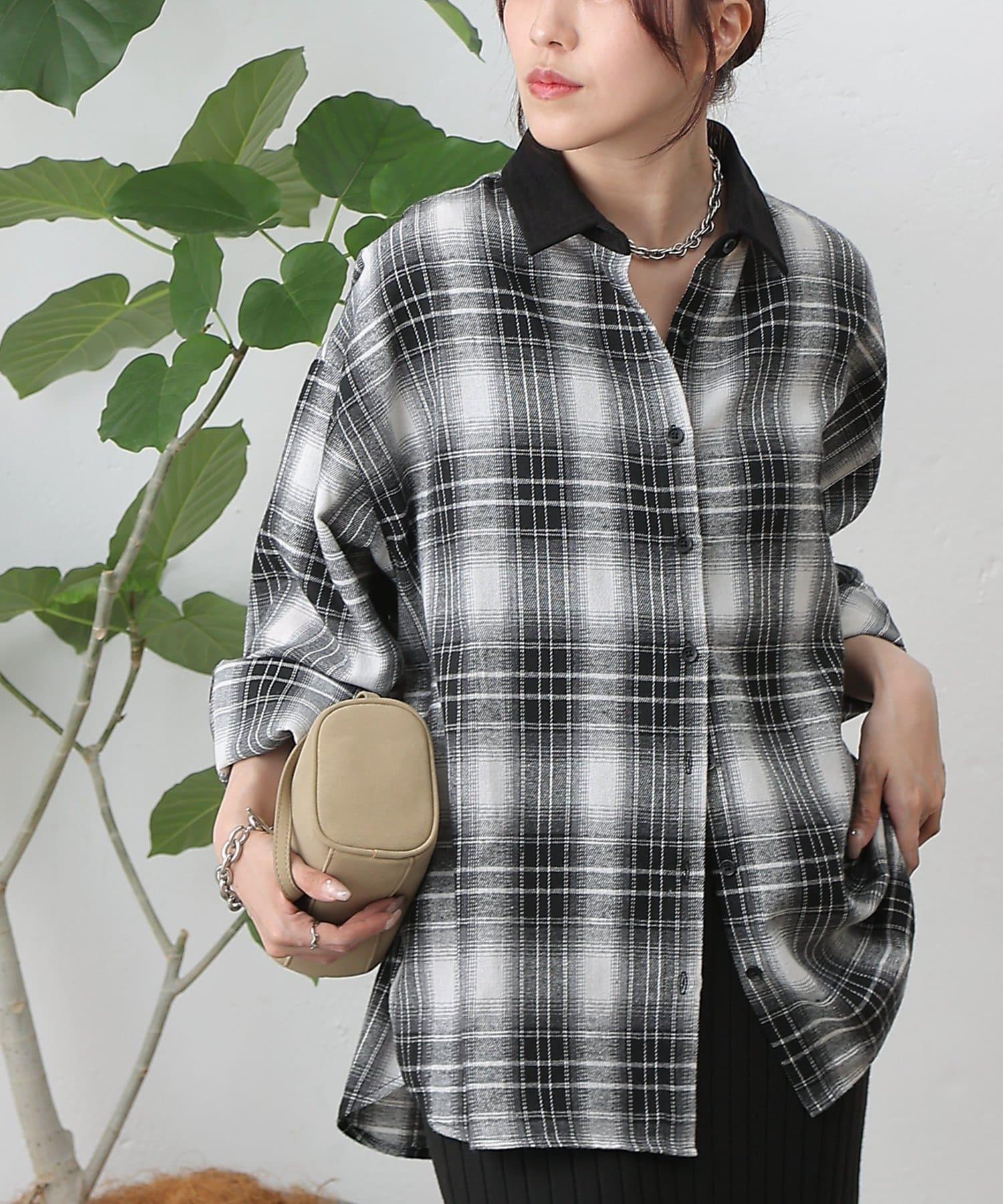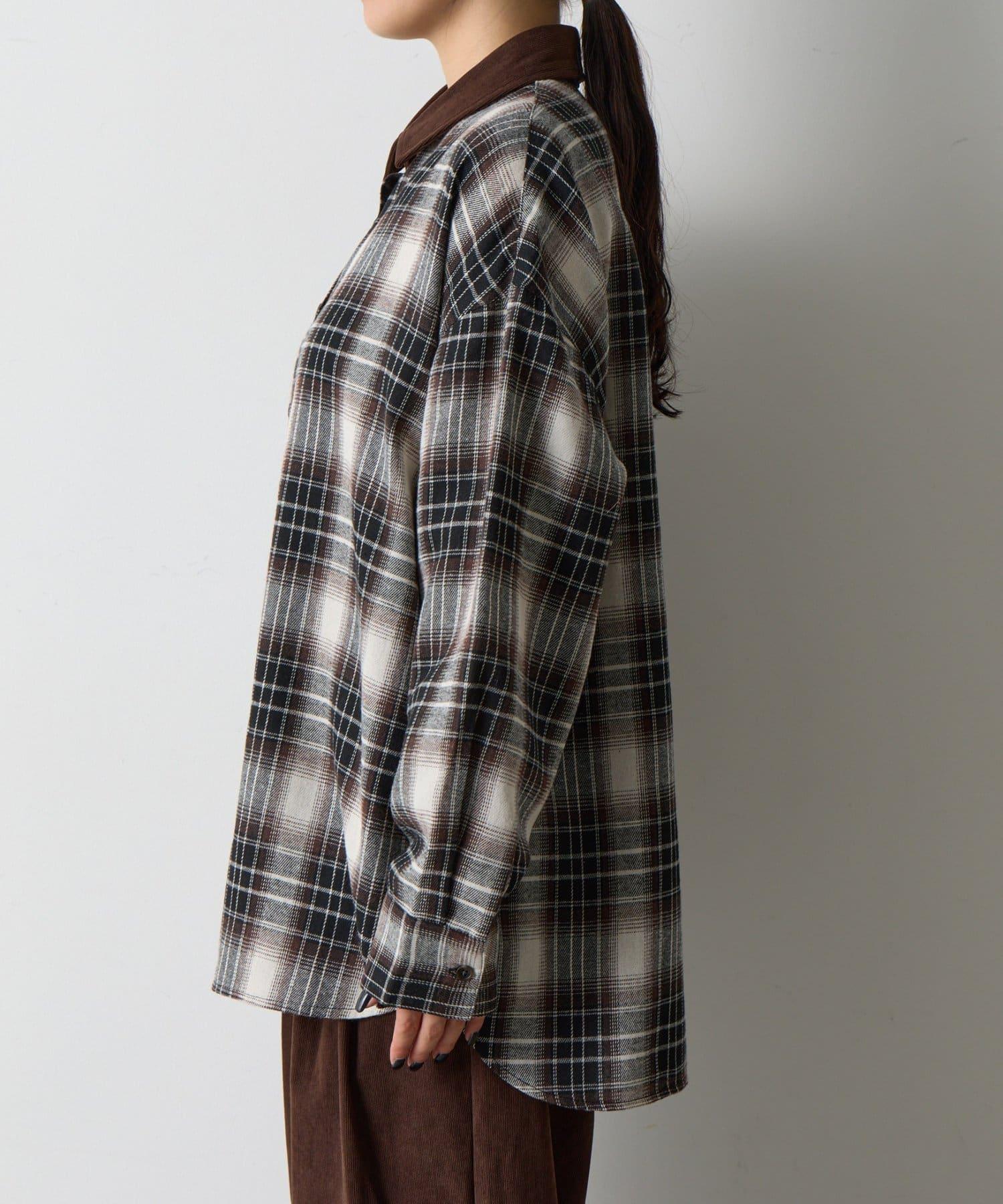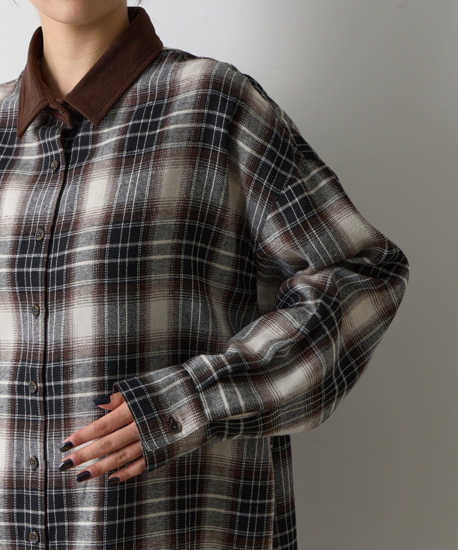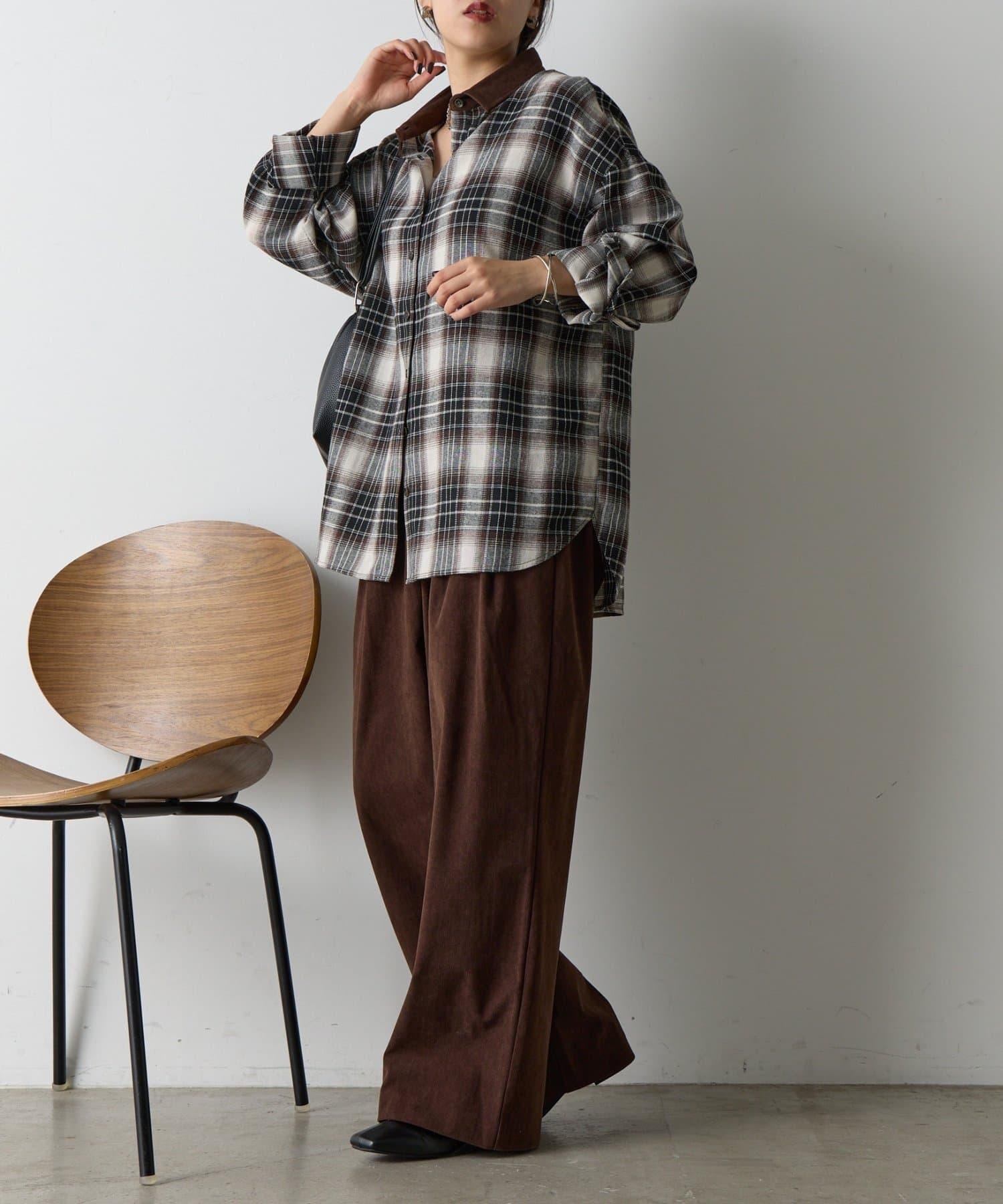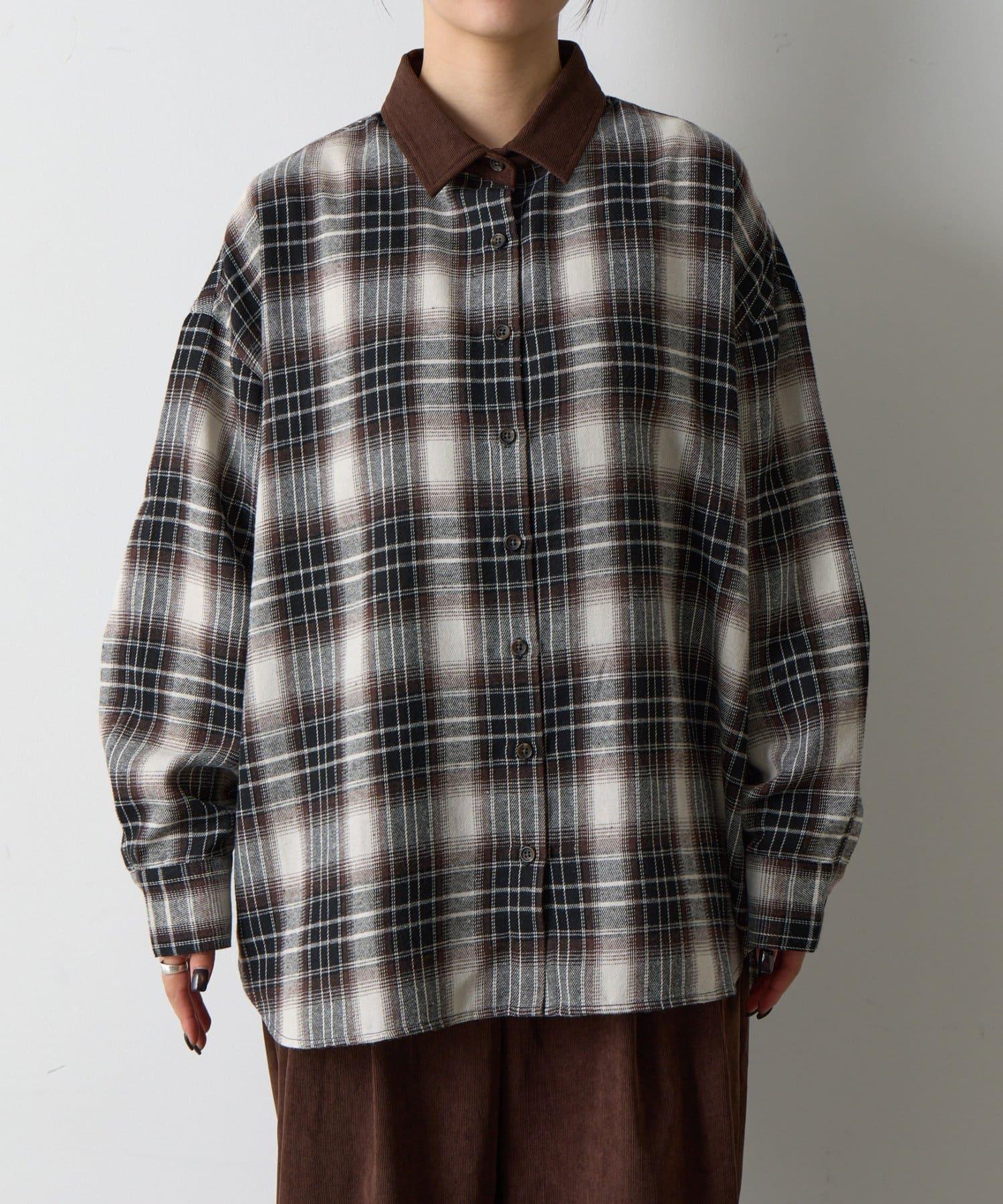 燈芯絨格紋襯衫,燈芯絨材質領口點綴。