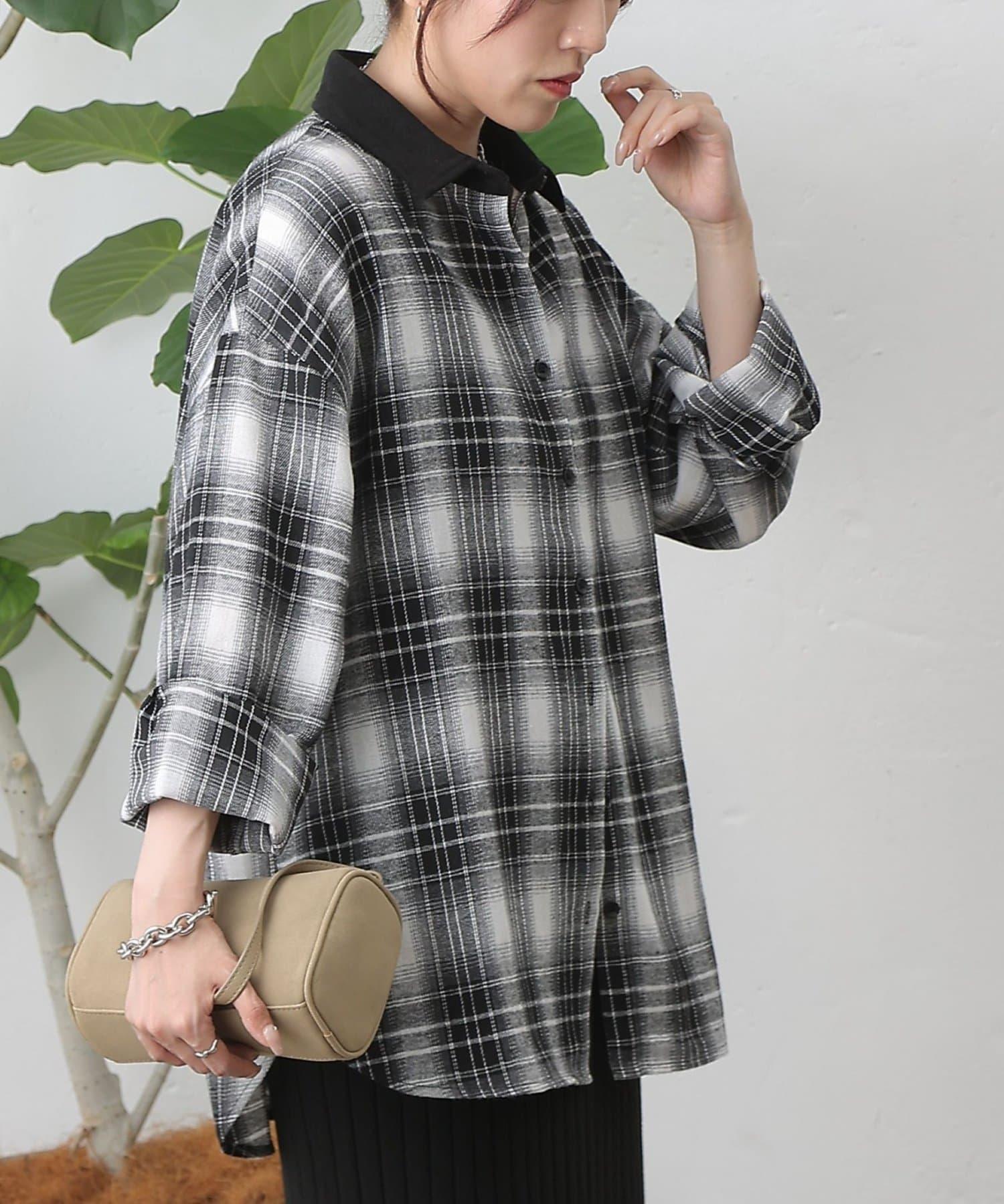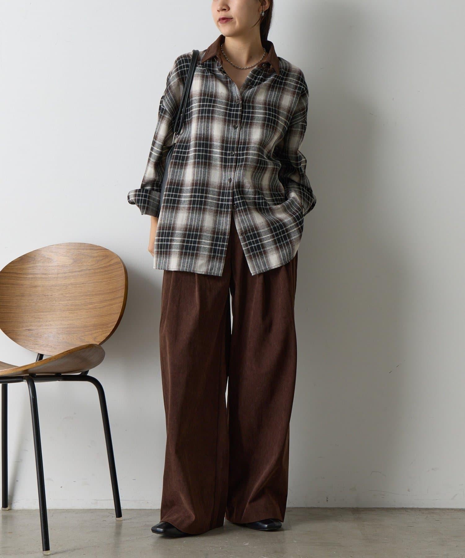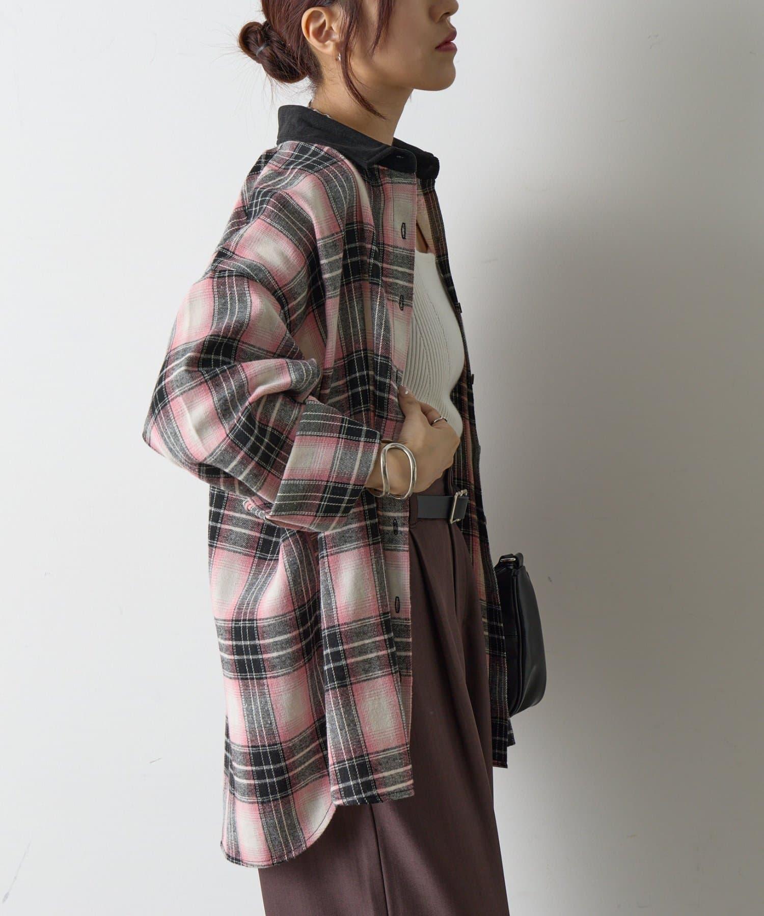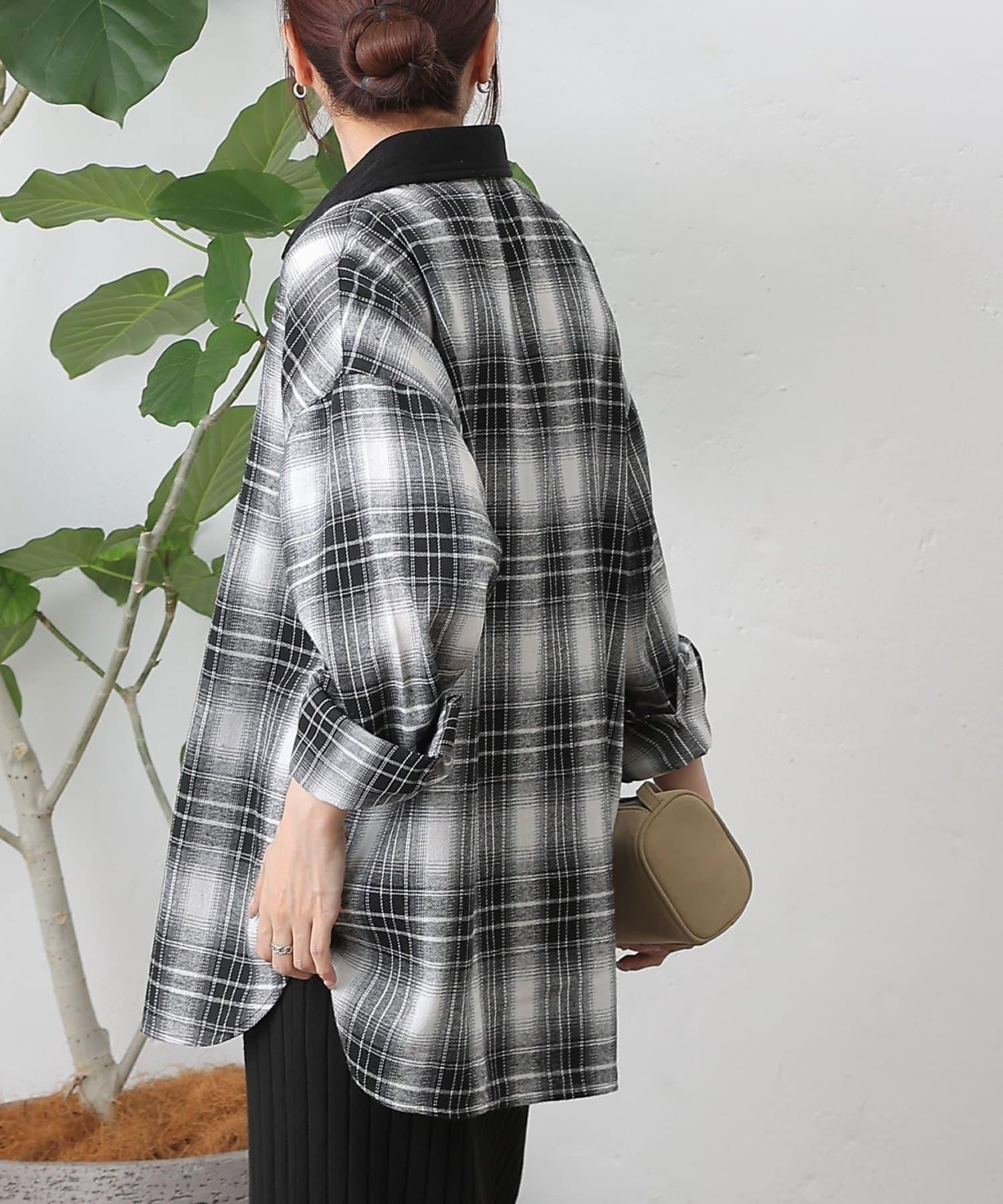 燈芯絨格紋襯衫,燈芯絨材質領口點綴。
