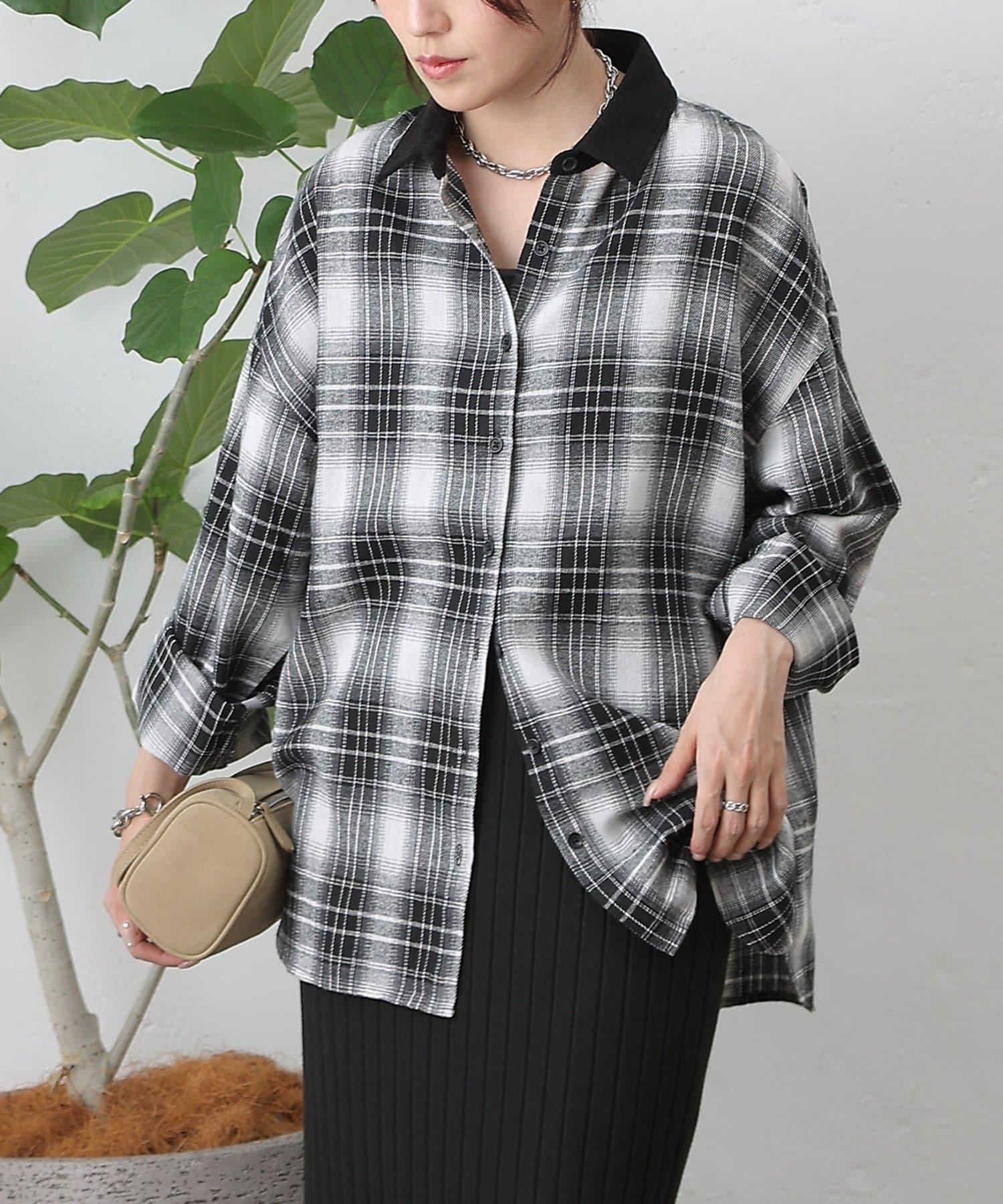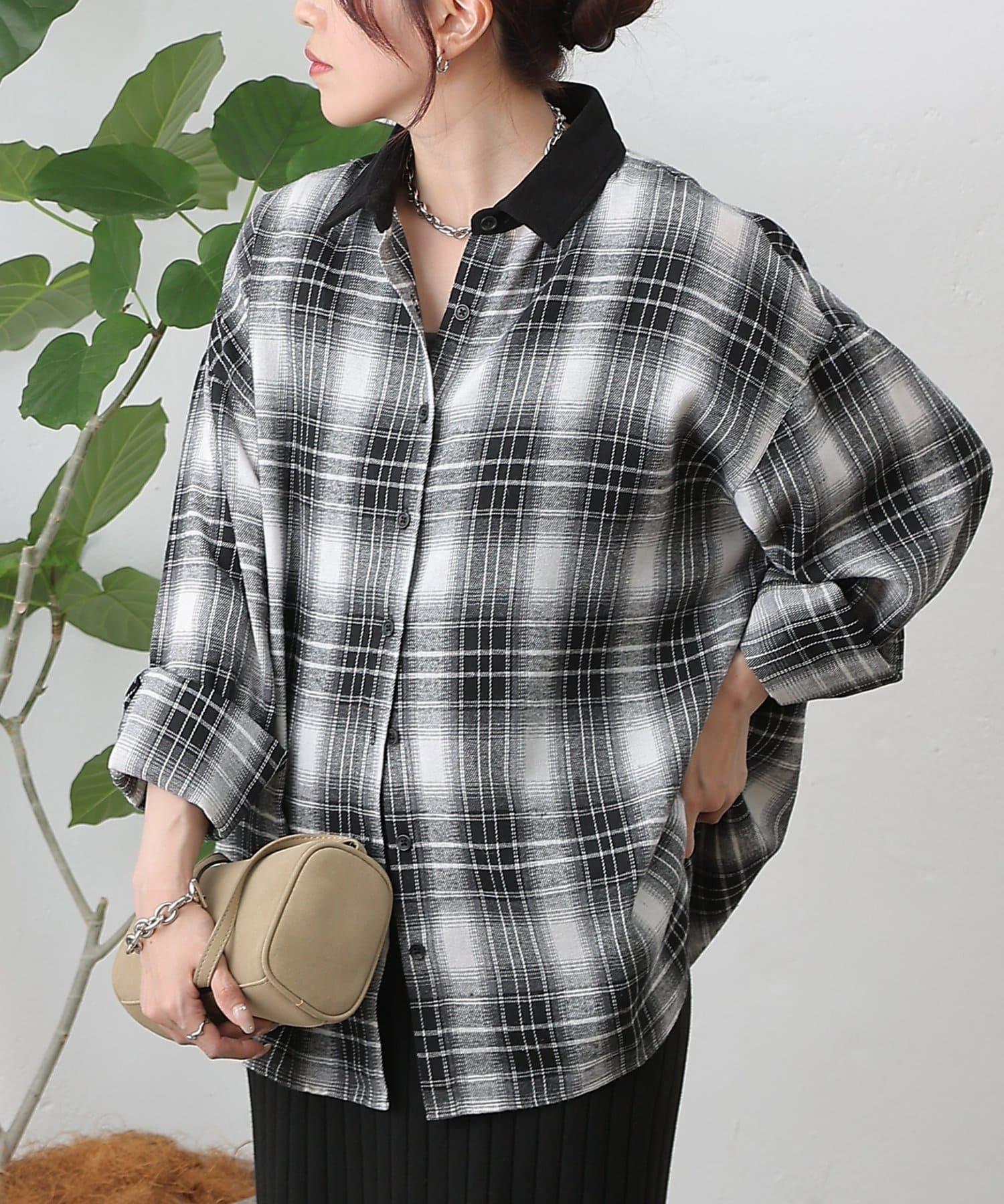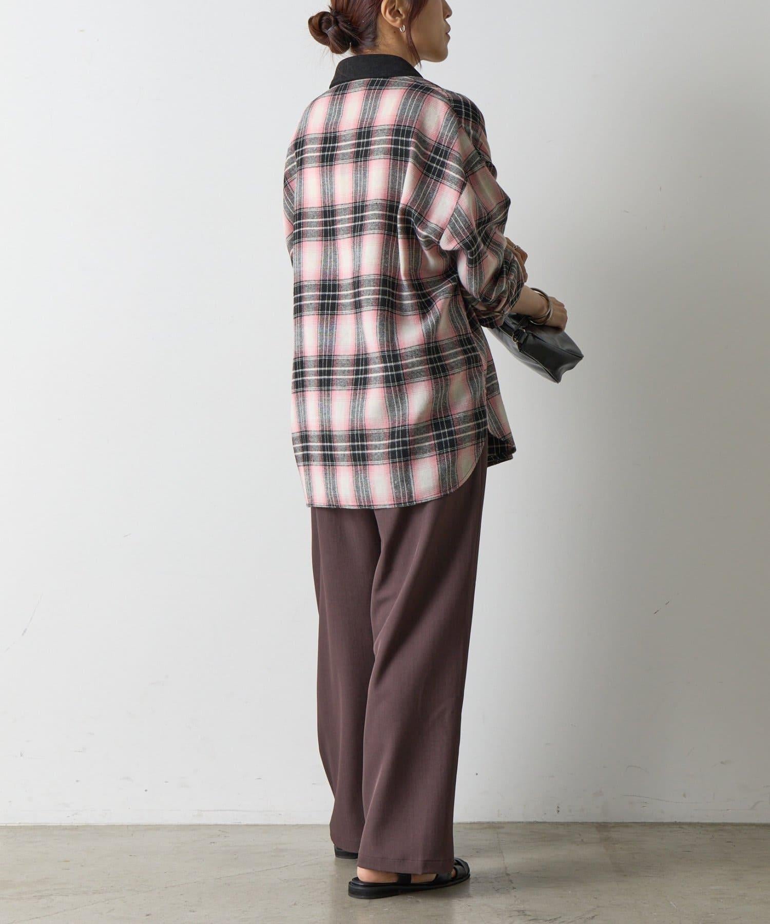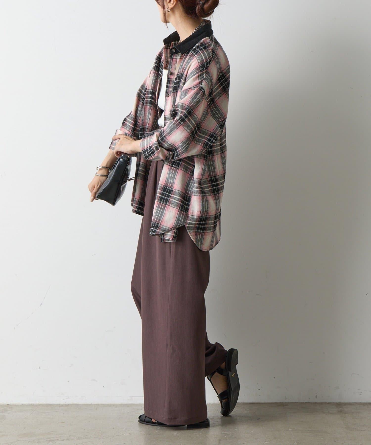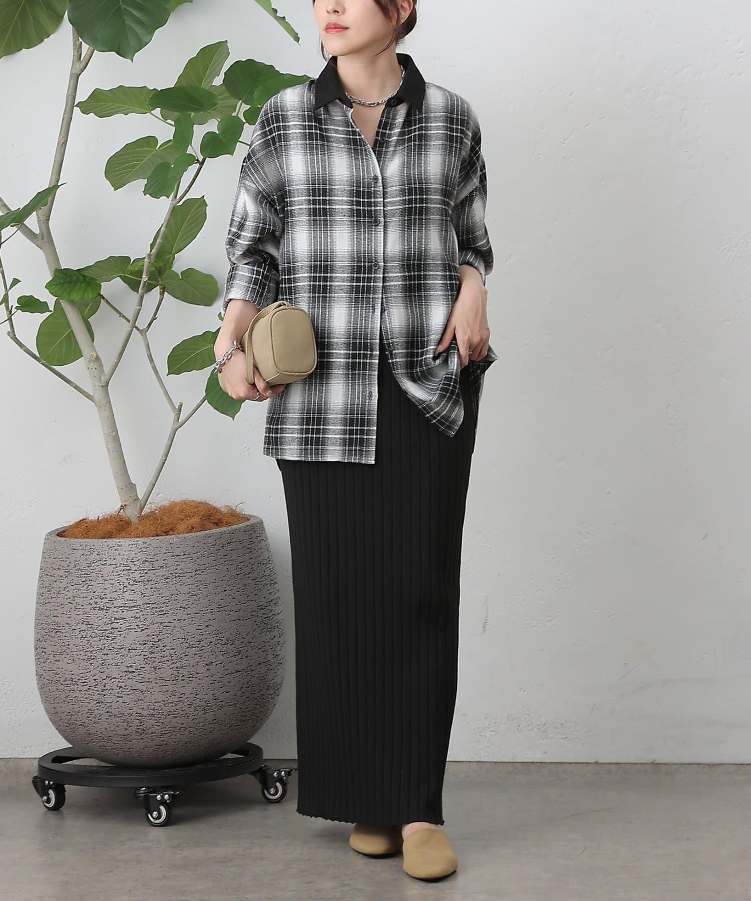 燈芯絨格紋襯衫,燈芯絨材質領口點綴。