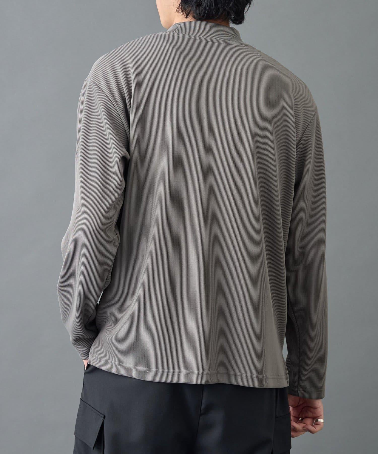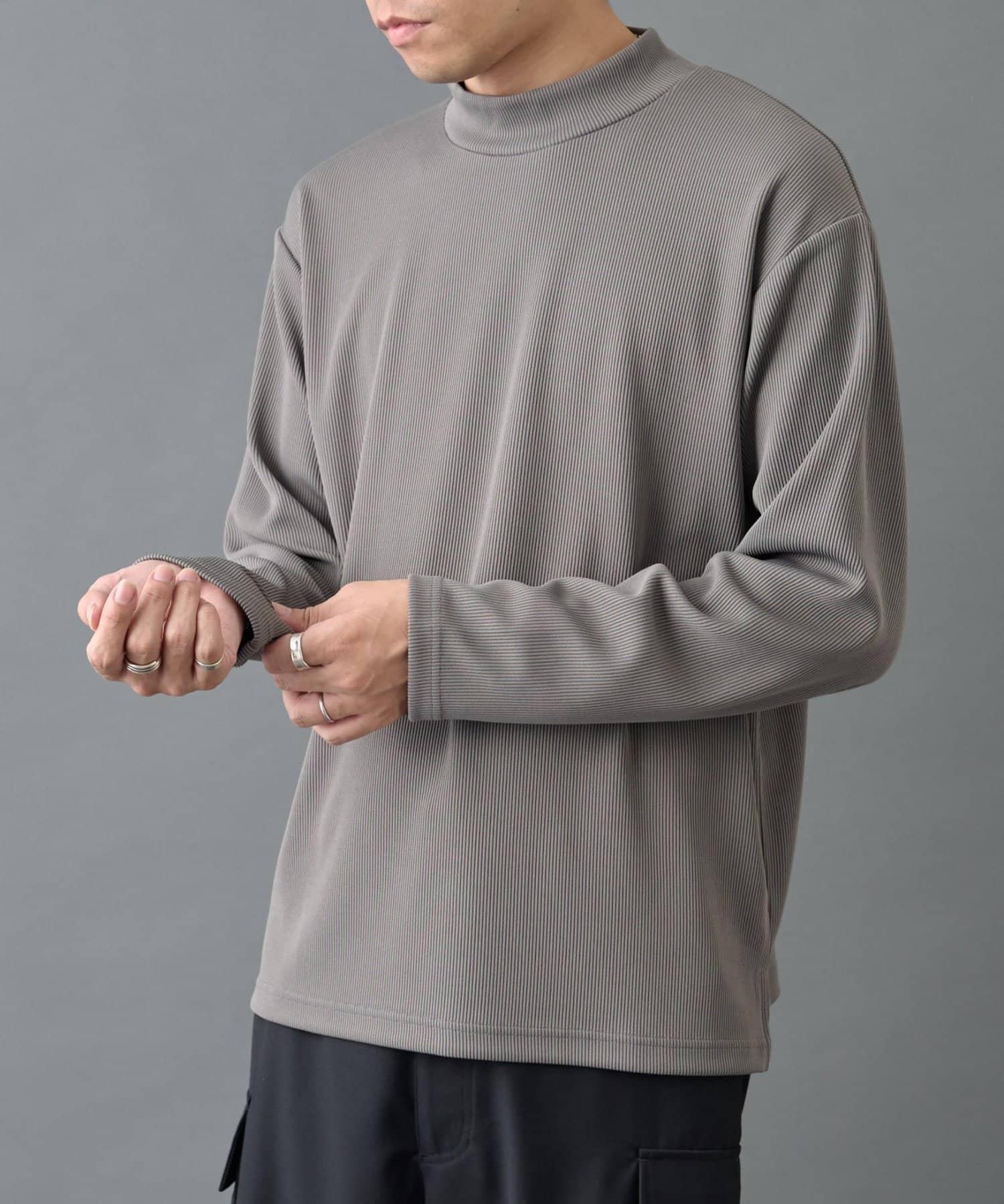 成人高領長袖 T 恤,採用垂墜感良好的羅紋面料。