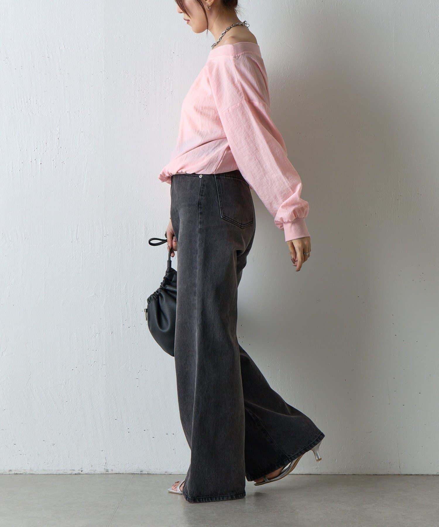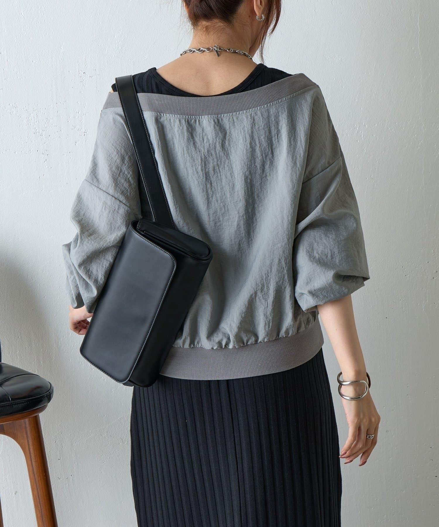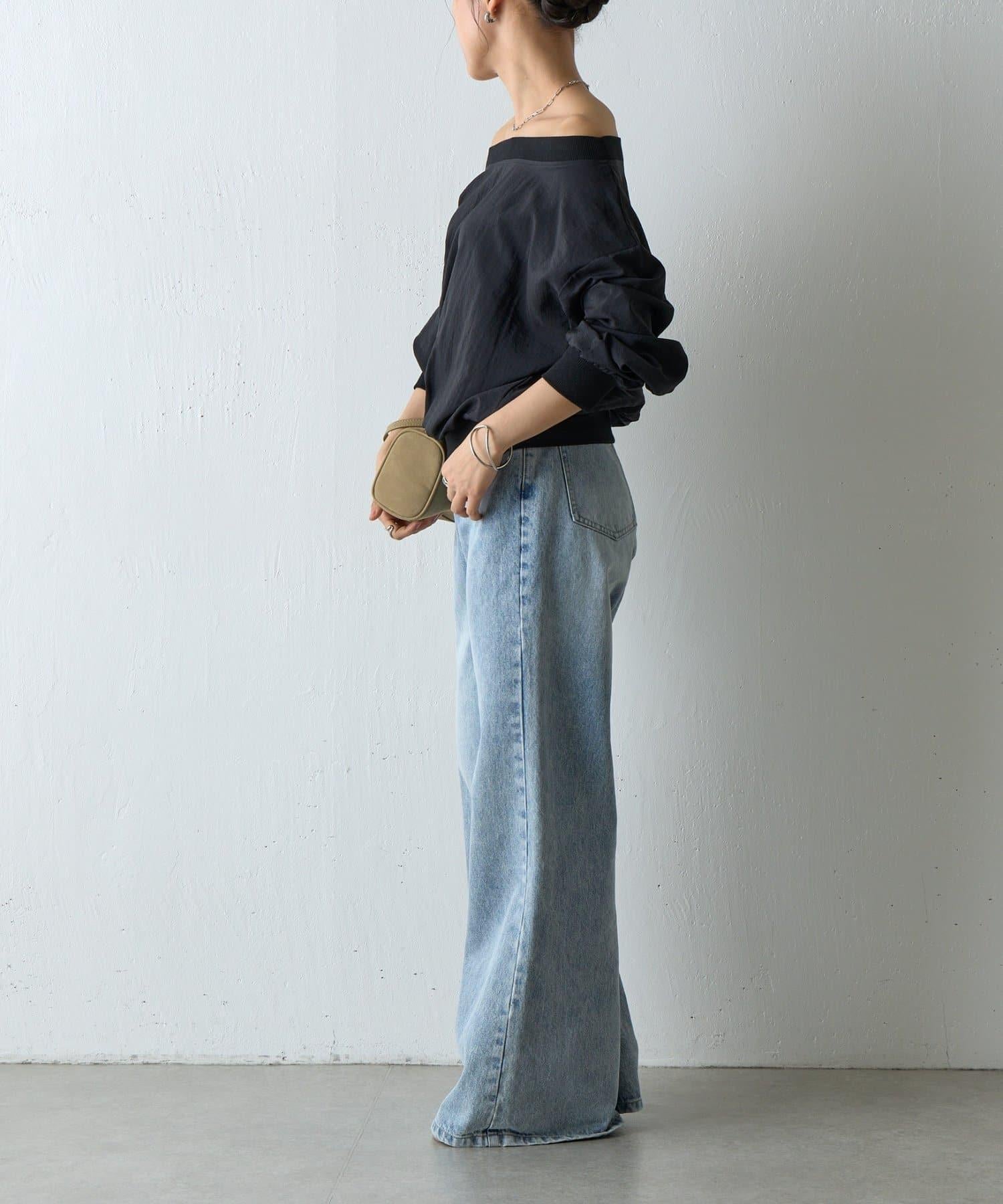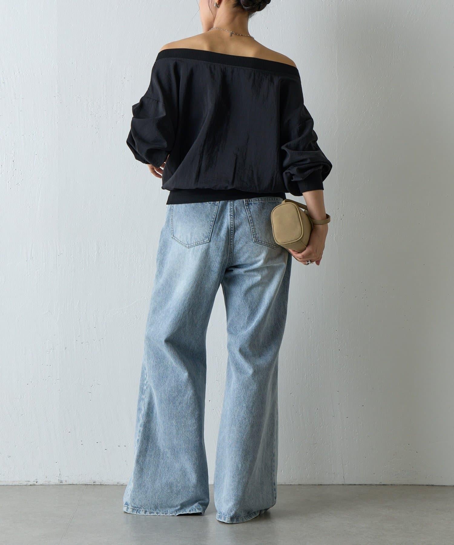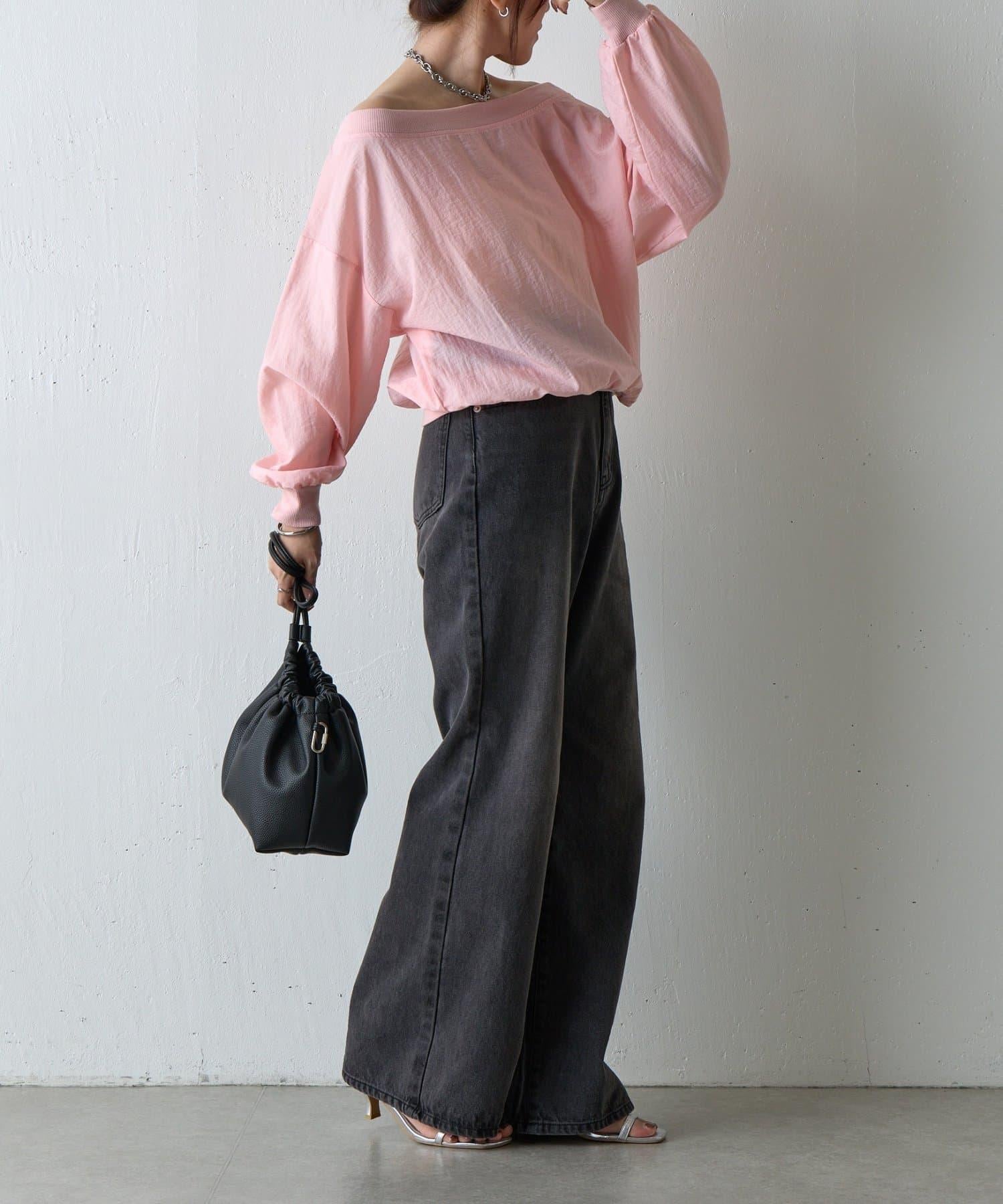 微微的光澤感非常時髦。露肩套頭衫,透薄輕盈。