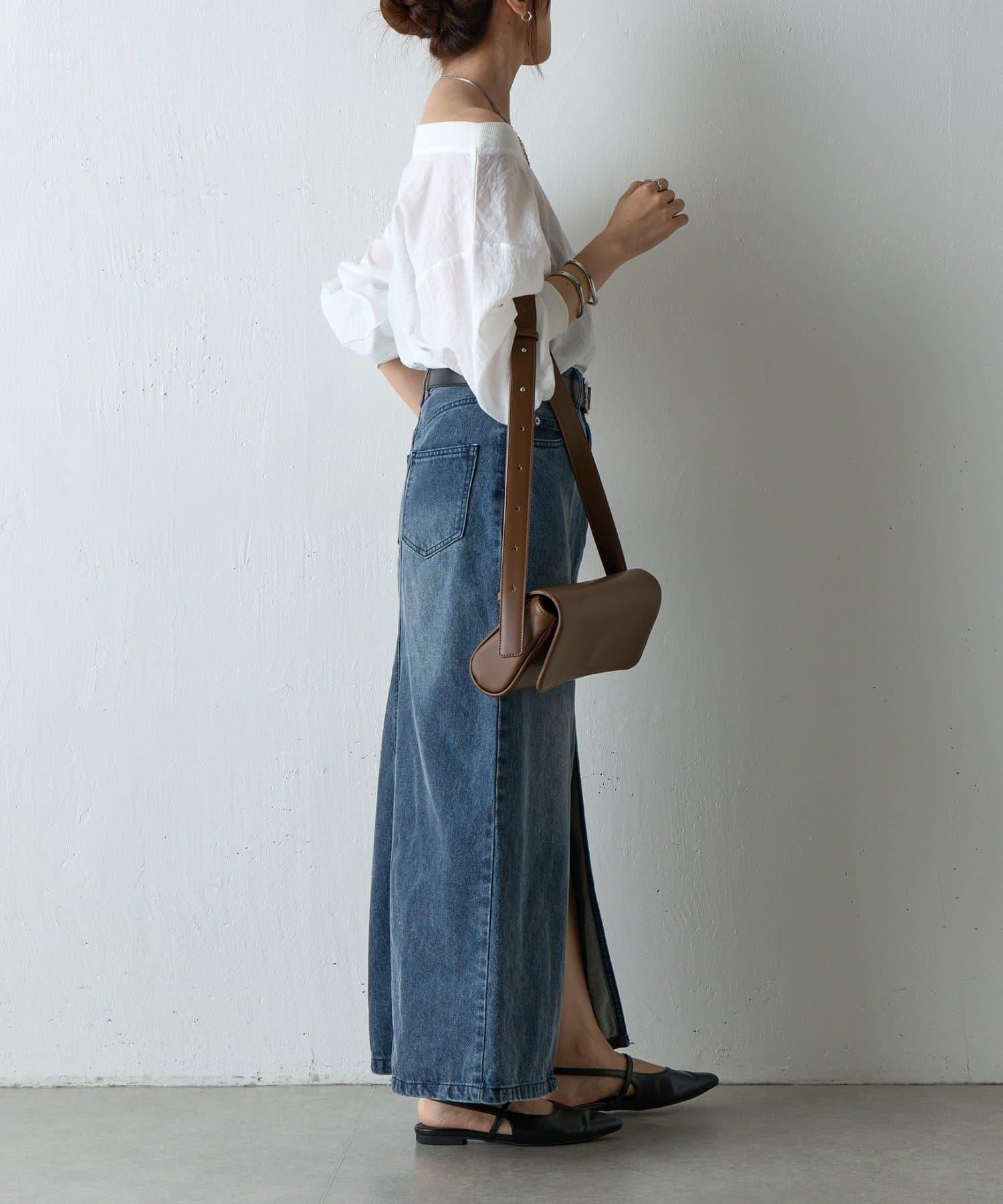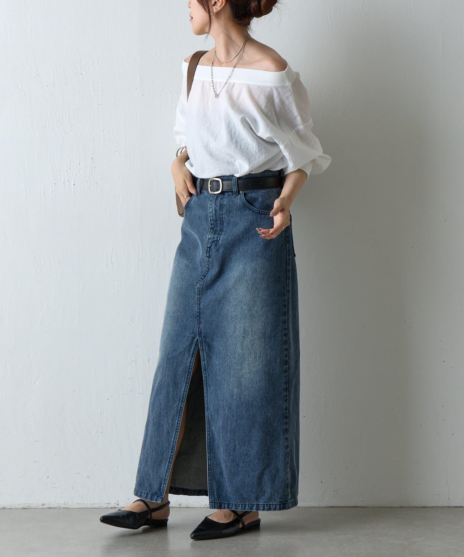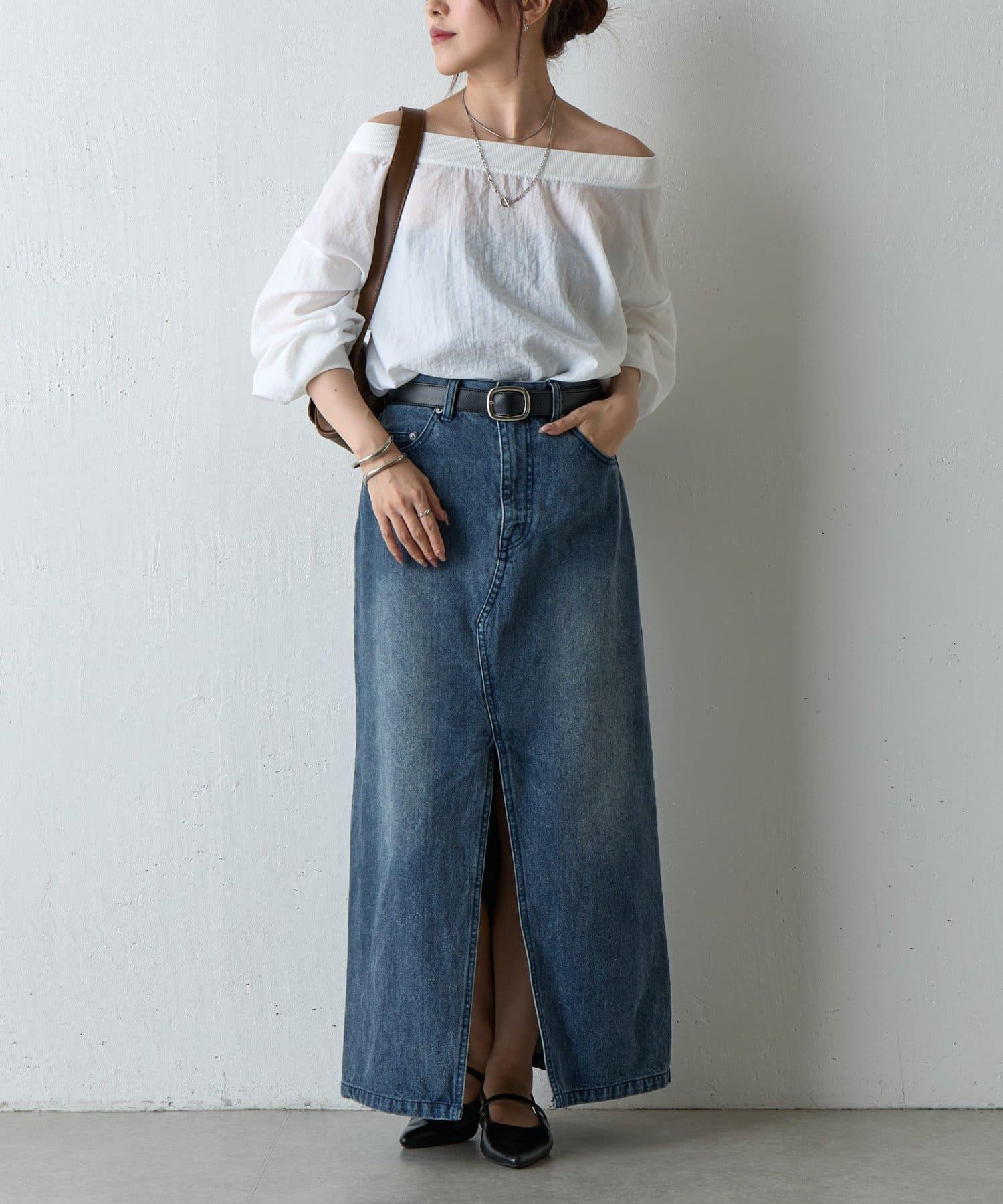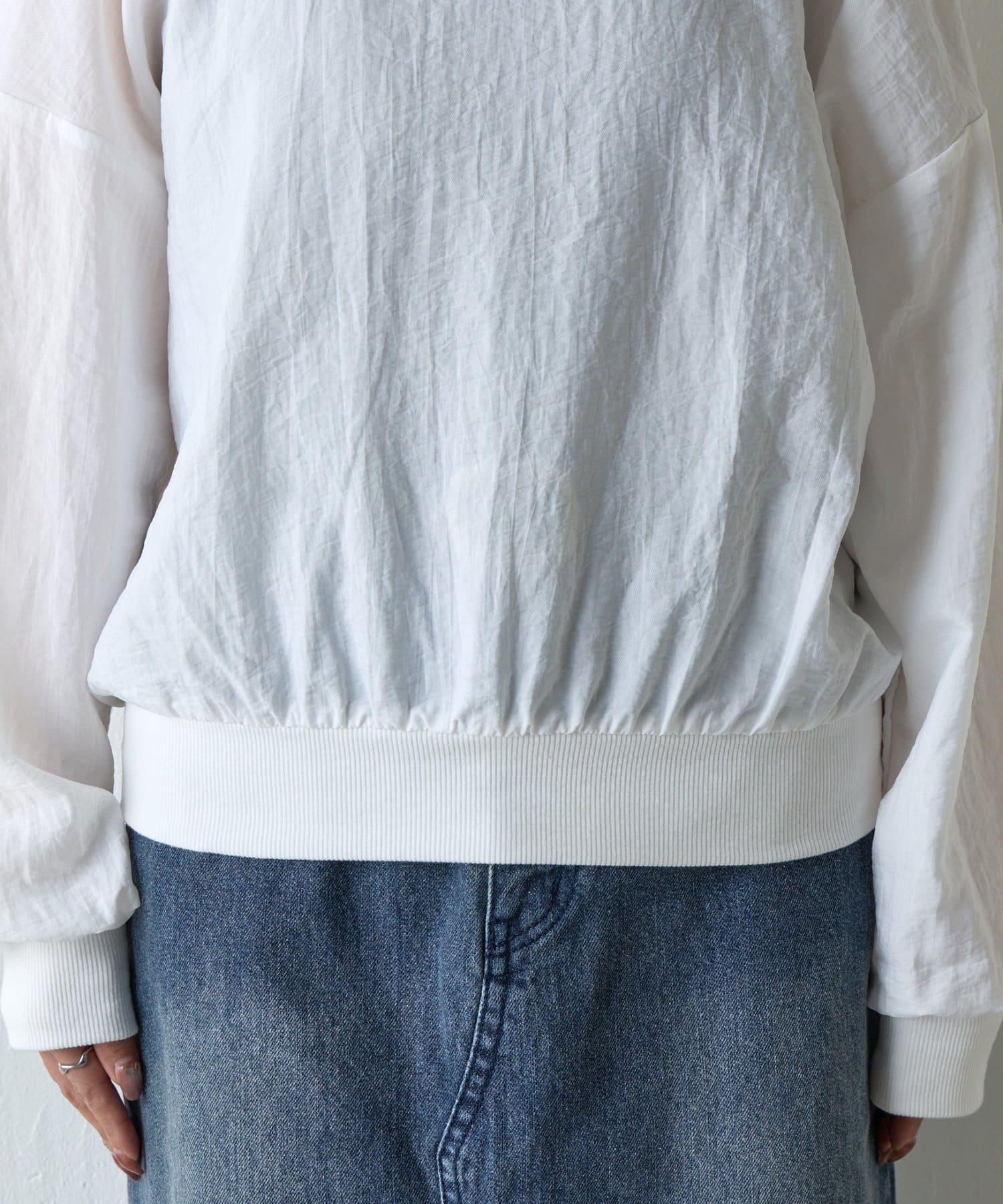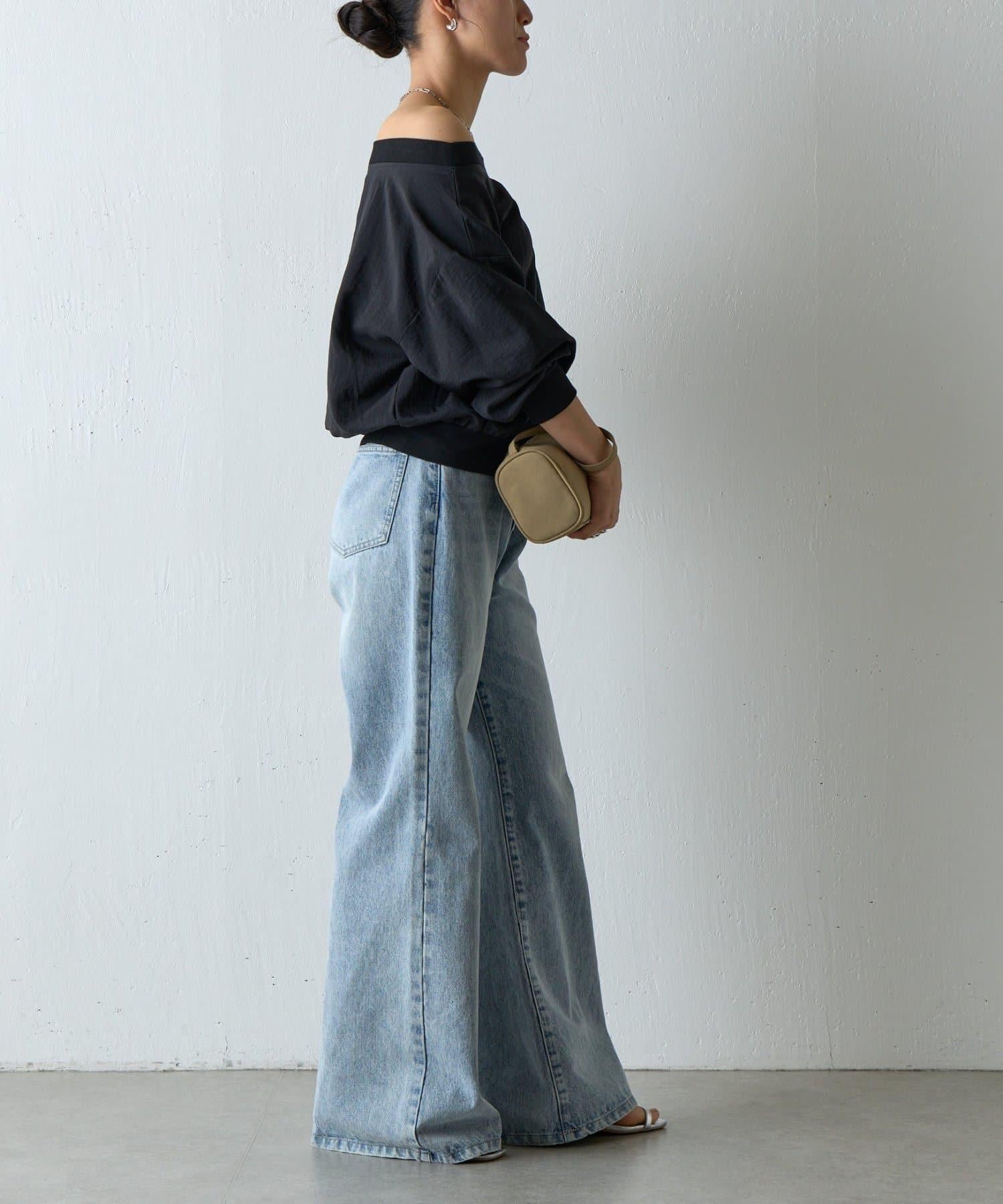 微微的光澤感非常時髦。露肩套頭衫,透薄輕盈。