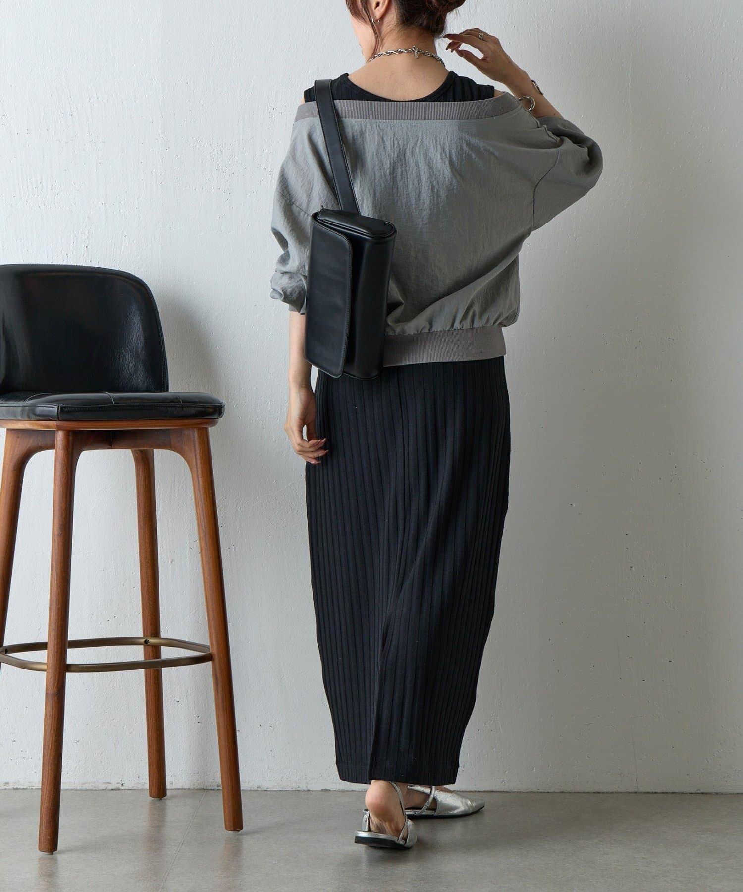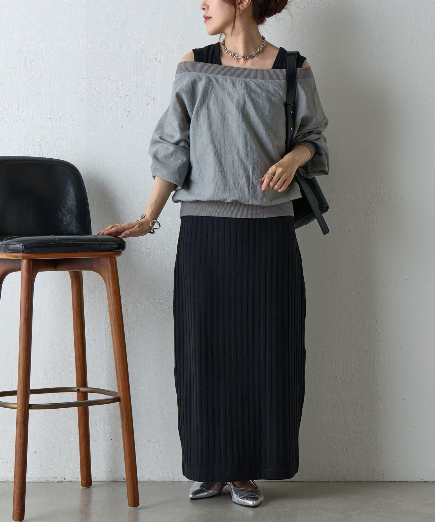 雙向設計,既可作為露肩單品露肩穿著,也可與船領款式自然搭配。