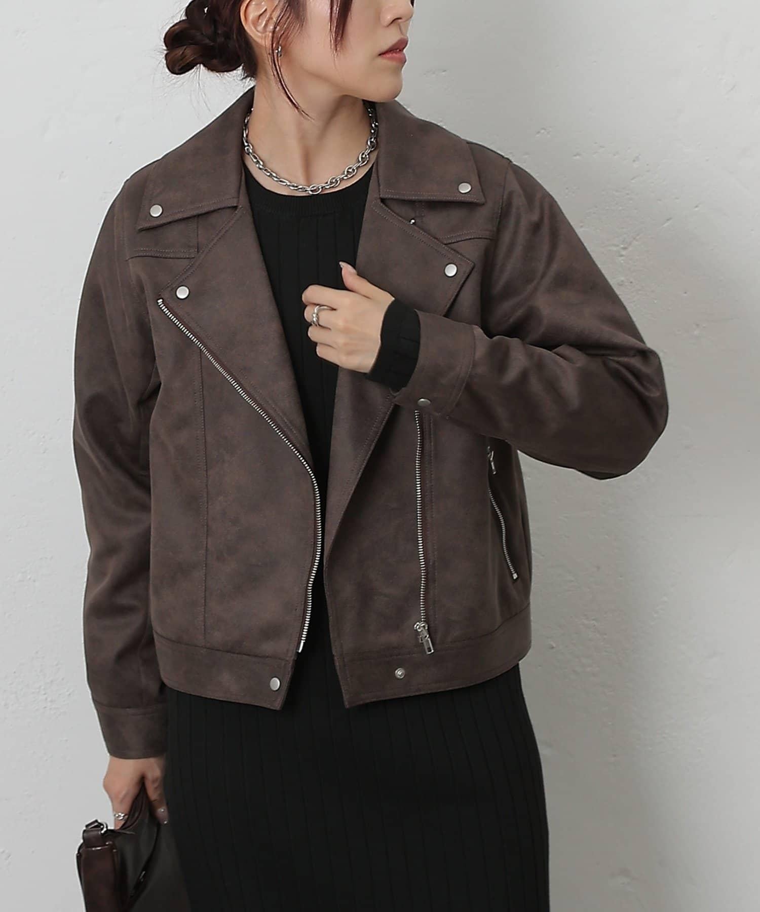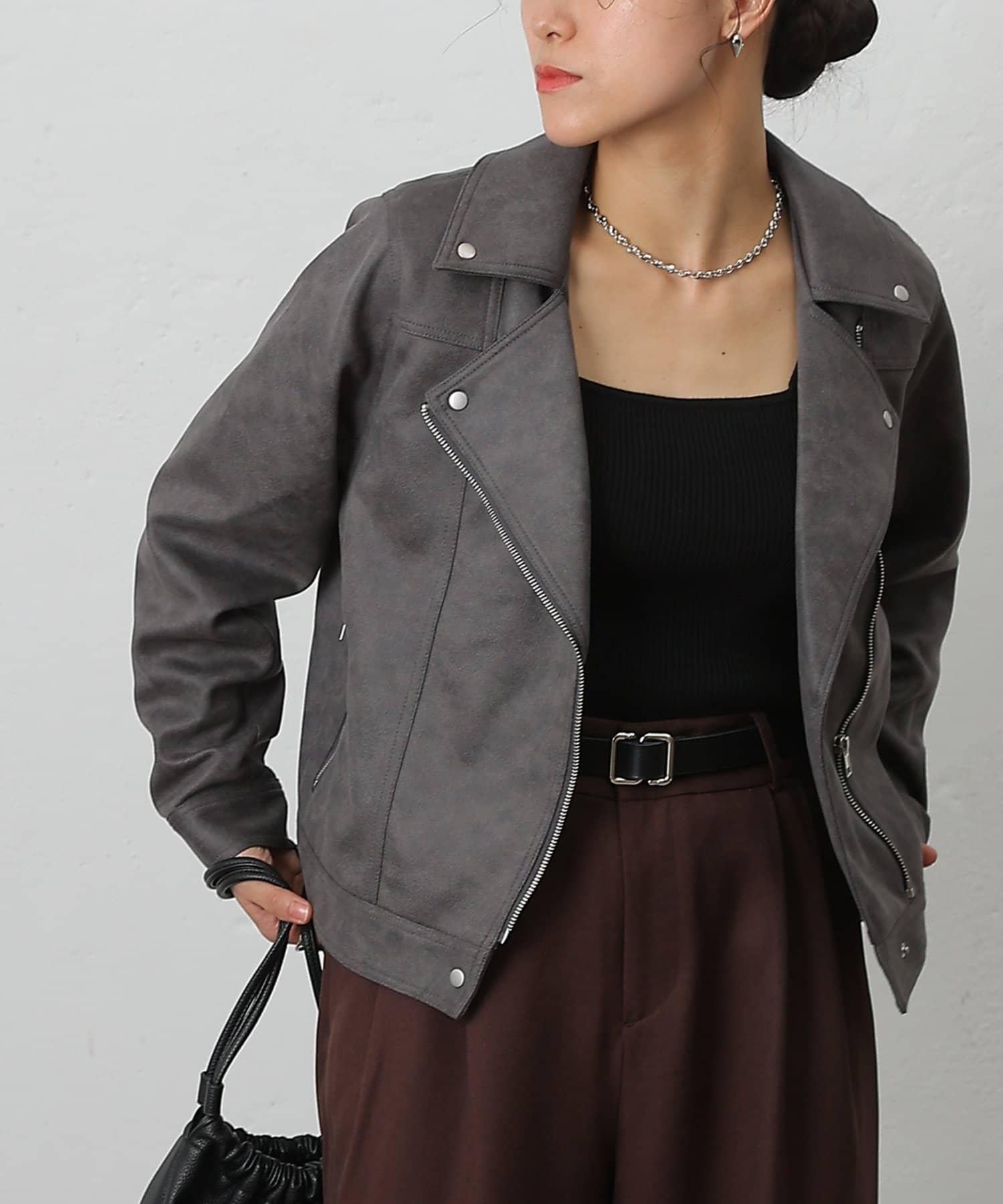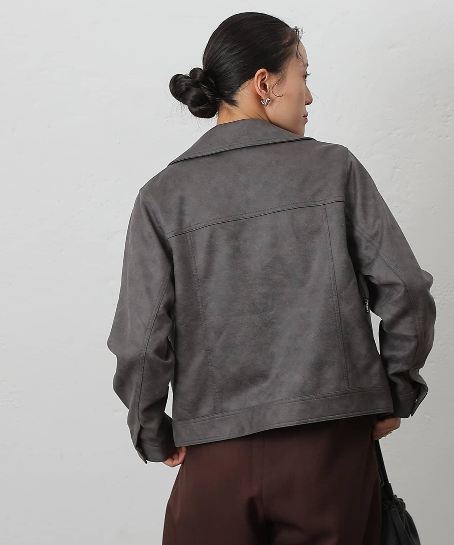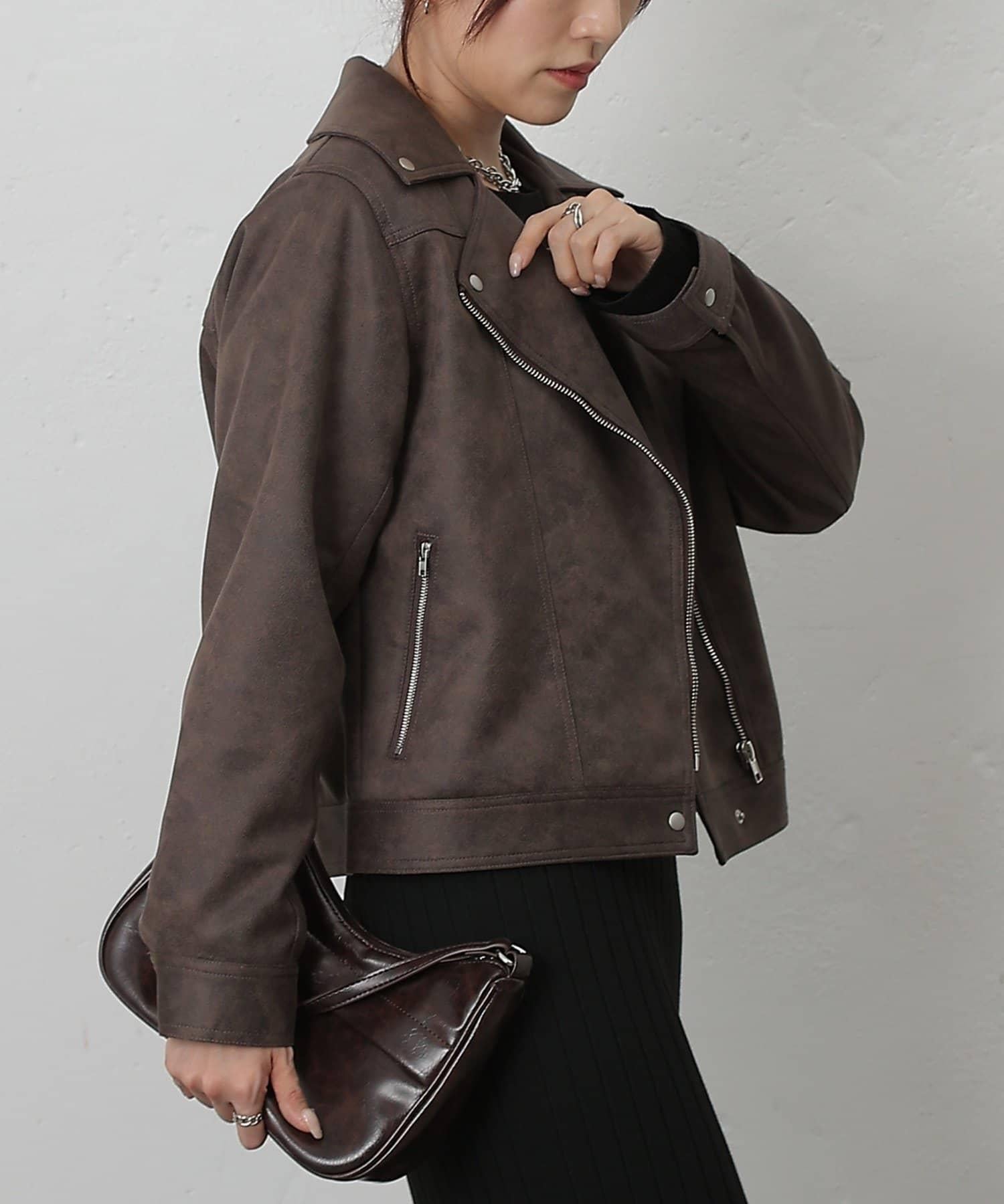 仿麂皮絨質地優雅柔軟。雖然具有真皮的厚重感,但它輕便易打理,非常適合日常穿著。柔軟優雅的質地不會太硬,成熟女性也很容易採用。銀色的拉鍊和鈕釦起到了微妙的點綴作用,設計簡潔而前衛,氣場十足。廓形體積較小,給人圓潤的印象,提升時尚感。除了休閒的牛仔款式,還建議搭配連衣裙或半身裙,甜美與辛辣並存。它的質地略帶復古感,因此只需在簡單的服裝上穿上它,就能以完全不同的方式更新你的一貫風格。用配飾和小物件增添俏皮感,打造出更屬於自己的風格。它是一款能讓您在秋冬日常搭配中充滿自信的單品。