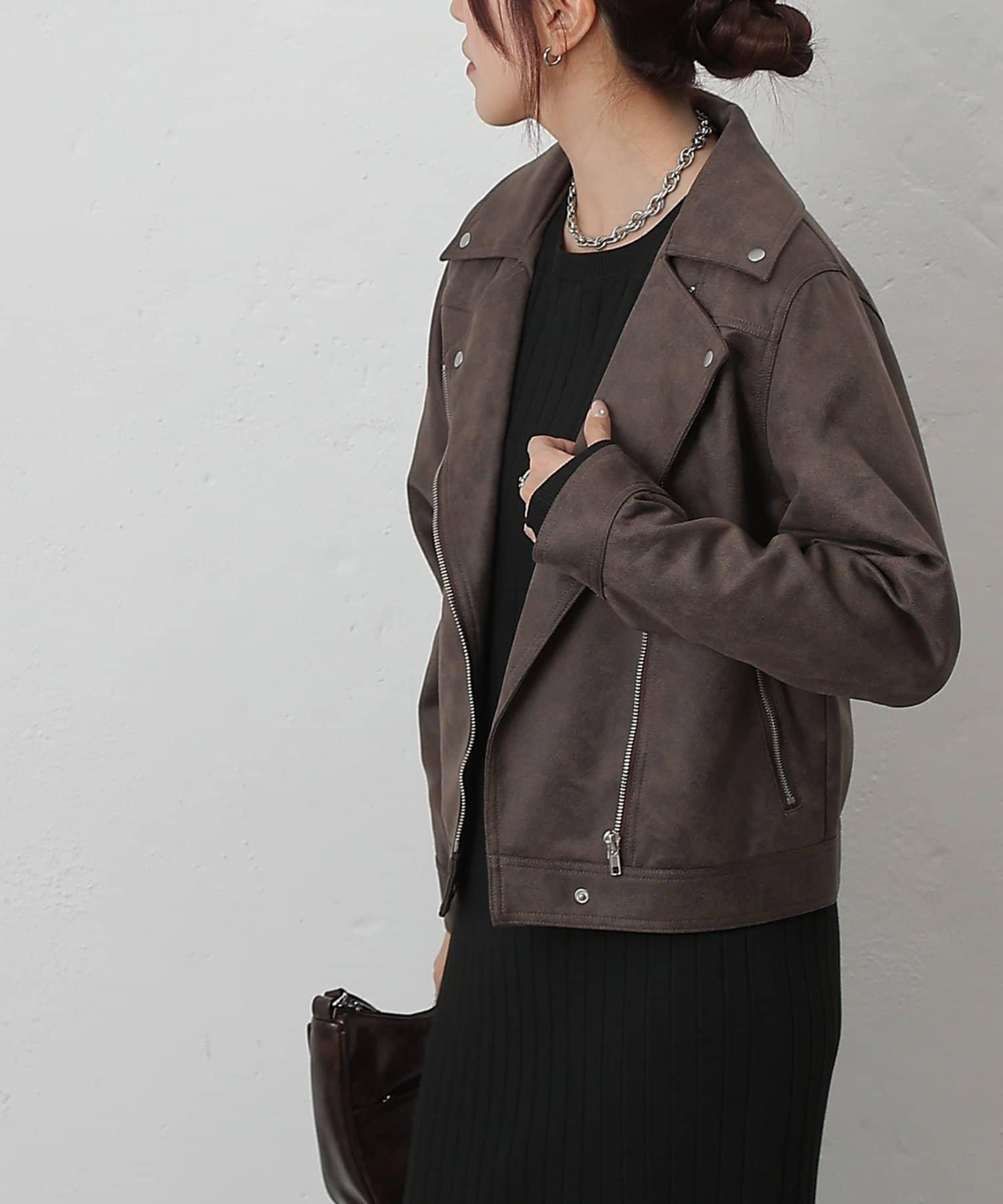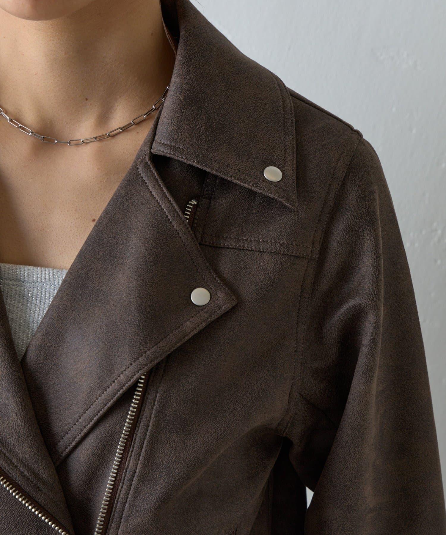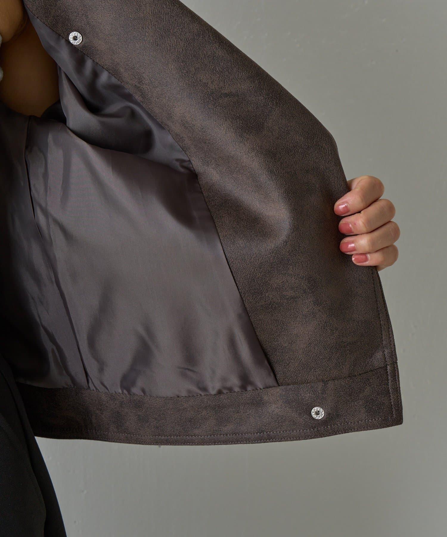 仿麂皮絨質地優雅柔軟。雖然具有真皮的厚重感,但它輕便易打理,非常適合日常穿著。柔軟優雅的質地不會太硬,成熟女性也很容易採用。銀色的拉鍊和鈕釦起到了微妙的點綴作用,設計簡潔而前衛,氣場十足。廓形體積較小,給人圓潤的印象,提升時尚感。除了休閒的牛仔款式,還建議搭配連衣裙或半身裙,甜美與辛辣並存。它的質地略帶復古感,因此只需在簡單的服裝上穿上它,就能以完全不同的方式更新你的一貫風格。用配飾和小物件增添俏皮感,打造出更屬於自己的風格。它是一款能讓您在秋冬日常搭配中充滿自信的單品。