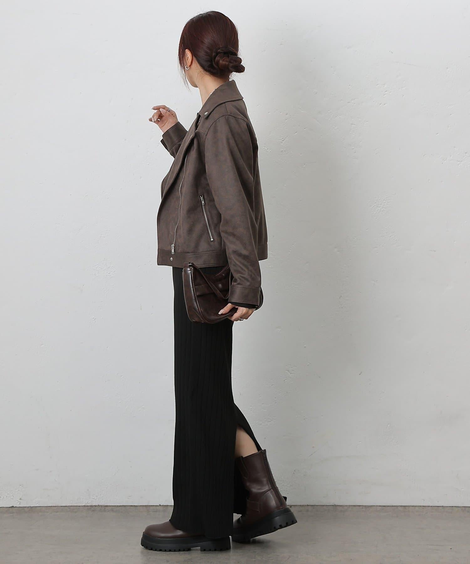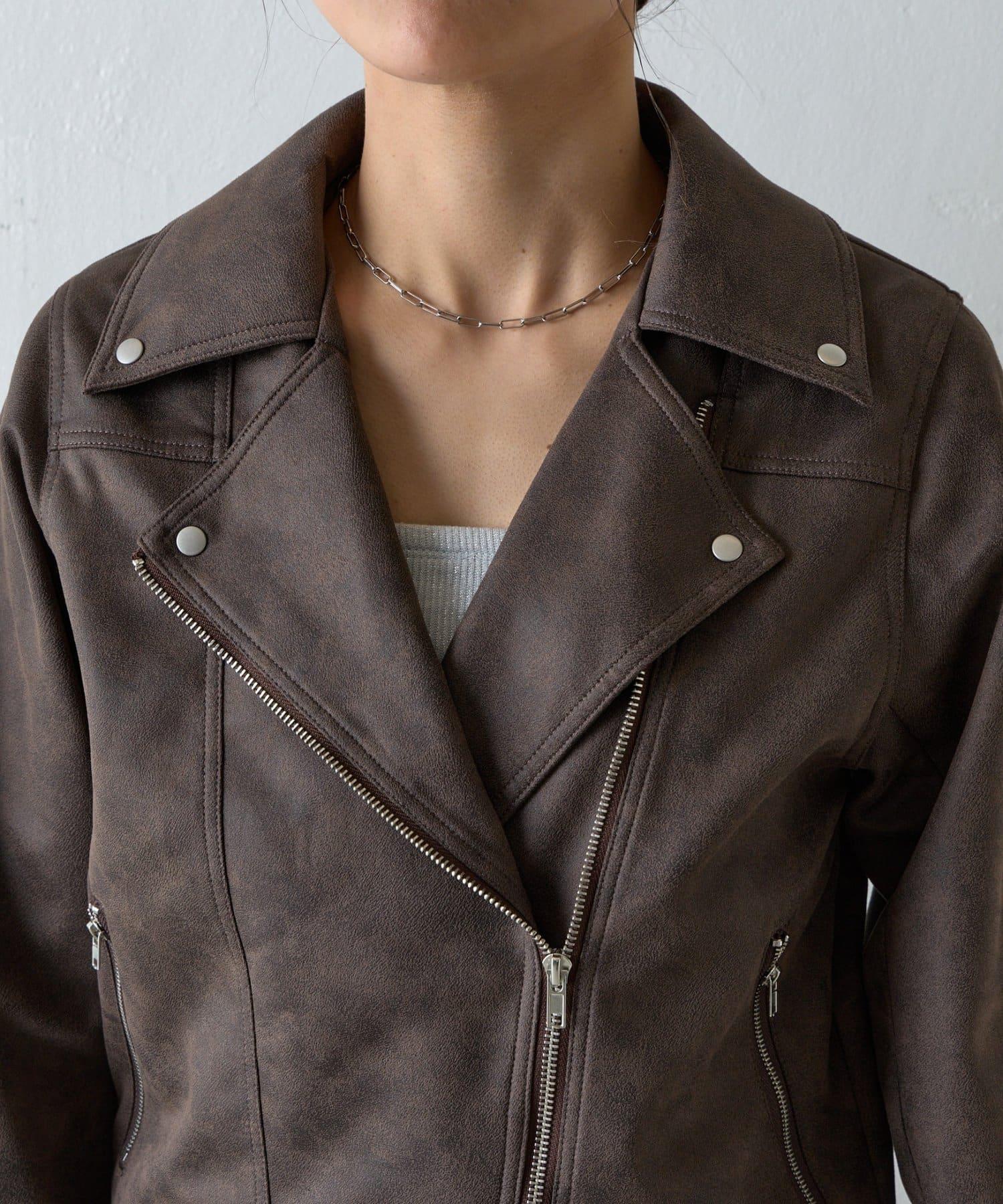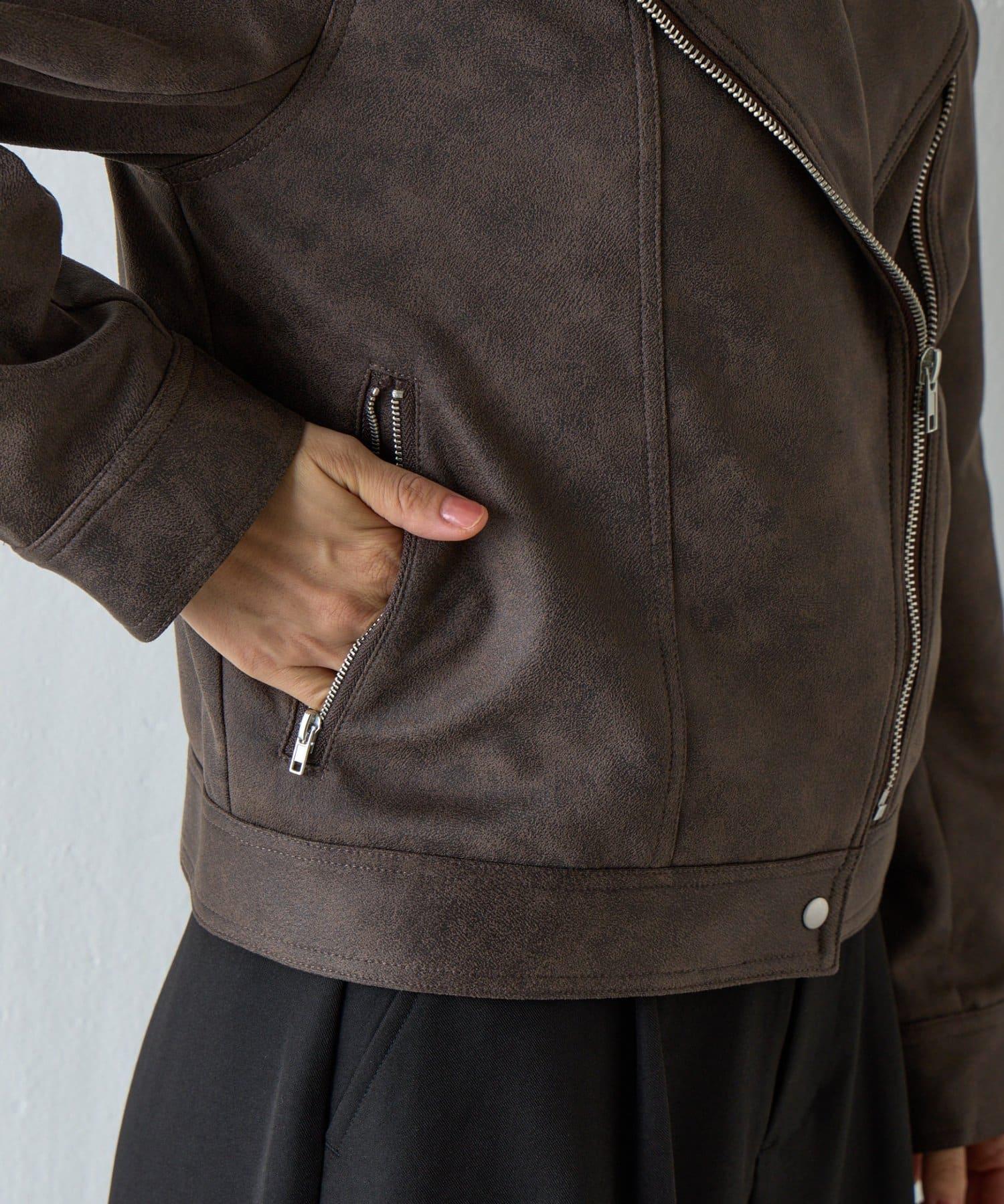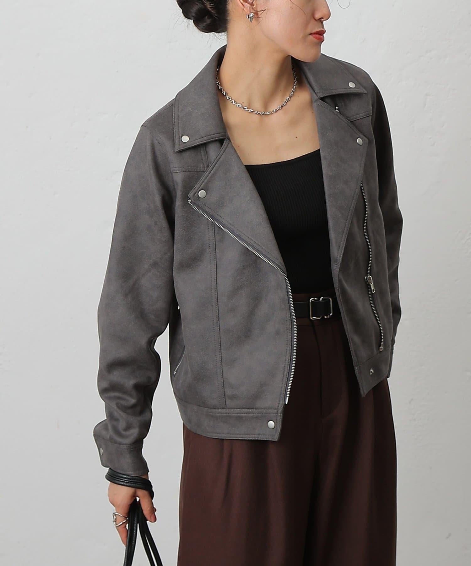 仿麂皮絨質地優雅柔軟。雖然具有真皮的厚重感,但它輕便易打理,非常適合日常穿著。柔軟優雅的質地不會太硬,成熟女性也很容易採用。銀色的拉鍊和鈕釦起到了微妙的點綴作用,設計簡潔而前衛,氣場十足。廓形體積較小,給人圓潤的印象,提升時尚感。除了休閒的牛仔款式,還建議搭配連衣裙或半身裙,甜美與辛辣並存。它的質地略帶復古感,因此只需在簡單的服裝上穿上它,就能以完全不同的方式更新你的一貫風格。用配飾和小物件增添俏皮感,打造出更屬於自己的風格。它是一款能讓您在秋冬日常搭配中充滿自信的單品。
