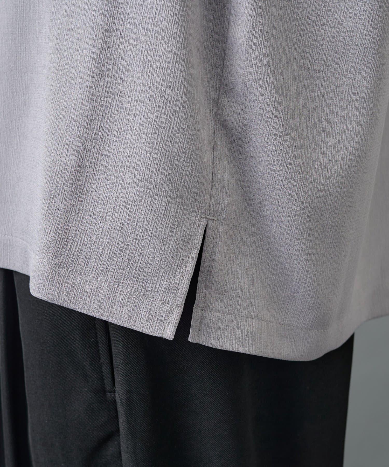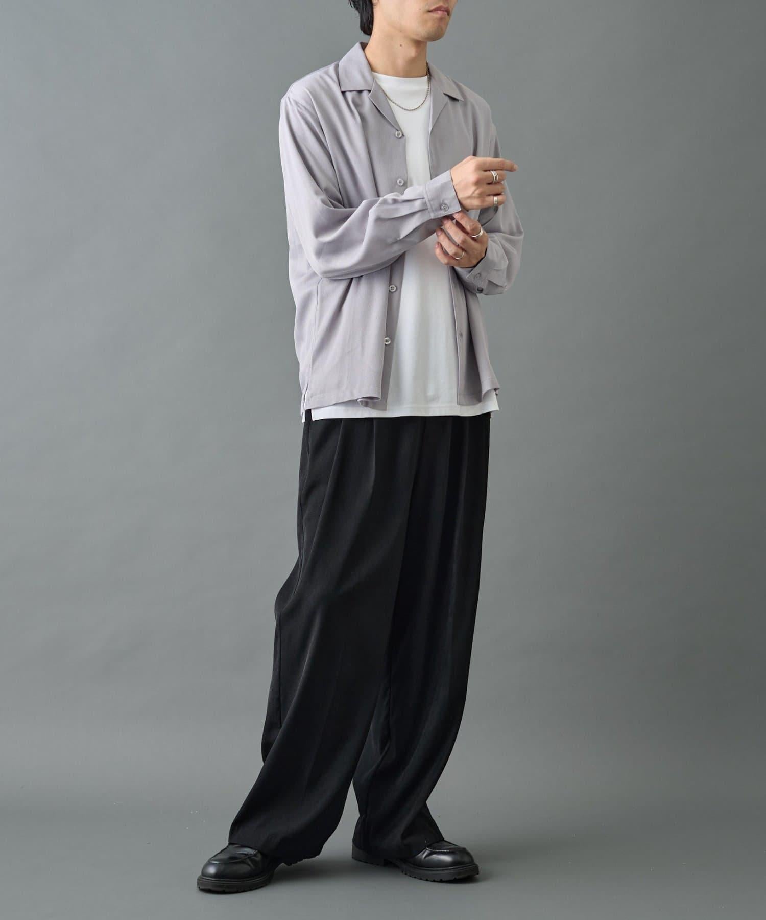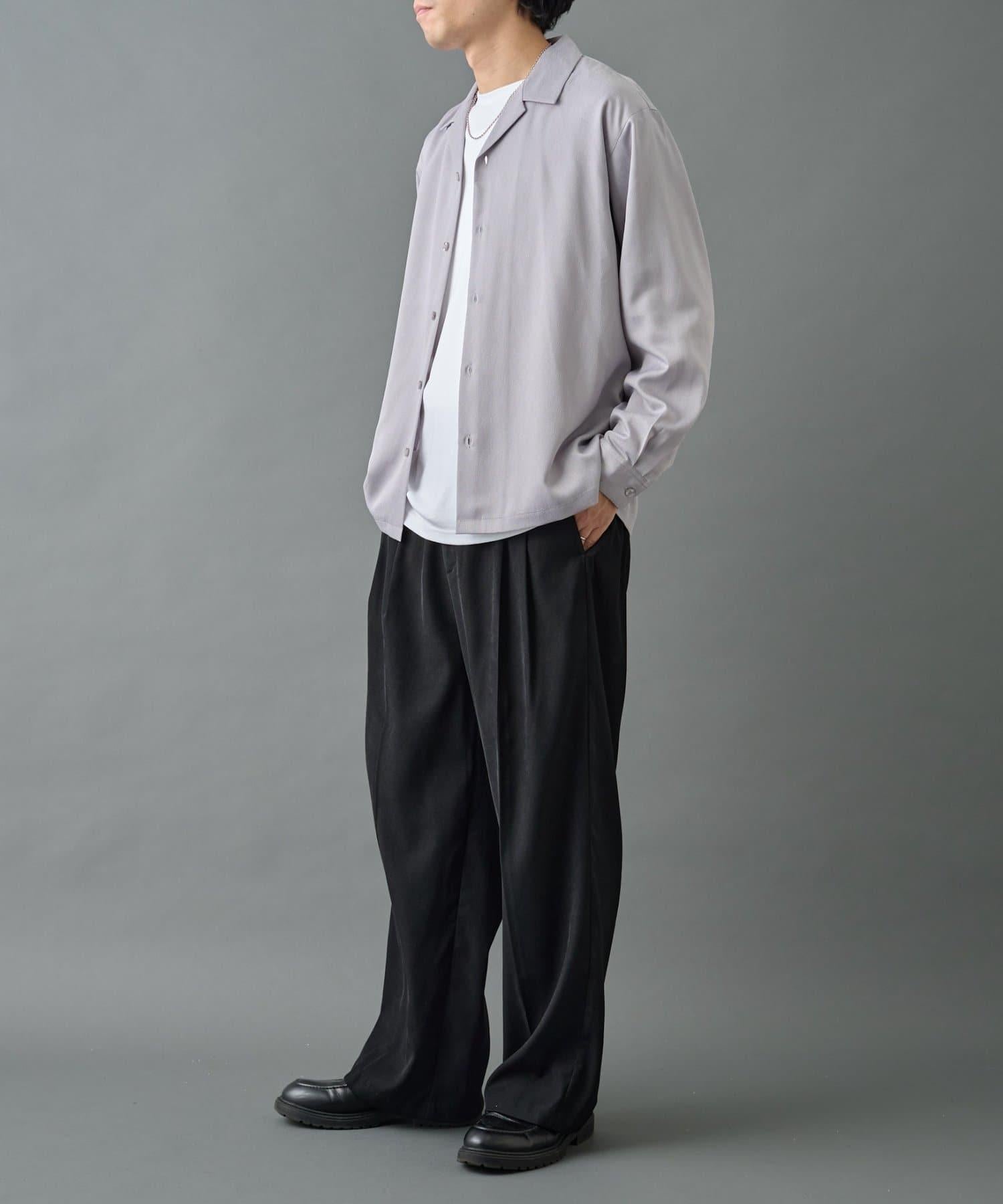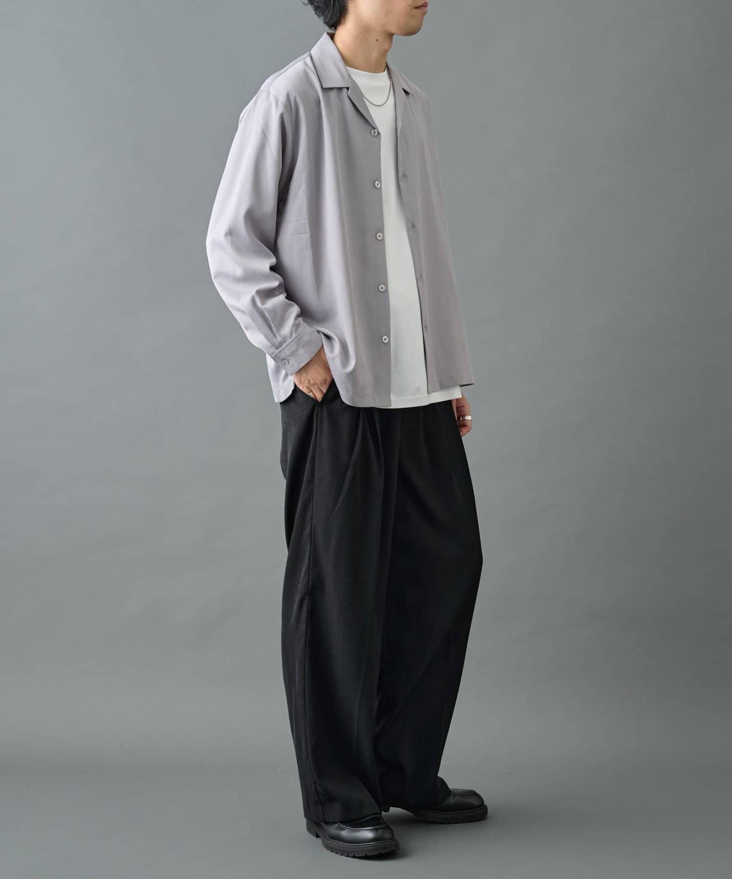 寬鬆開領襯衫,給人清爽涼快的印象。