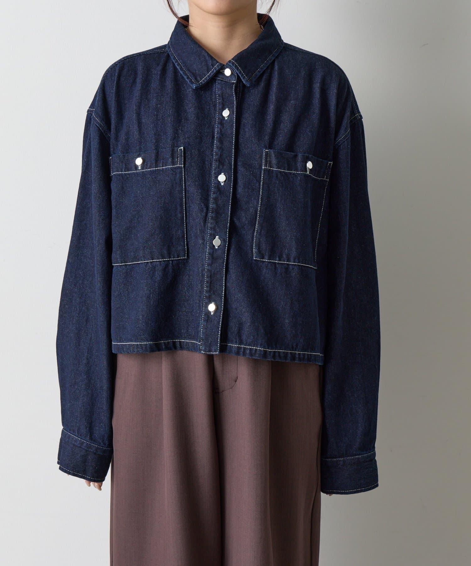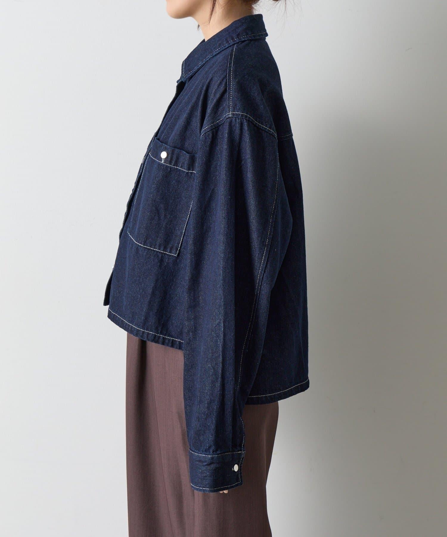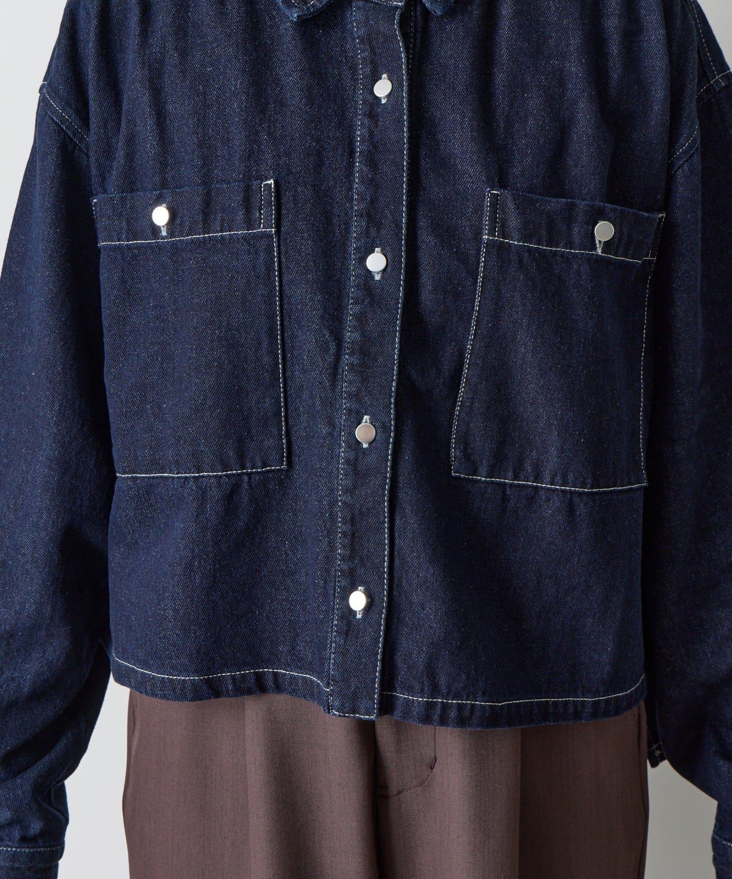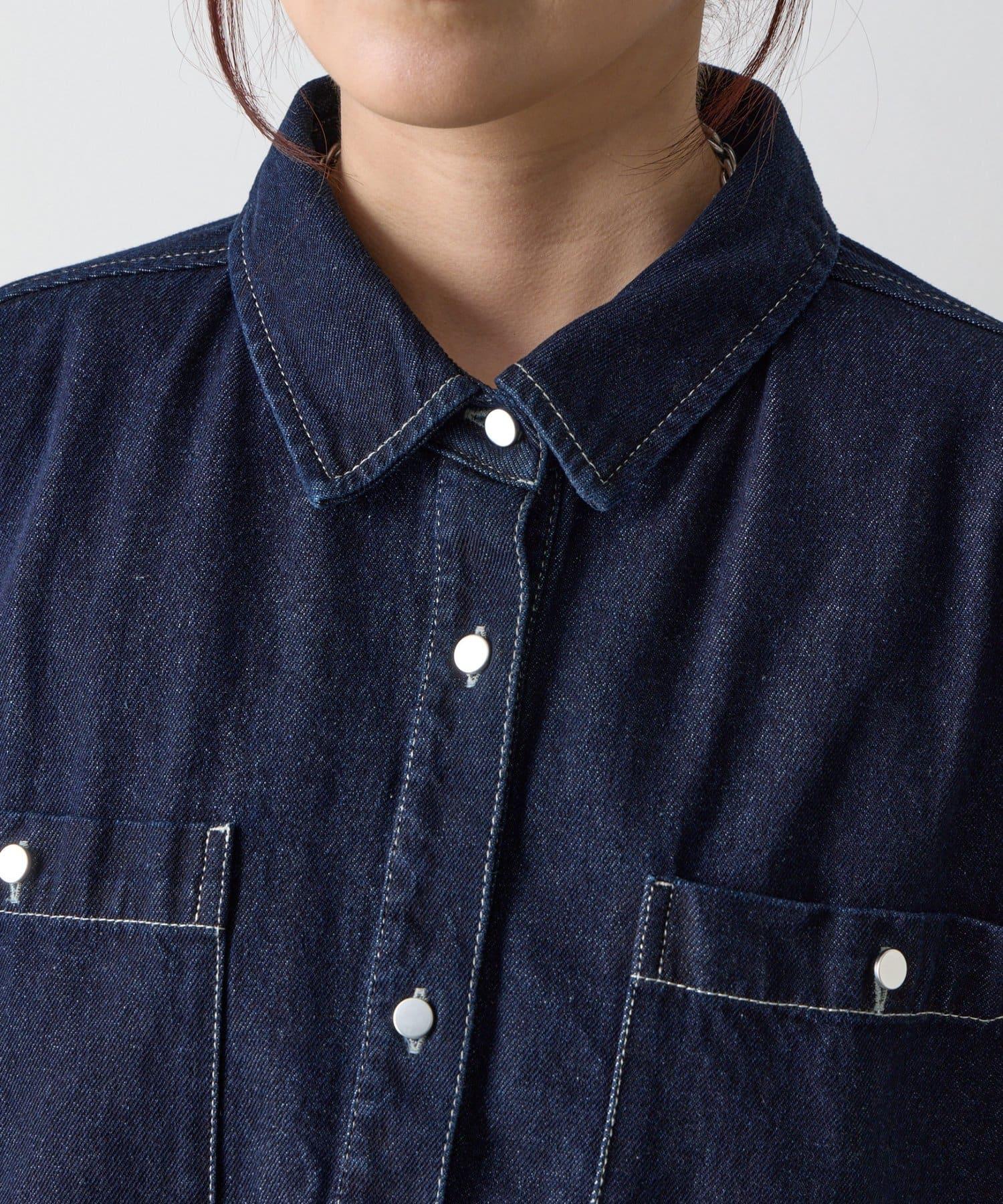 8oz Denim Cropped Shirt 採用牛仔布料製成,但質地輕盈柔軟。