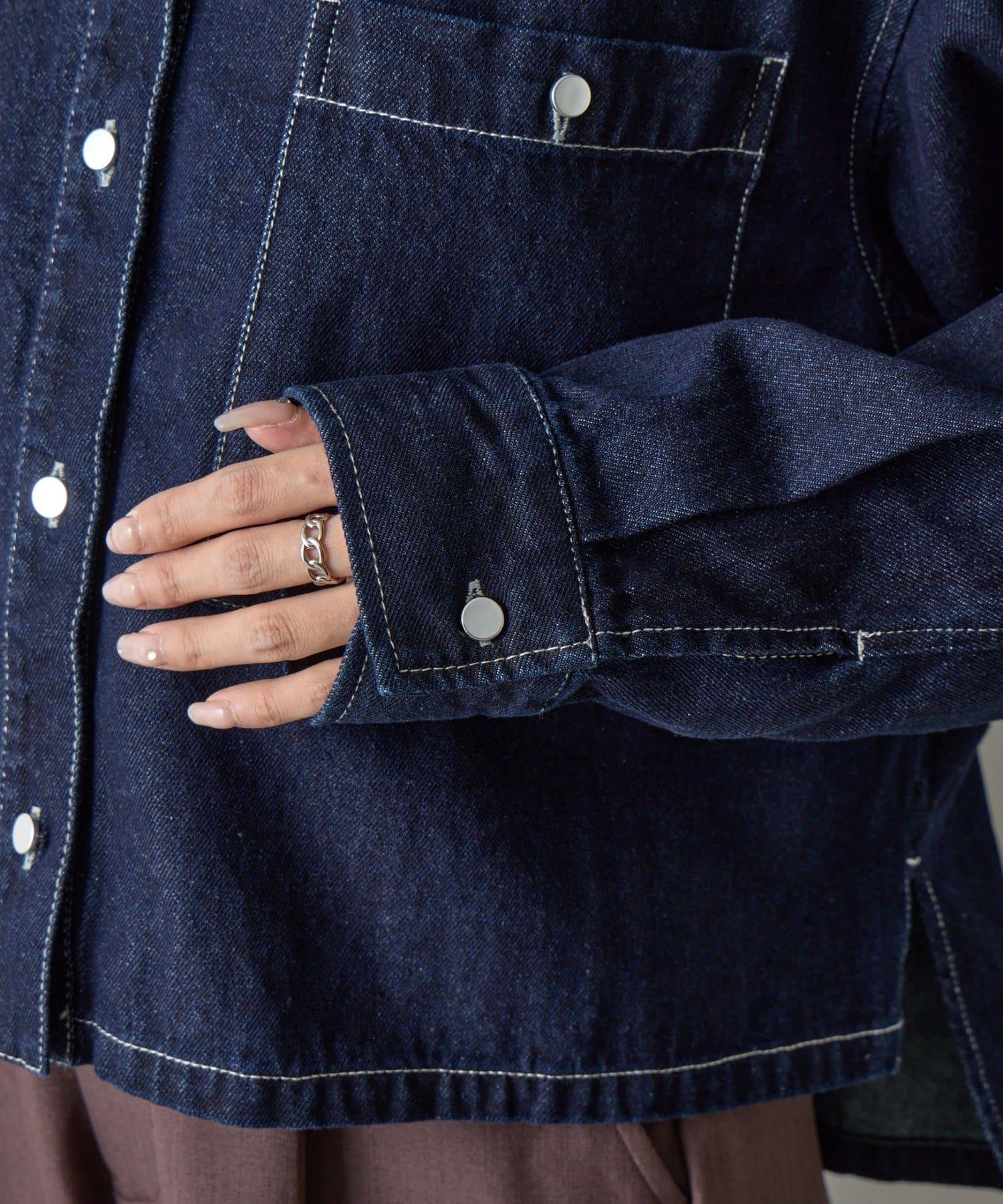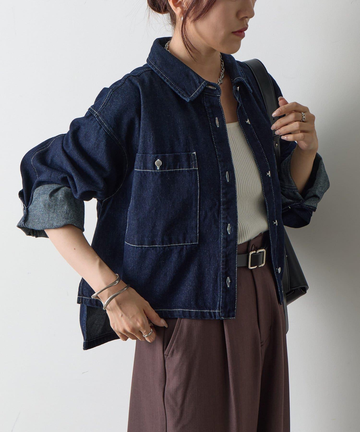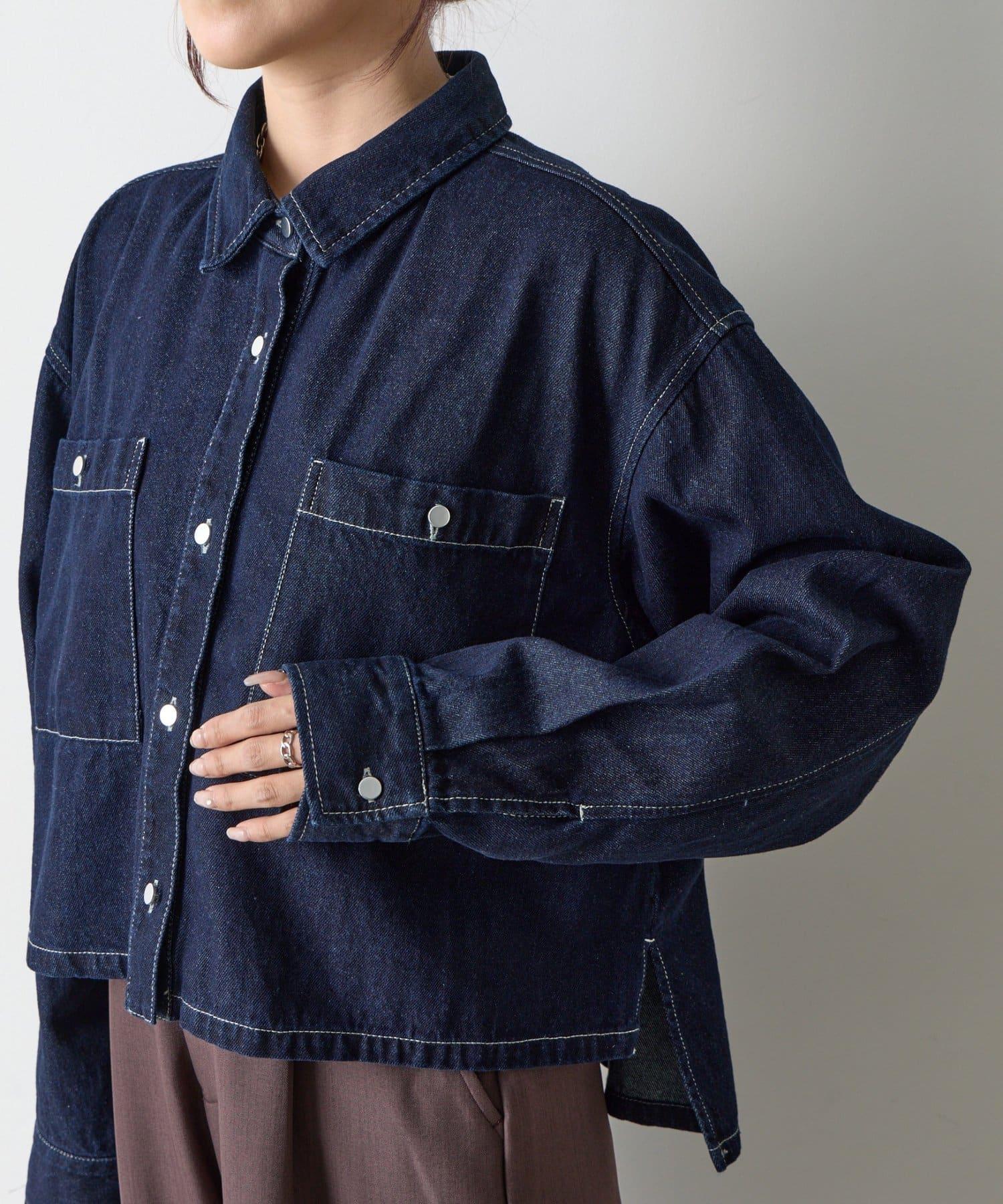 8oz Denim Cropped Shirt 採用牛仔布料製成,但質地輕盈柔軟。