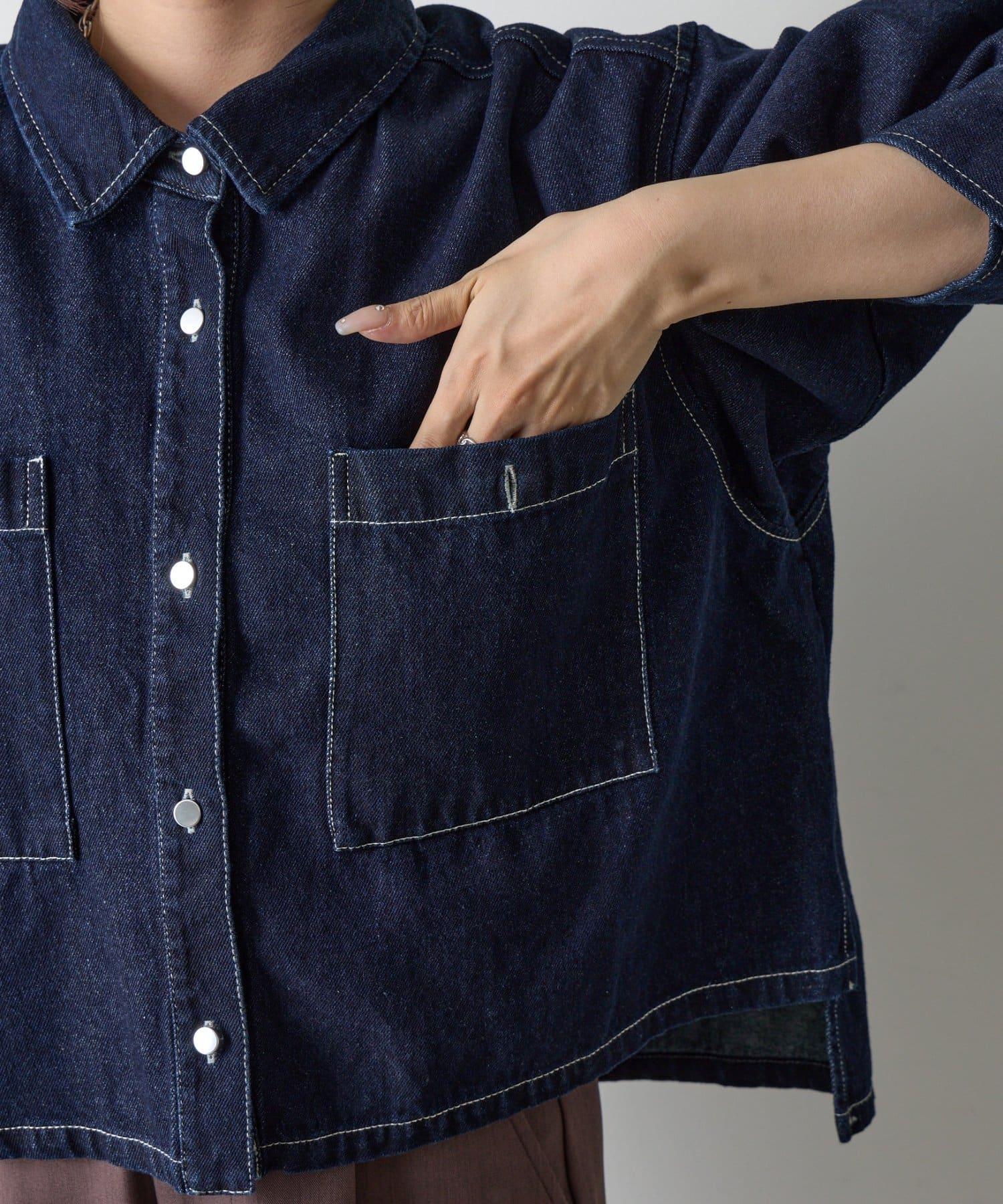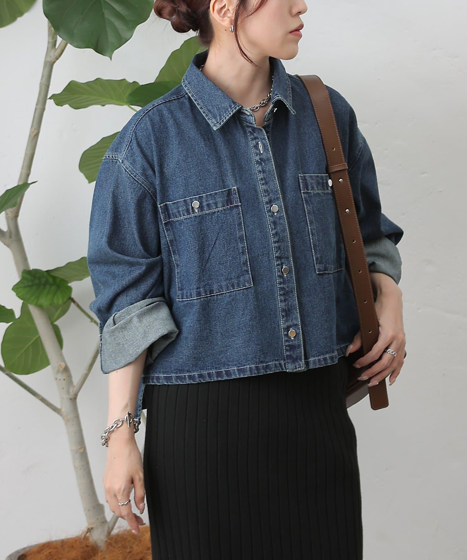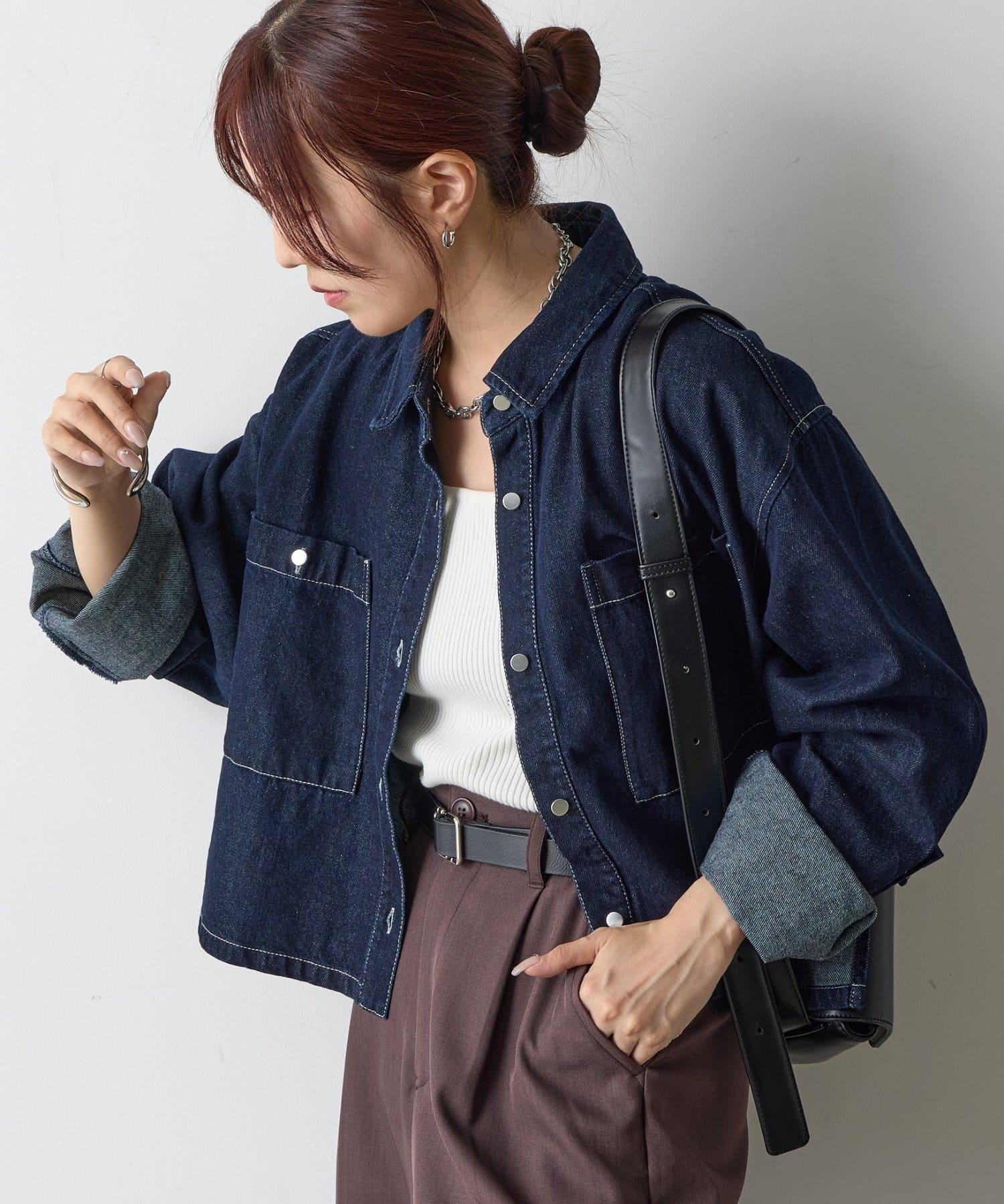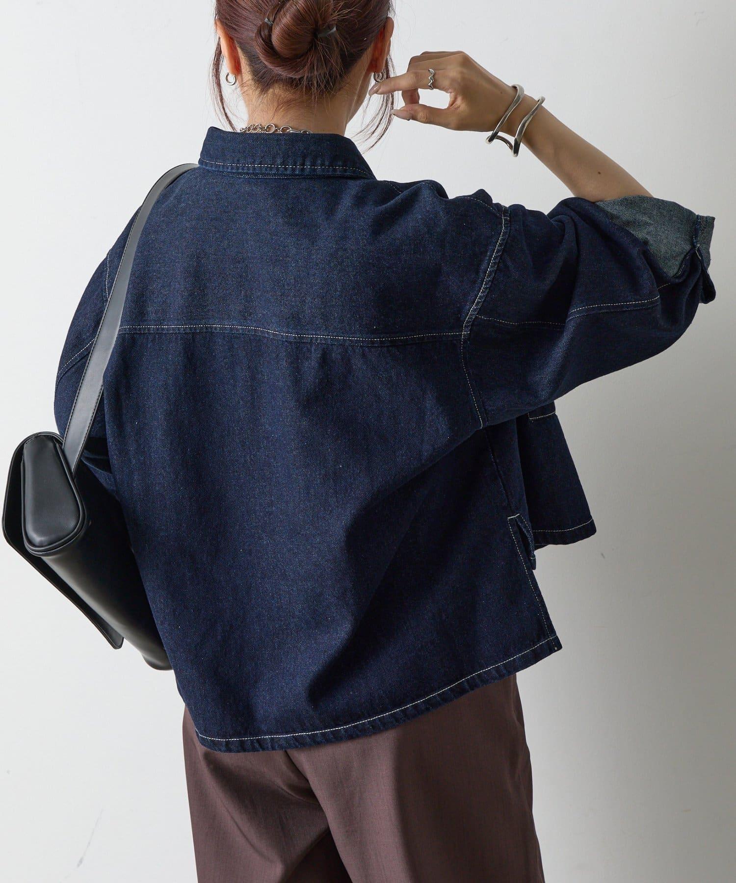 8oz Denim Cropped Shirt 採用牛仔布料製成,但質地輕盈柔軟。