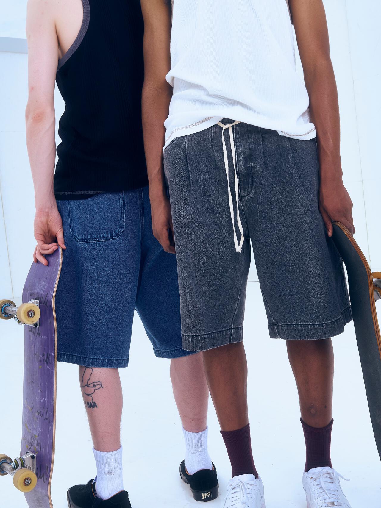 B omnivore/ B omnivore 牛仔寬短褲 牛仔寬短褲 水洗牛仔布短褲。寬身剪裁,體積感十足。有藍色和黑色可供選擇,方便造型。B omnivore] [B omnivore] omnivore = 可與各種時尚風格混搭的服裝,而不會囿於雜食主義者的血統。
