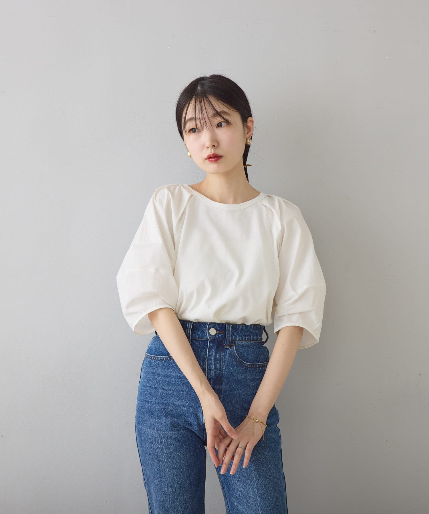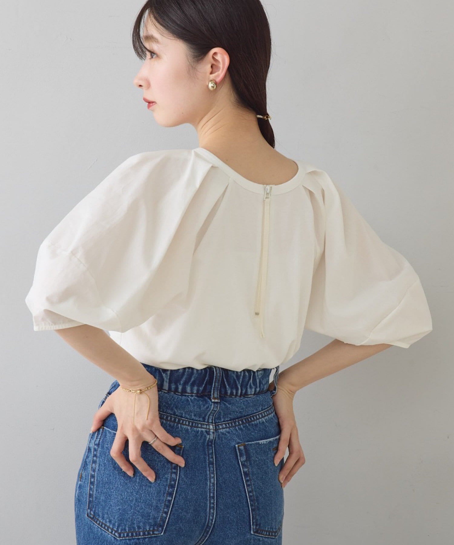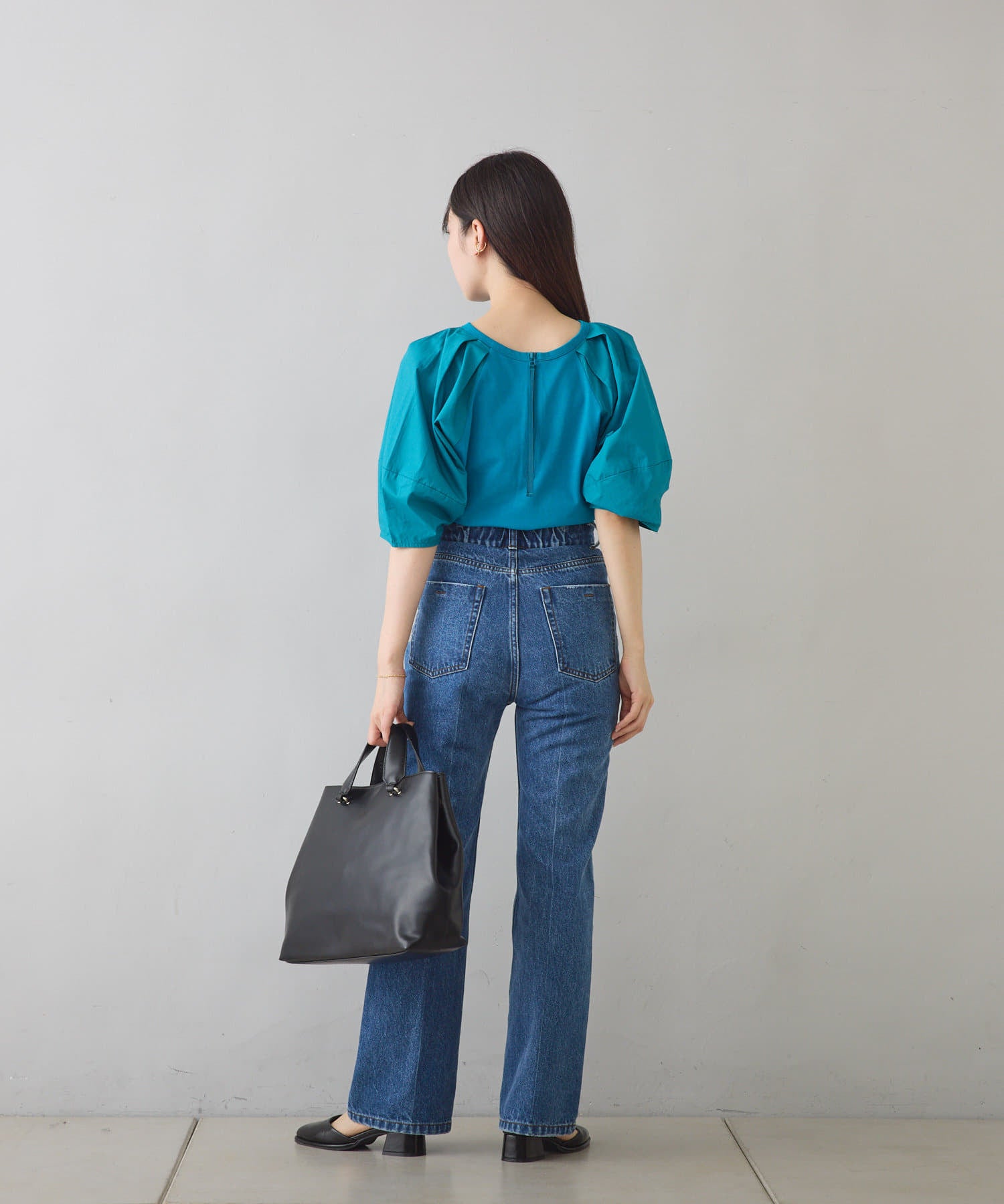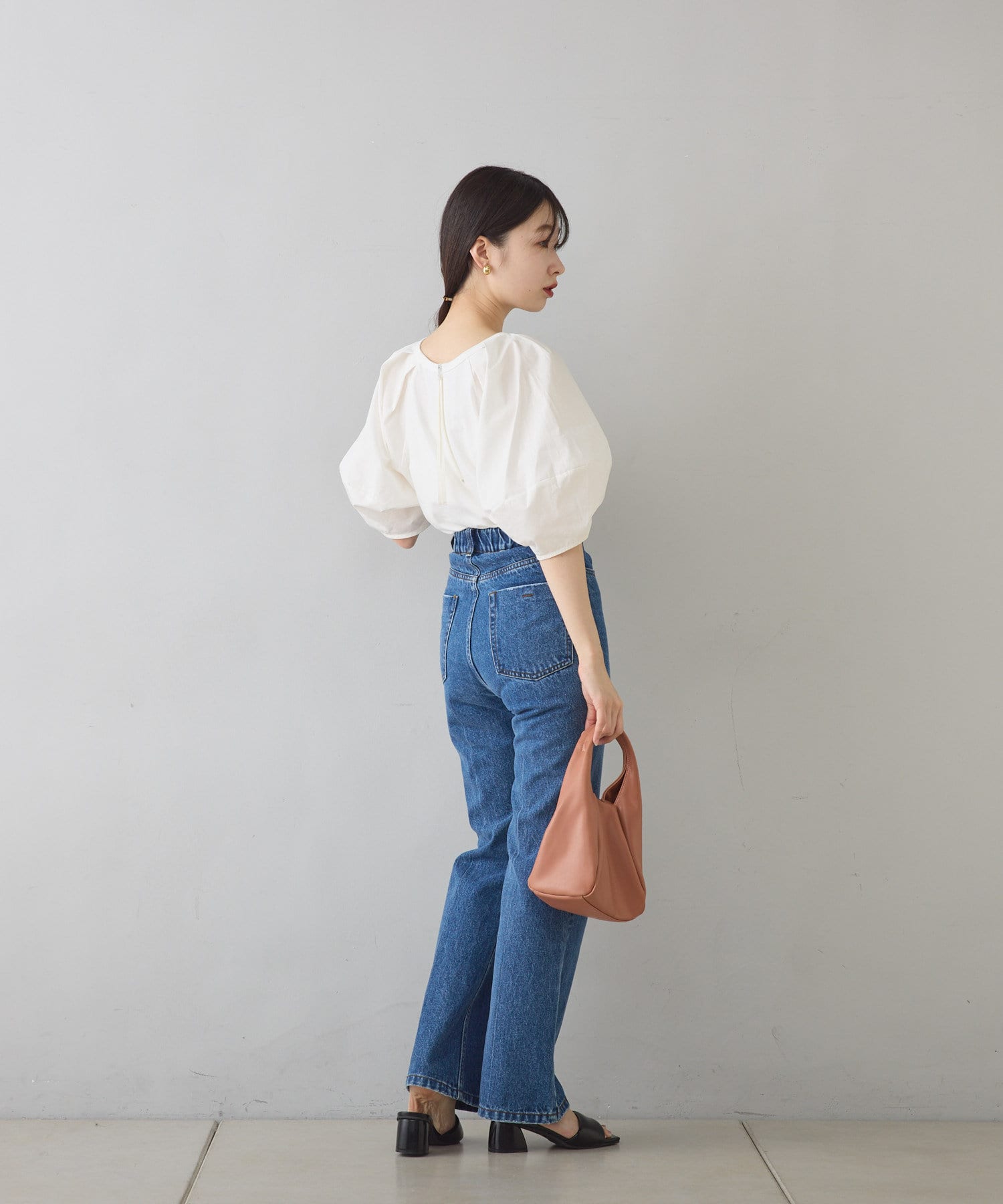蓬鬆的袖子是這件上衣的亮點,因此可以搭配簡單的牛仔下裝,讓你看起來更摩登。