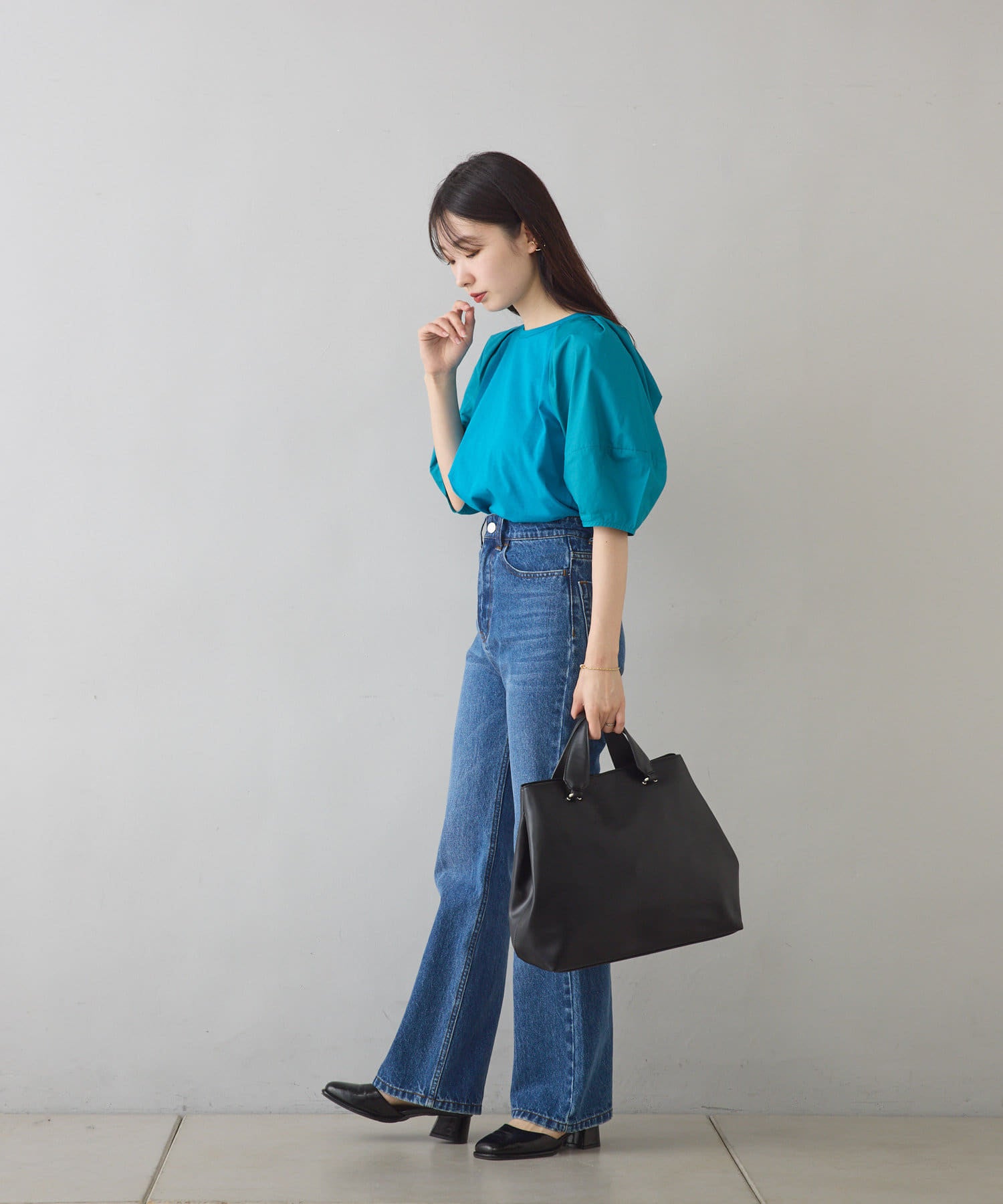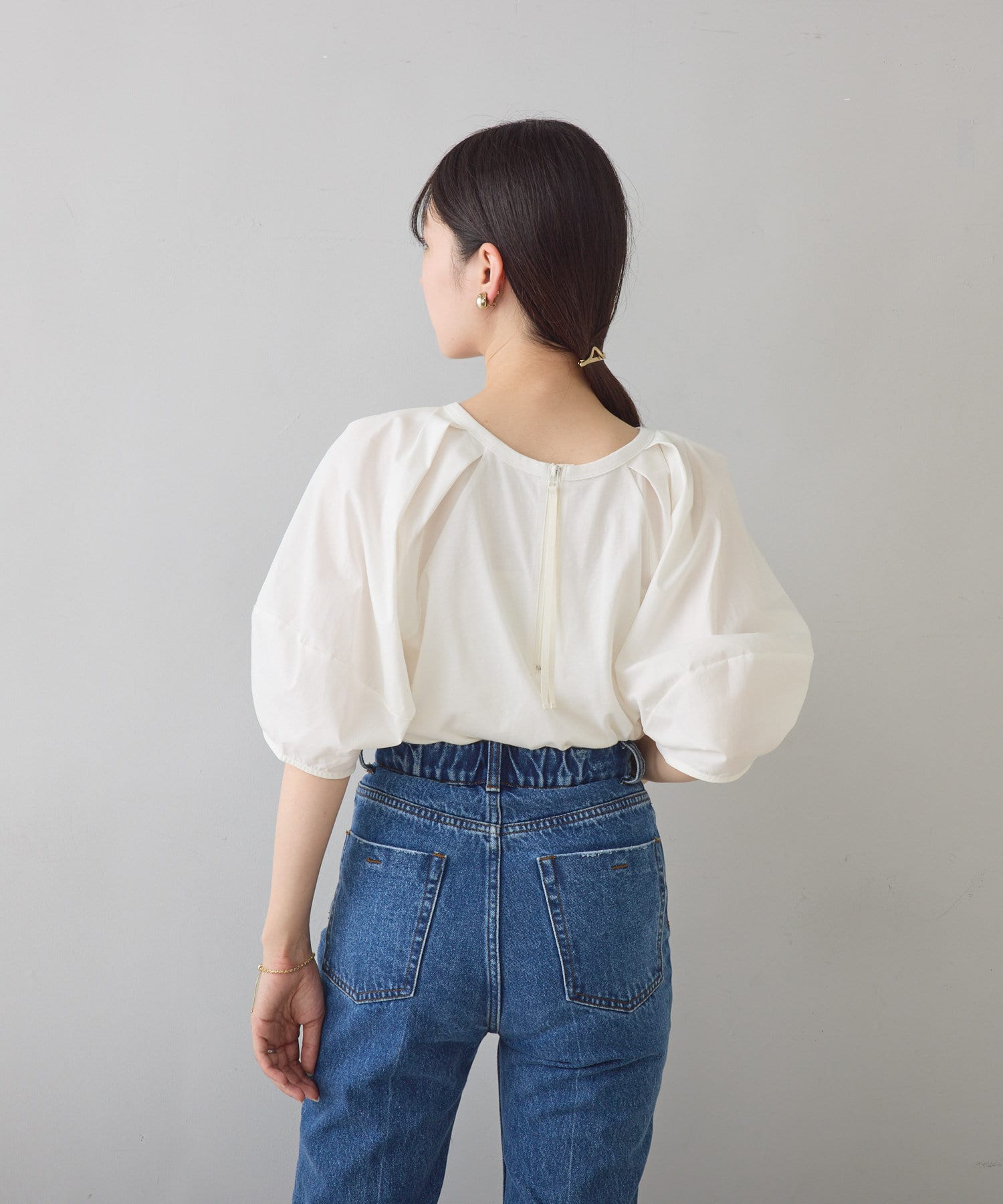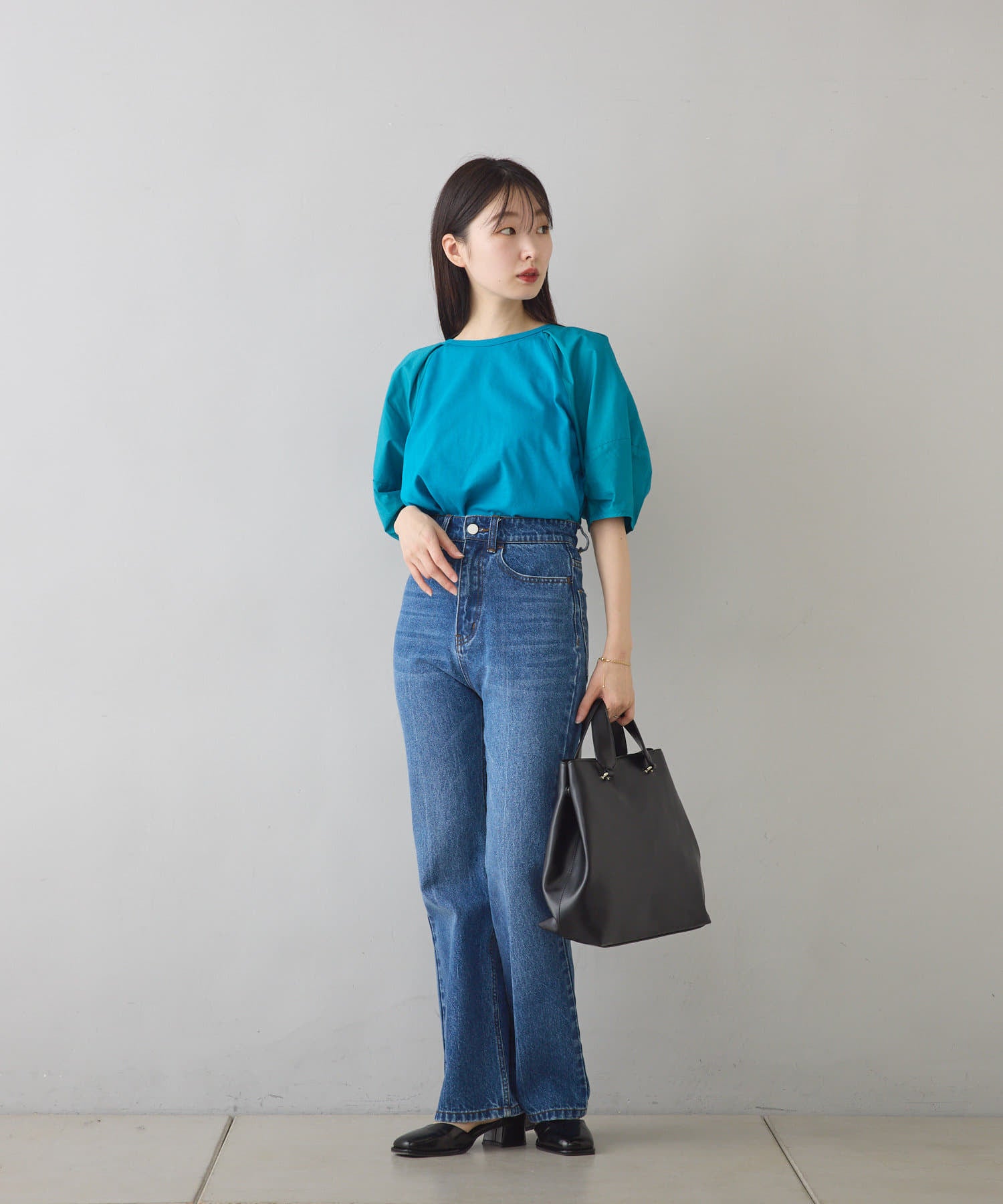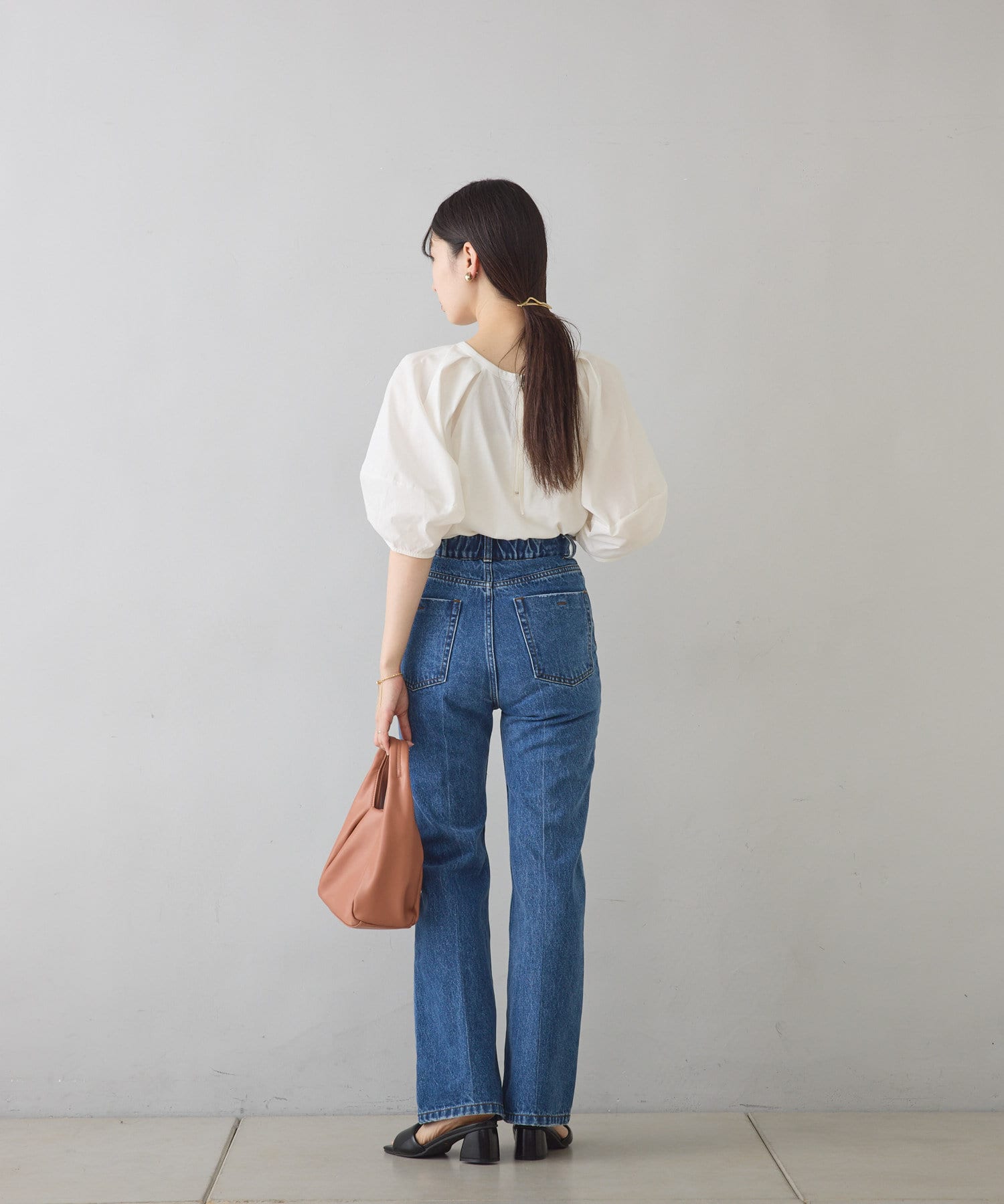 蓬鬆的袖子是這件上衣的亮點,因此可以搭配簡單的牛仔下裝,讓你看起來更摩登。
