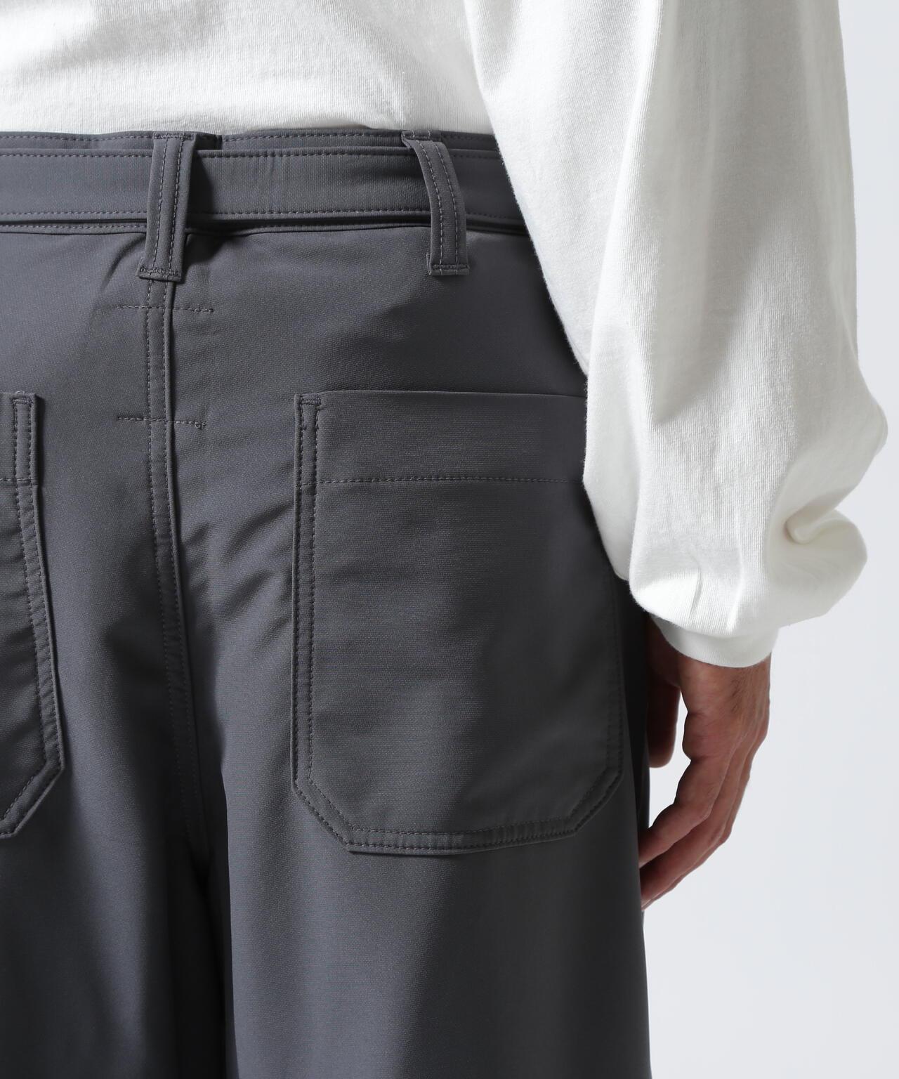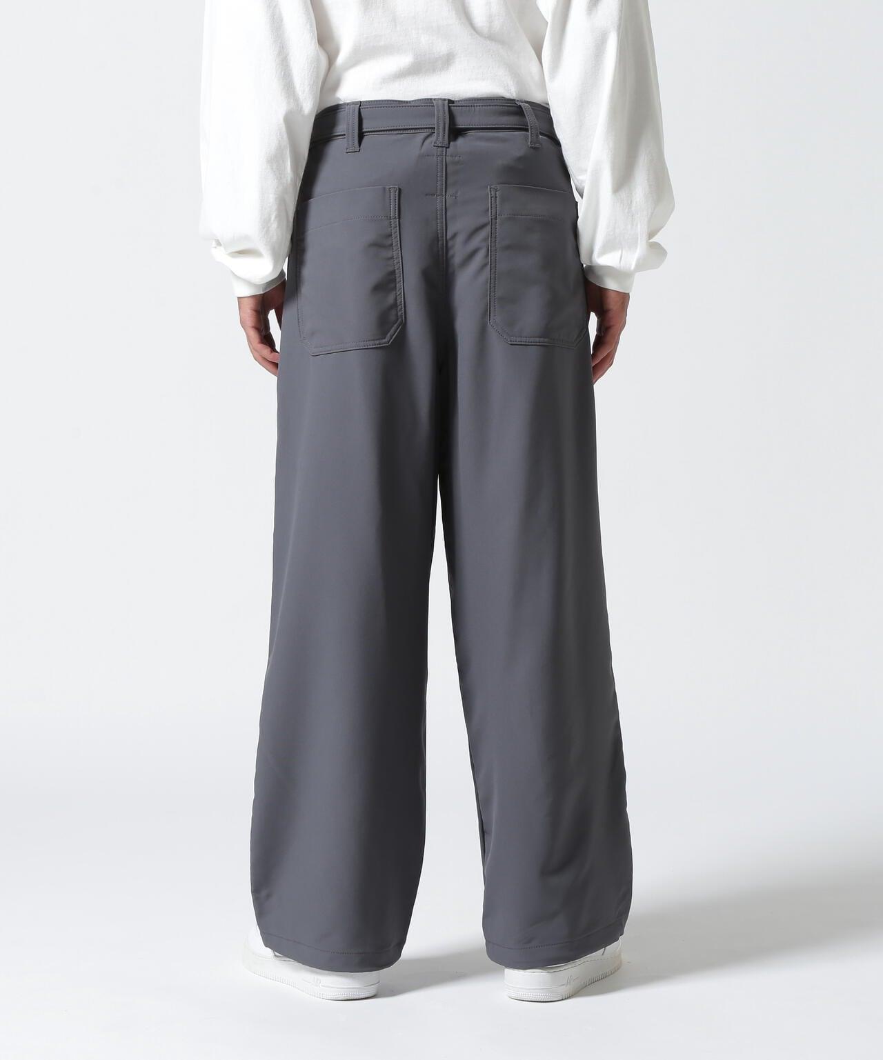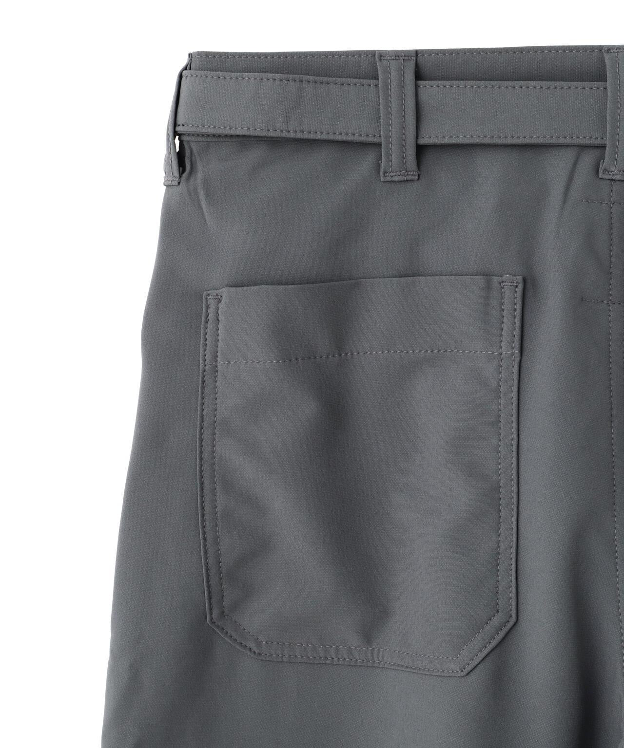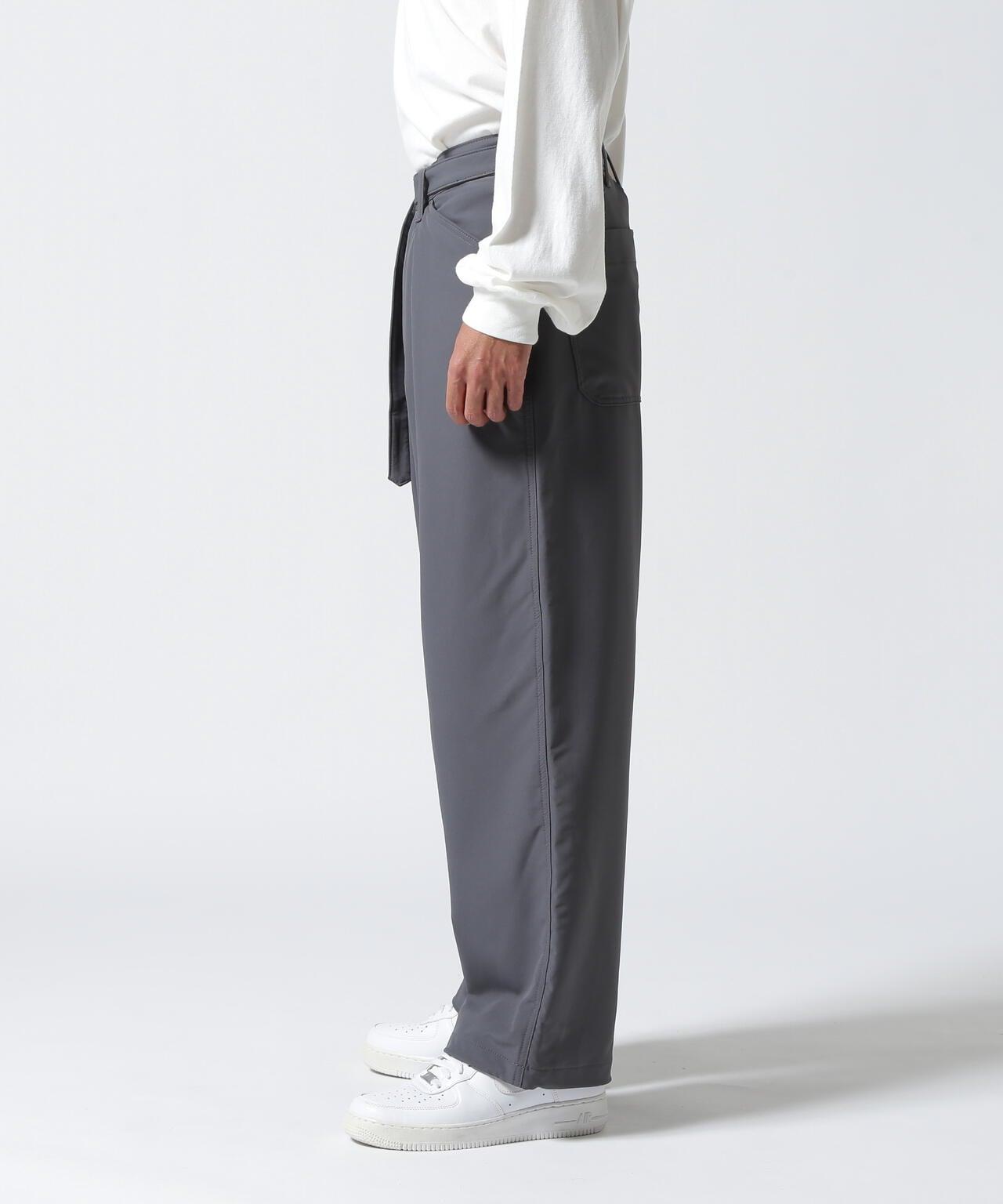 B omnivore STRETCH POLYESTER BELT LOOSE PANTS 彈力滌綸腰帶寬鬆長褲 寬直筒款式,附有相同面料的腰帶。褲型優美,臀部適度整齊,大腿區域寬闊。下襬處有抽繩。B omnivore] [B omnivore] omnivore = 可與各種時尚風格混搭而不囿於雜食系的服裝。