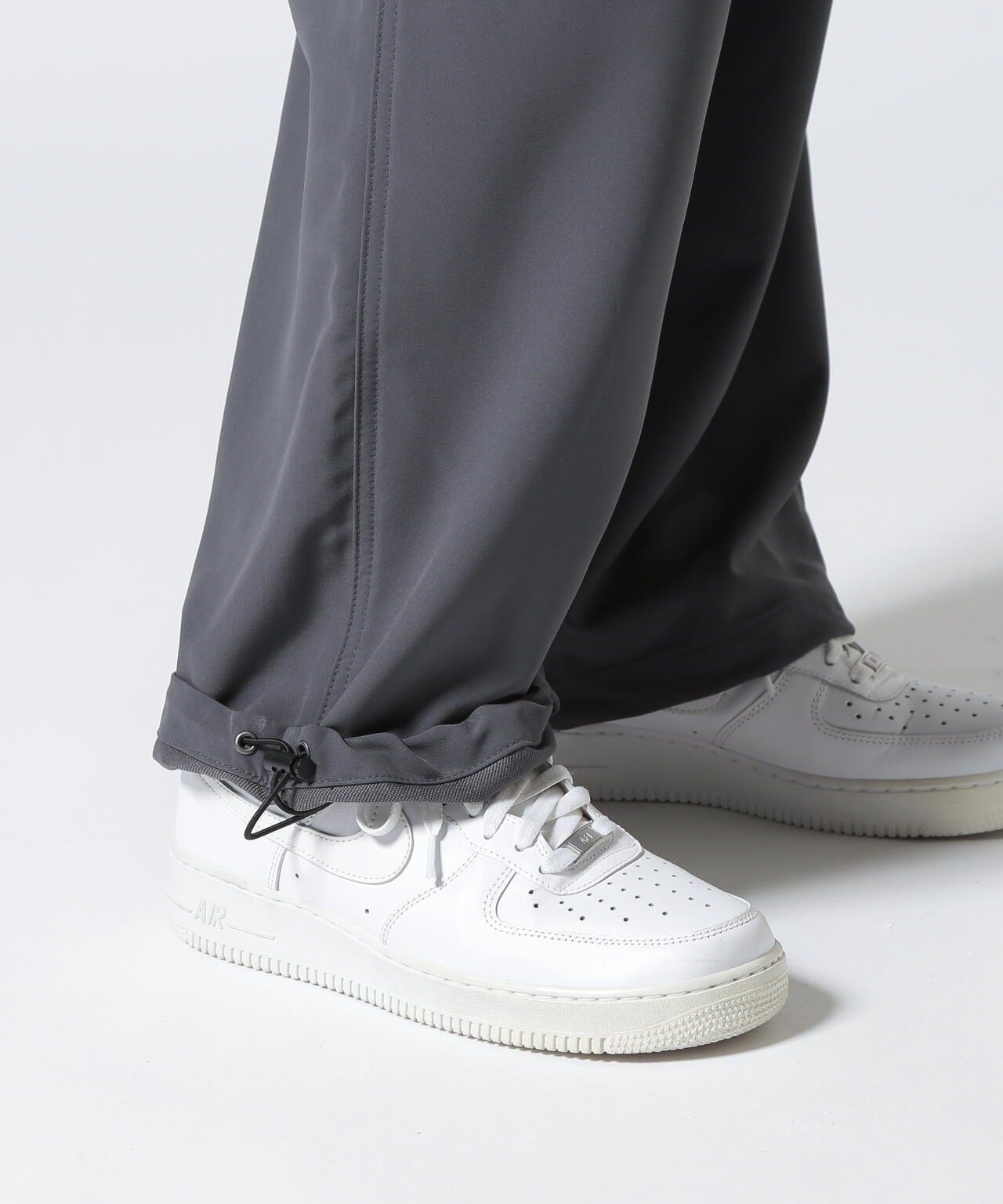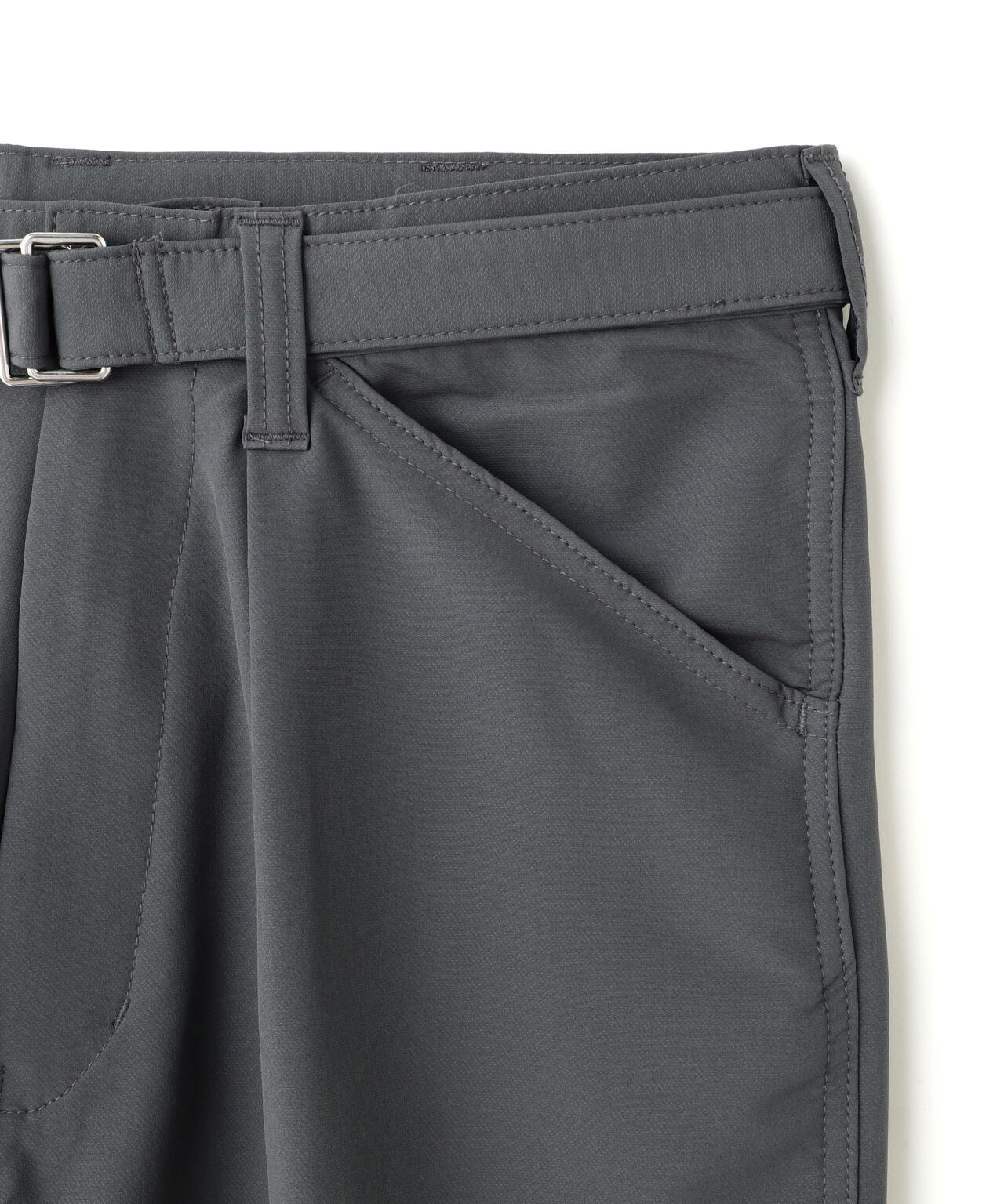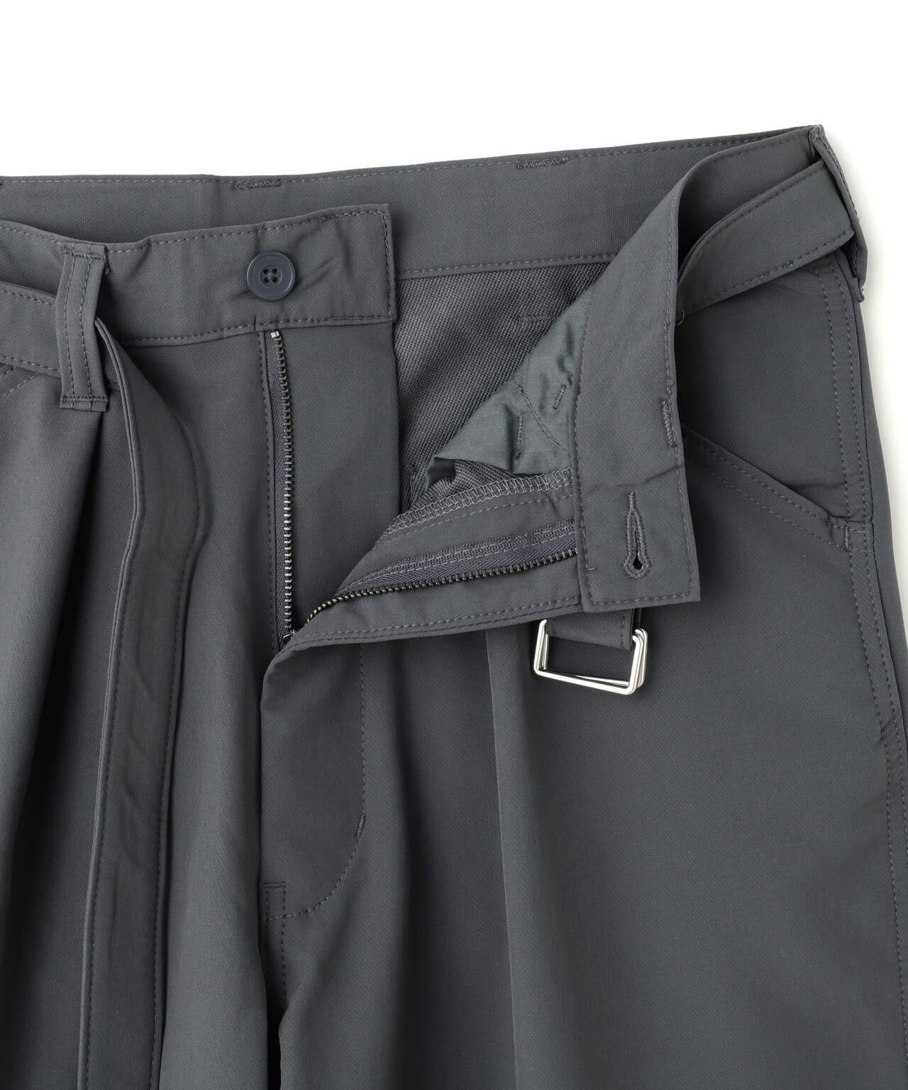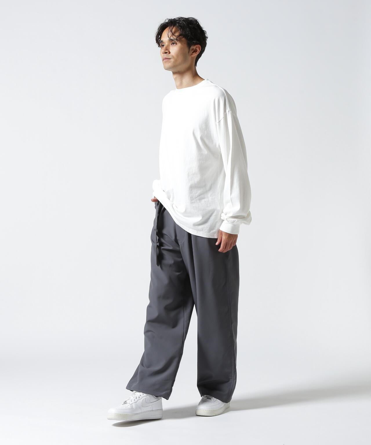 B omnivore STRETCH POLYESTER BELT LOOSE PANTS 彈力滌綸腰帶寬鬆長褲 寬直筒款式,附有相同面料的腰帶。褲型優美,臀部適度整齊,大腿區域寬闊。下襬處有抽繩。B omnivore] [B omnivore] omnivore = 可與各種時尚風格混搭而不囿於雜食系的服裝。