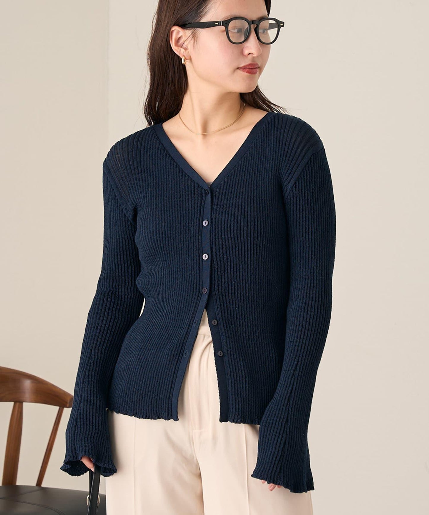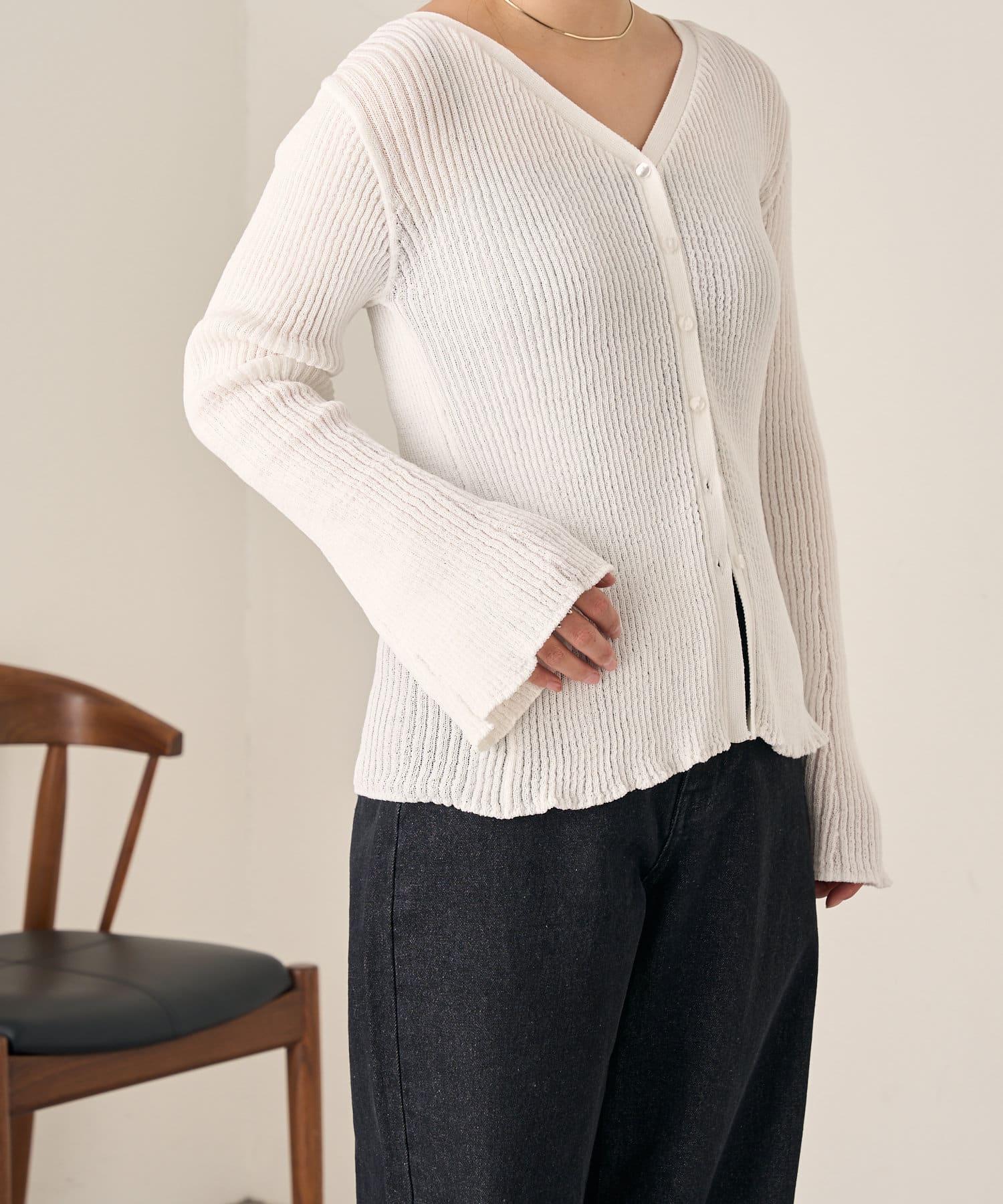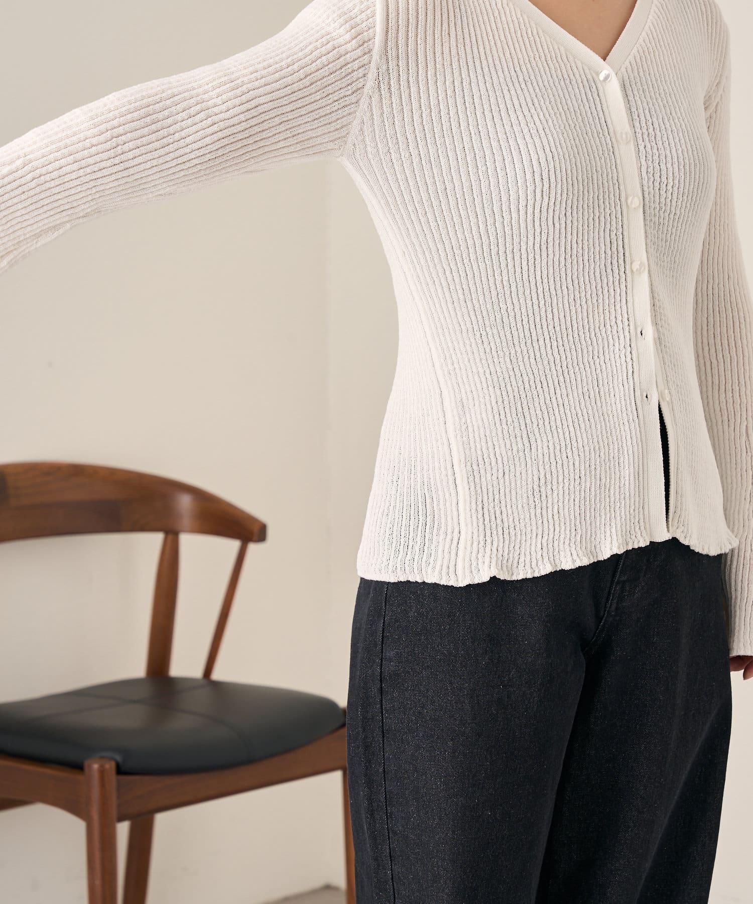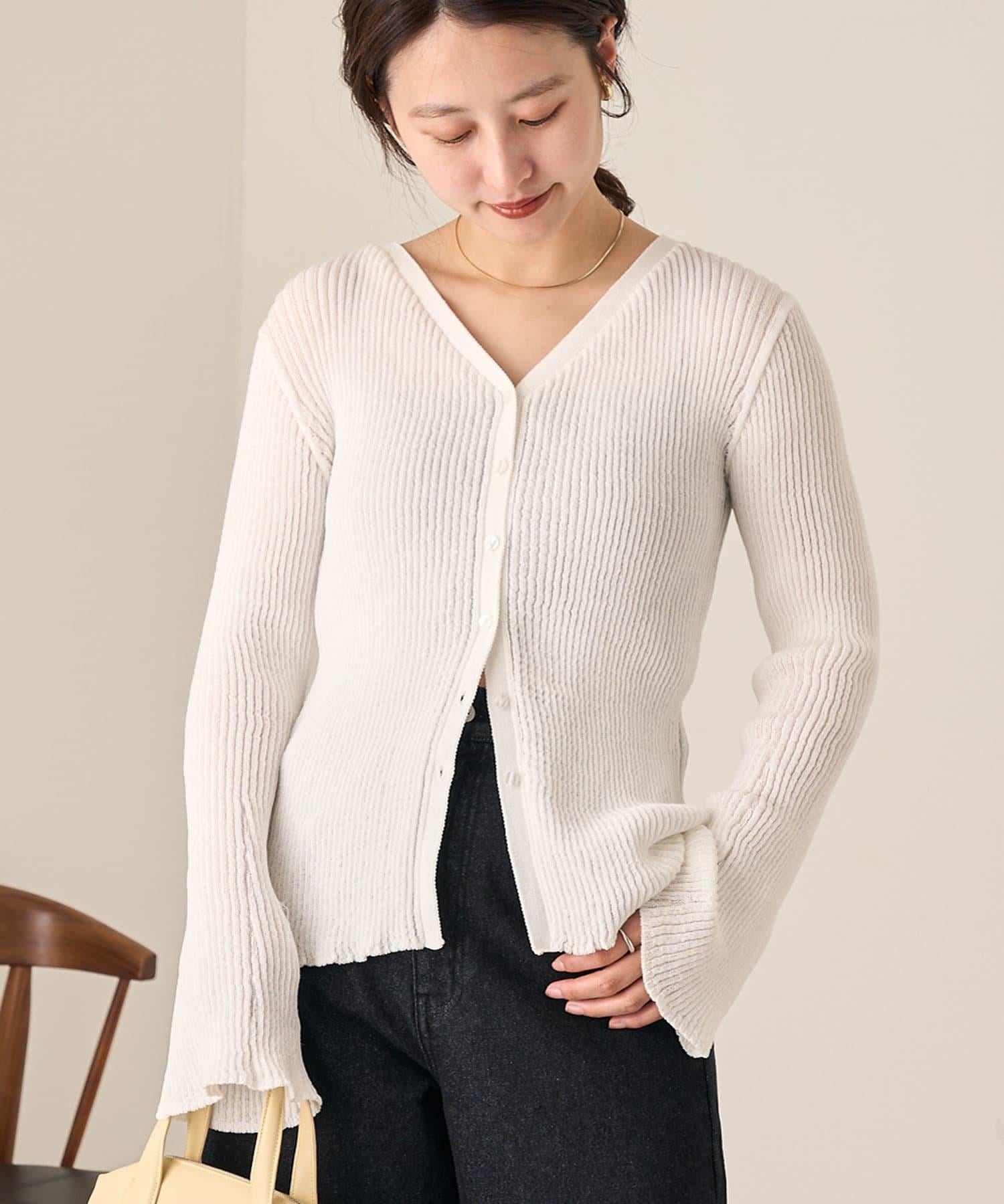 這款開襟羊毛衫具有恰到好處的透明感,適合即將到來的季節。