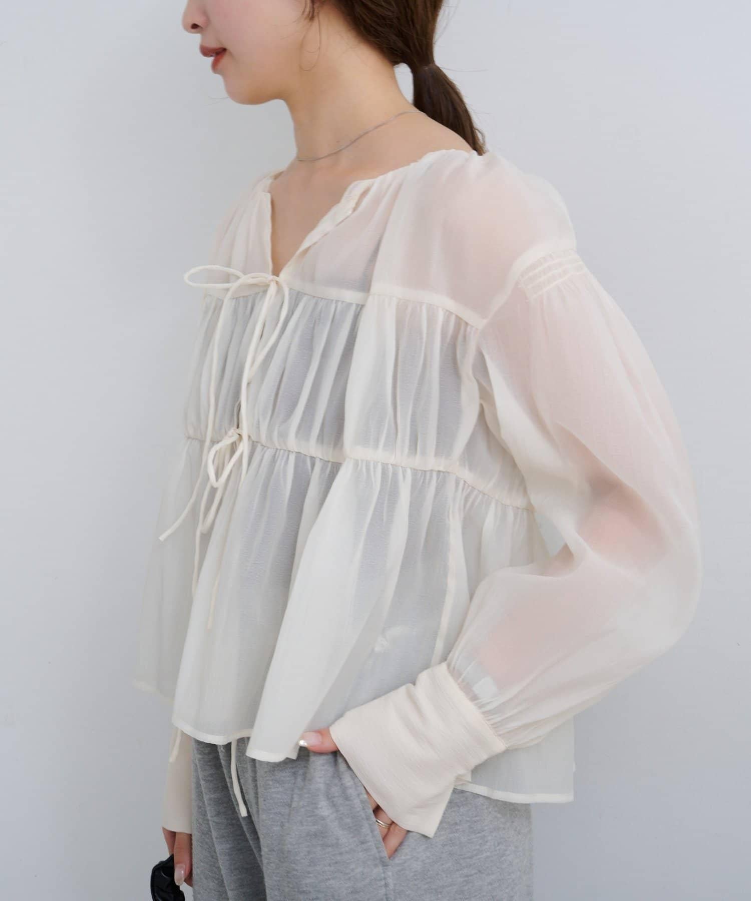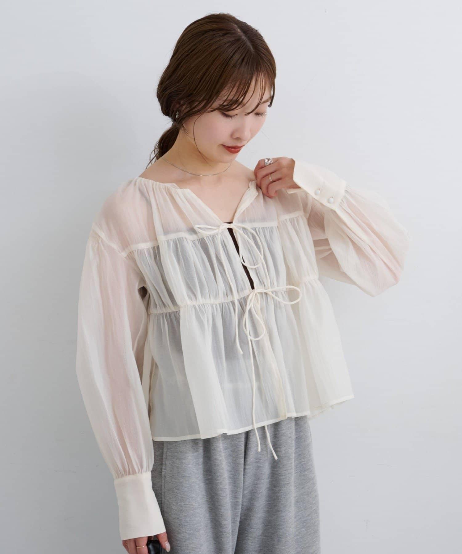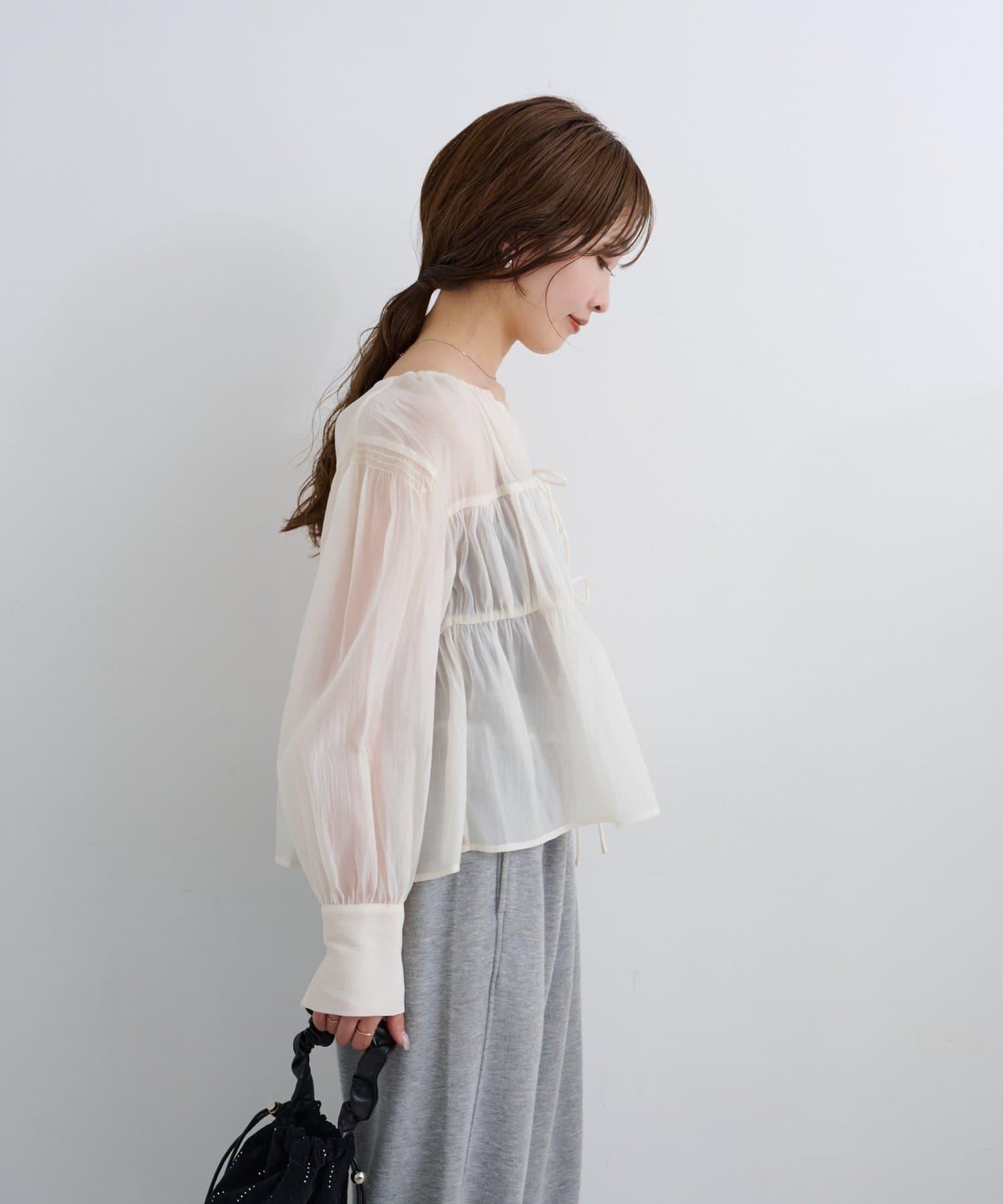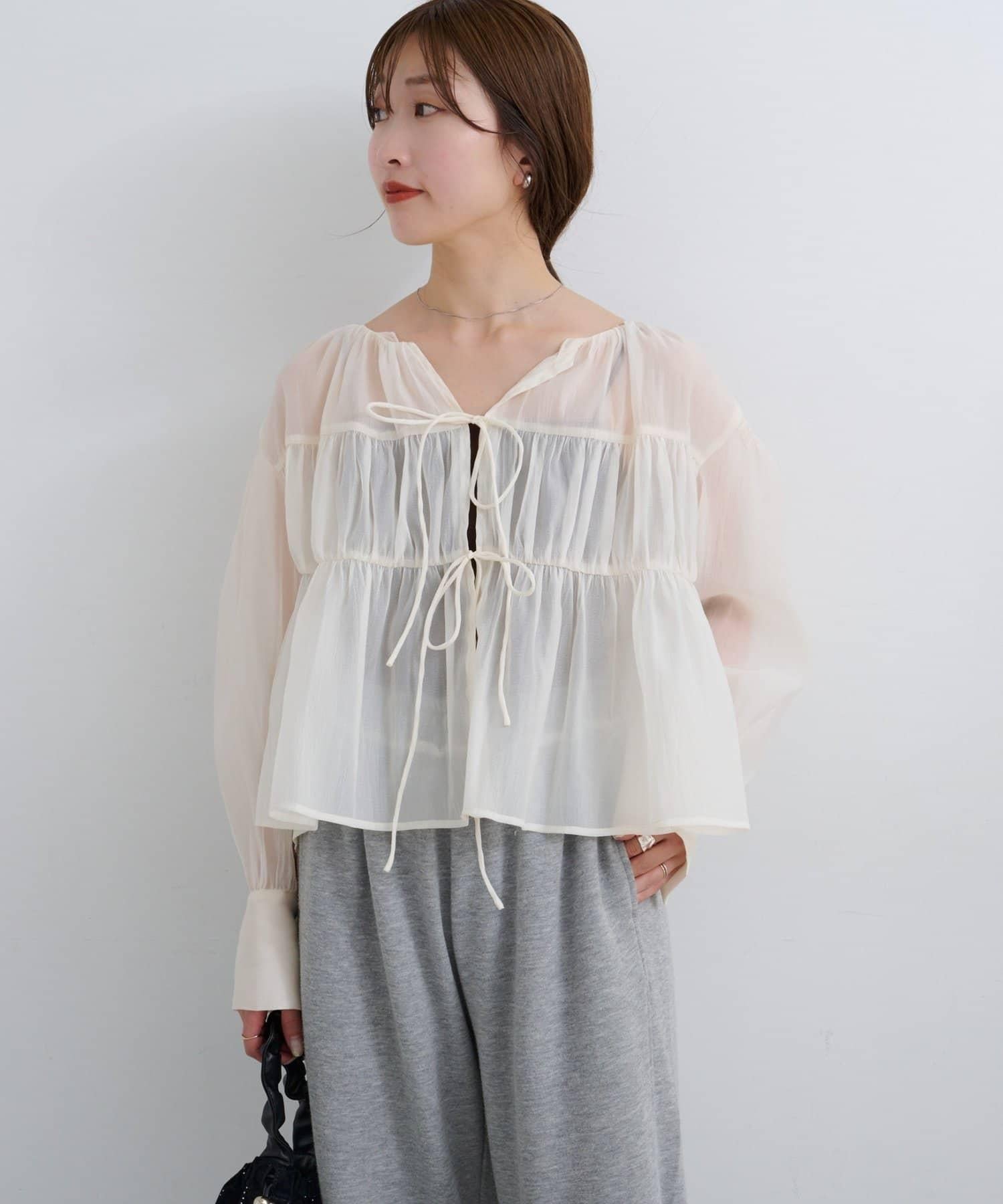 前襟的絲帶細節增強了女性的柔美感,輕盈的感覺讓人一穿上就能感受到季節的風格。