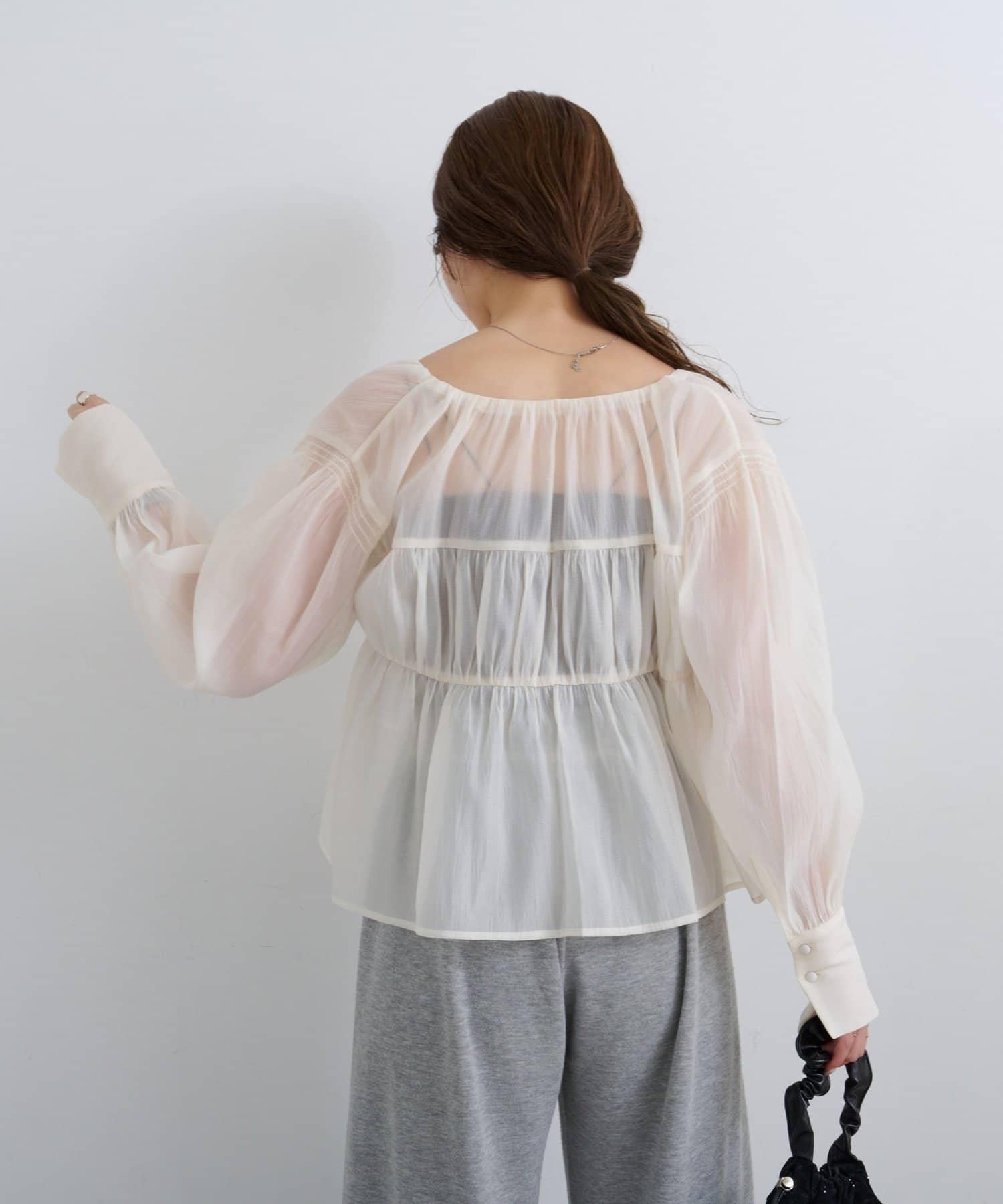 這款層疊式上衣有著柔軟的體積和精緻的薄紗材質。
