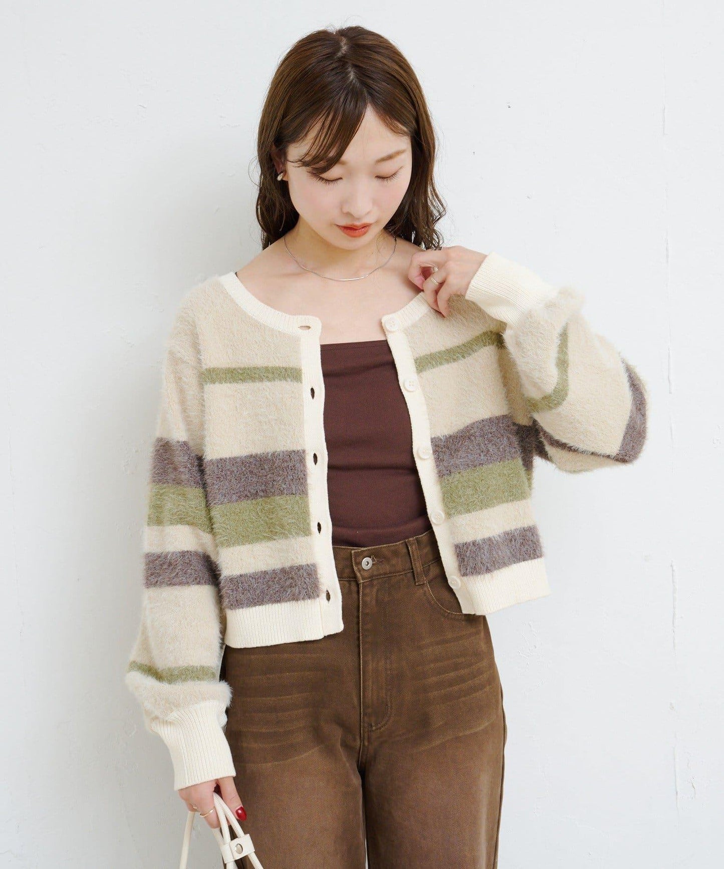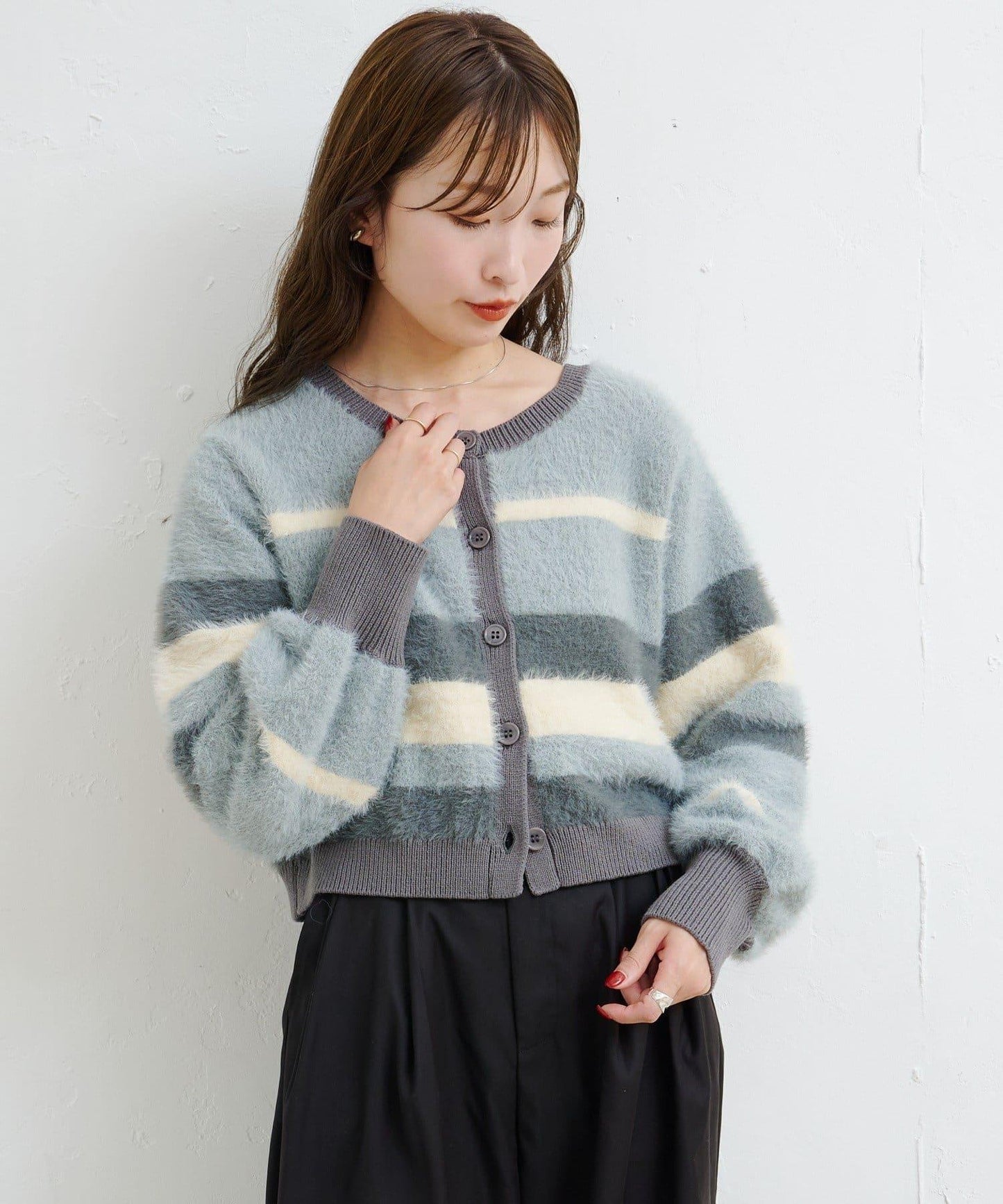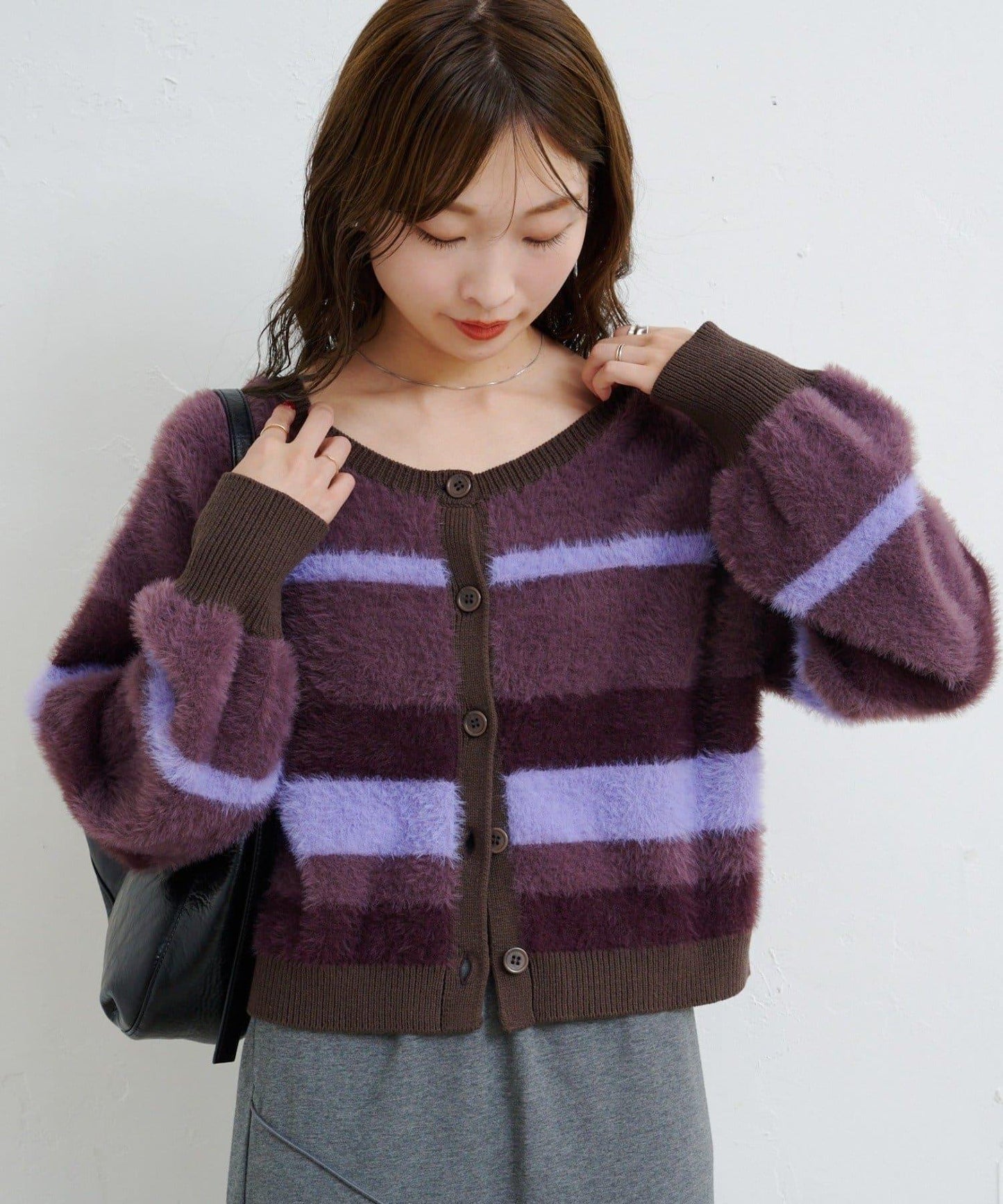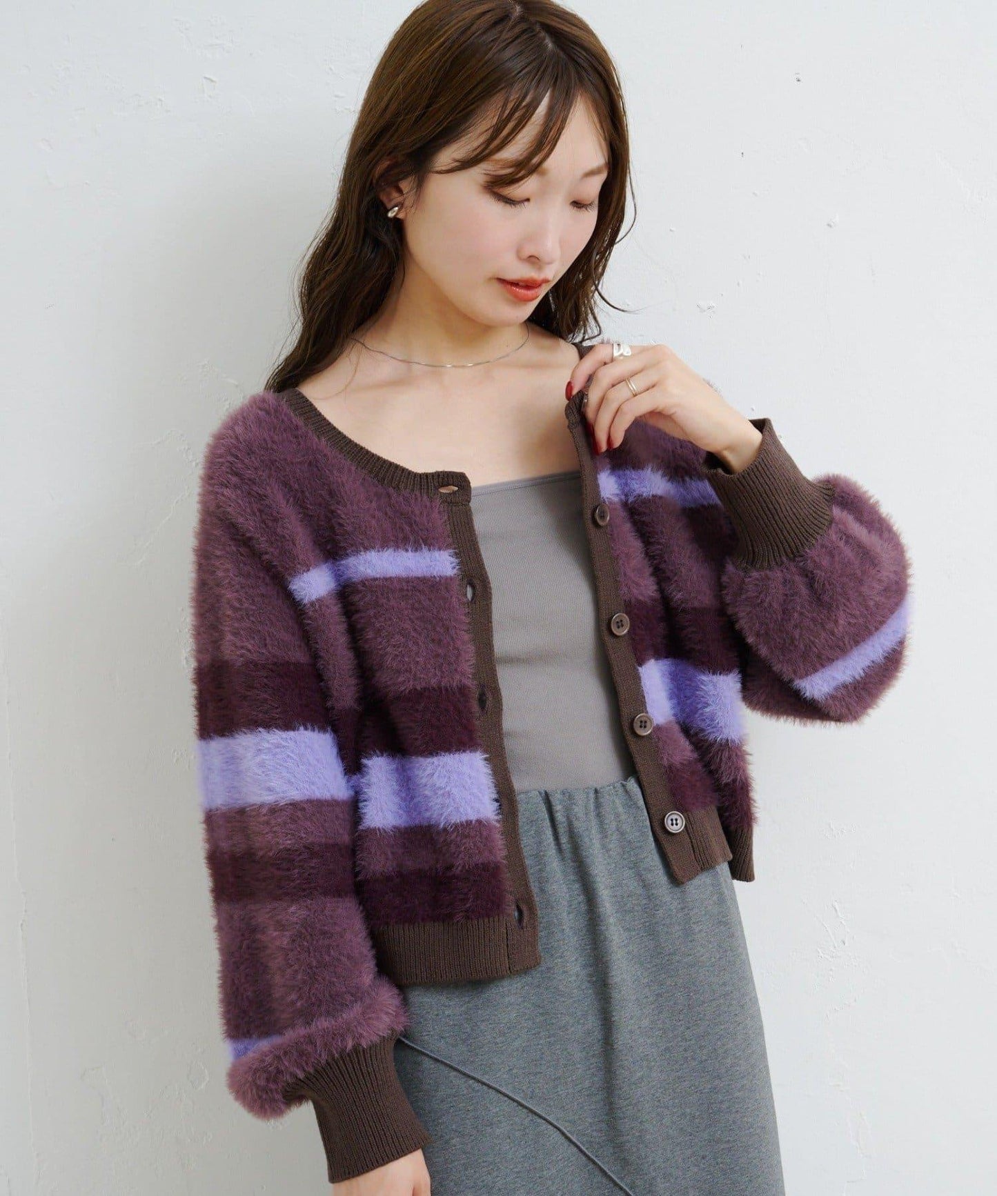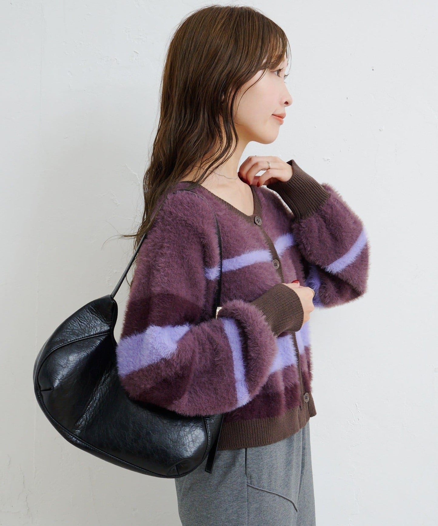 採用蓬鬆絨毛面料的雙向邊開衫。