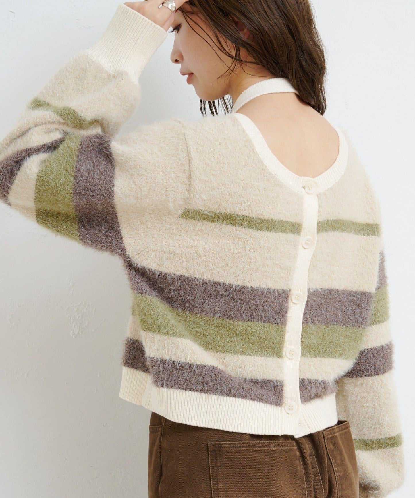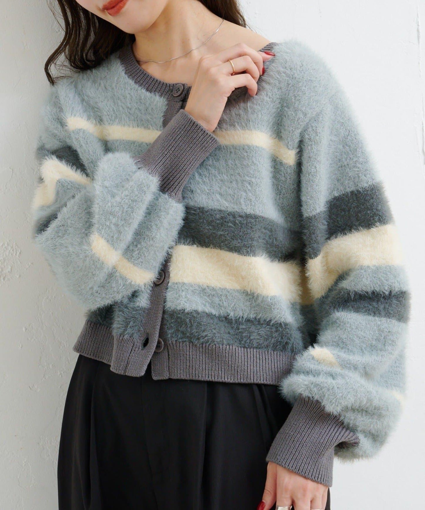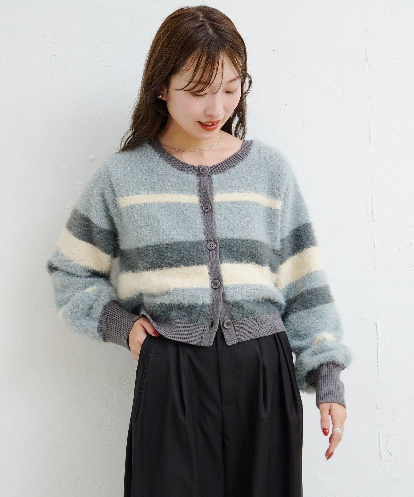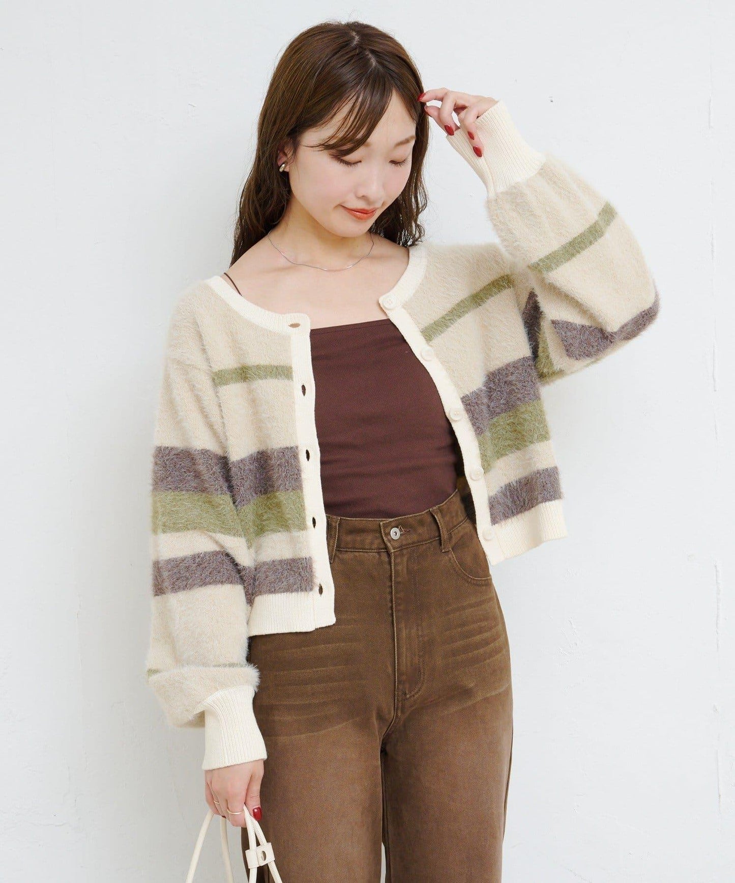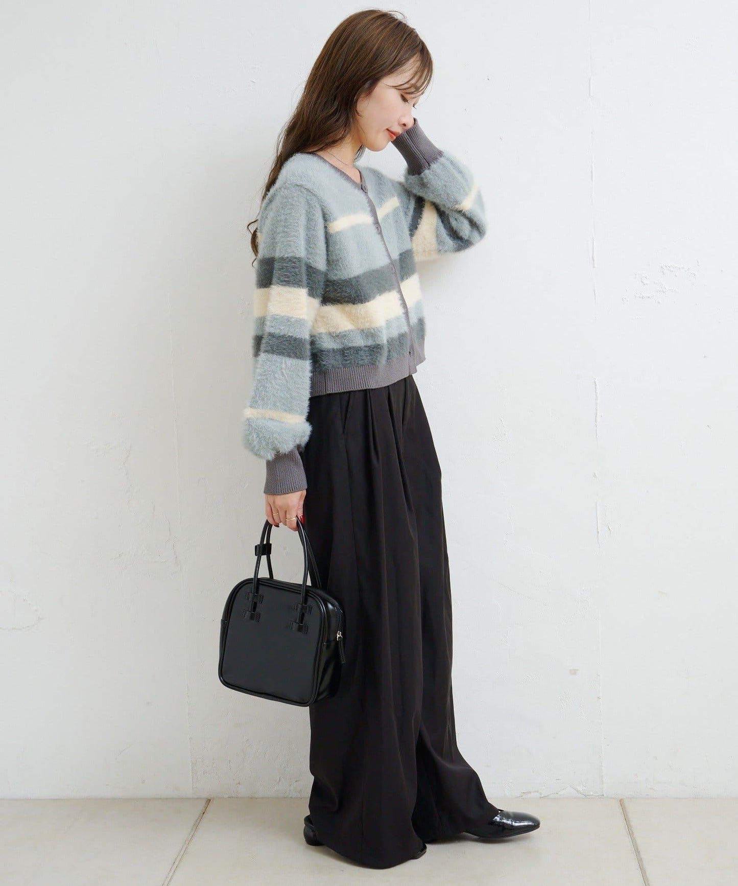採用蓬鬆絨毛面料的雙向邊開衫。
