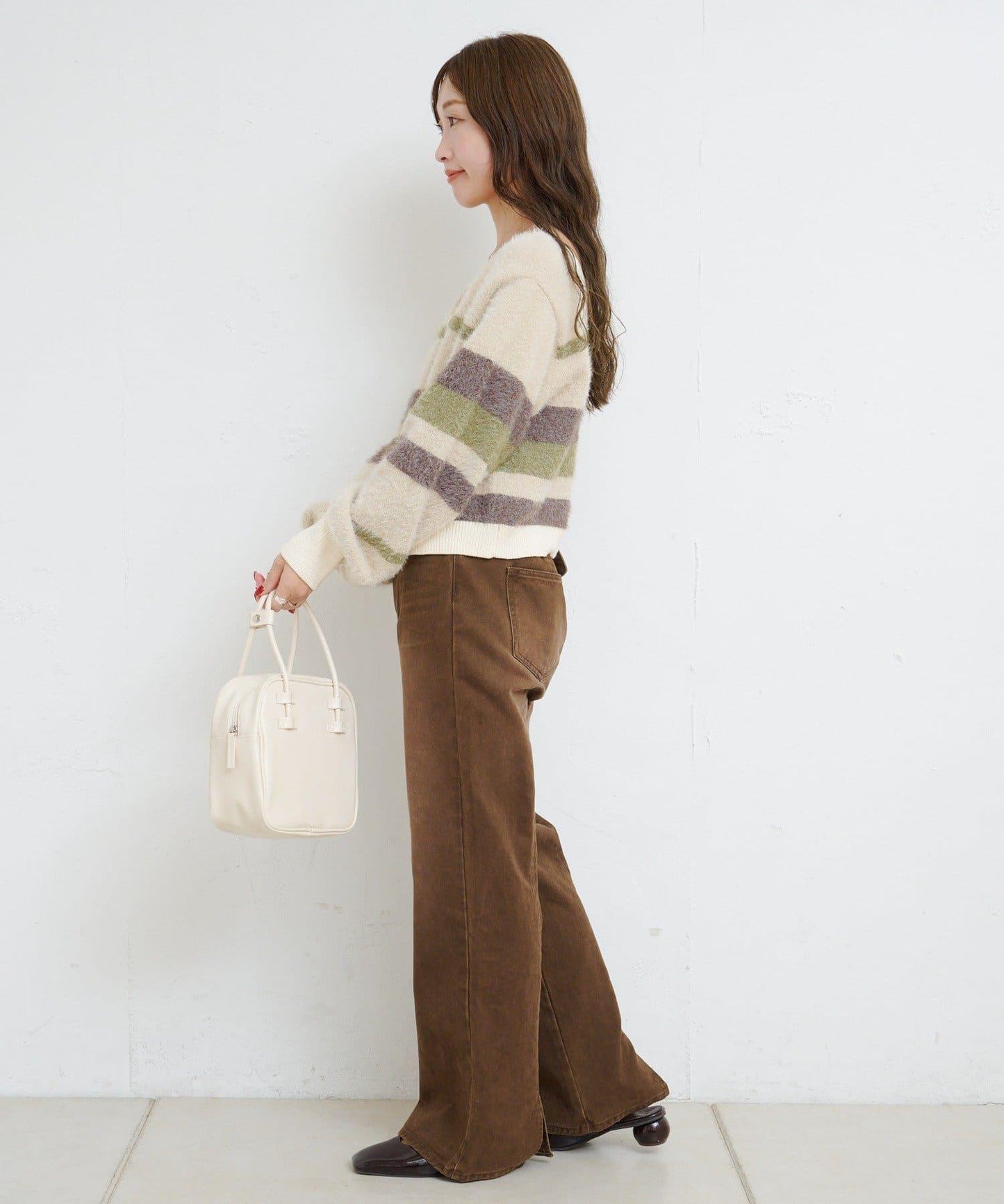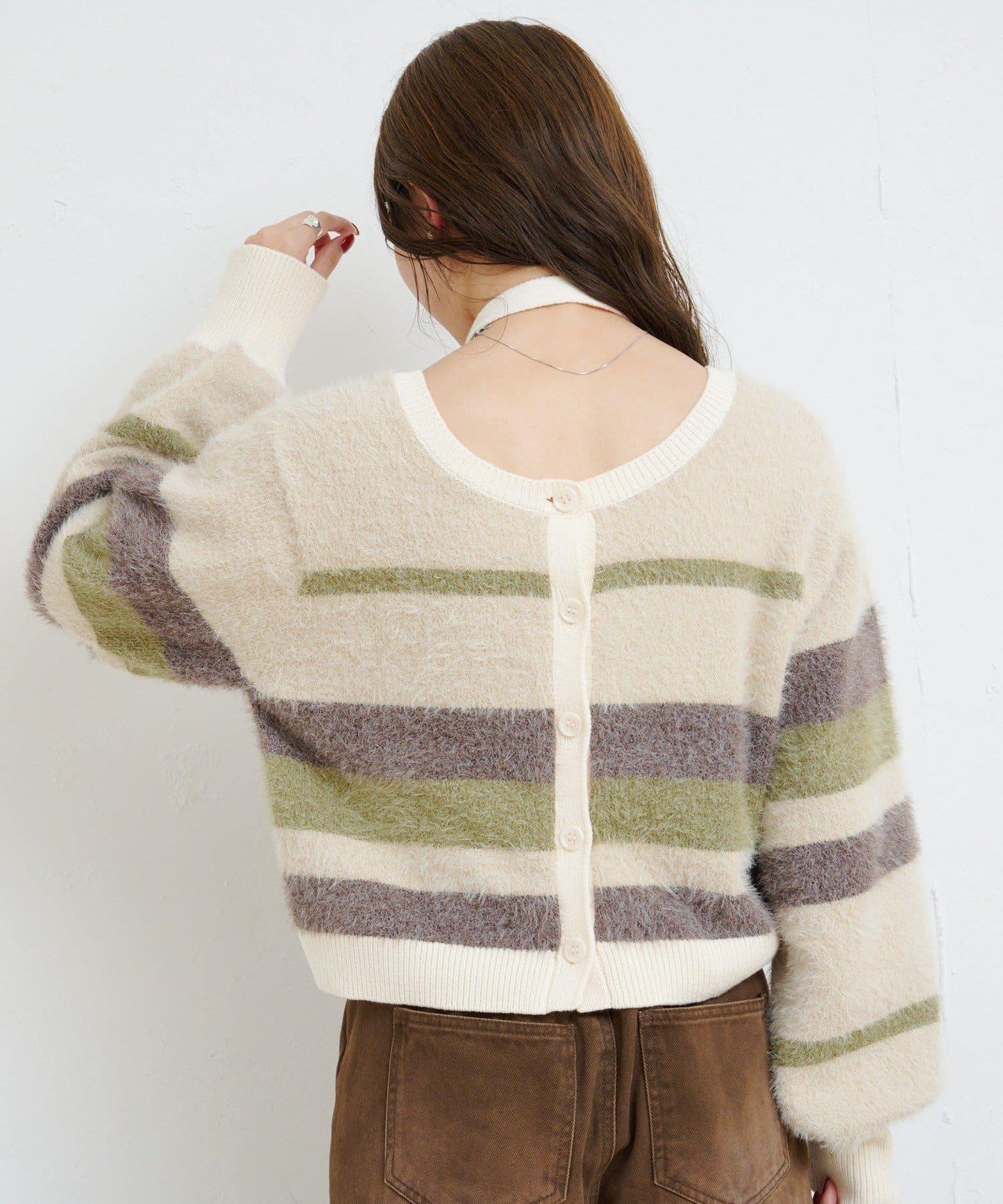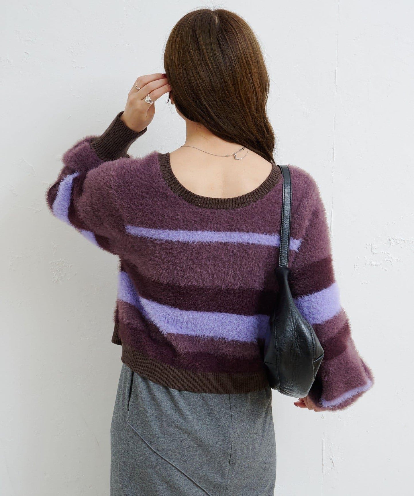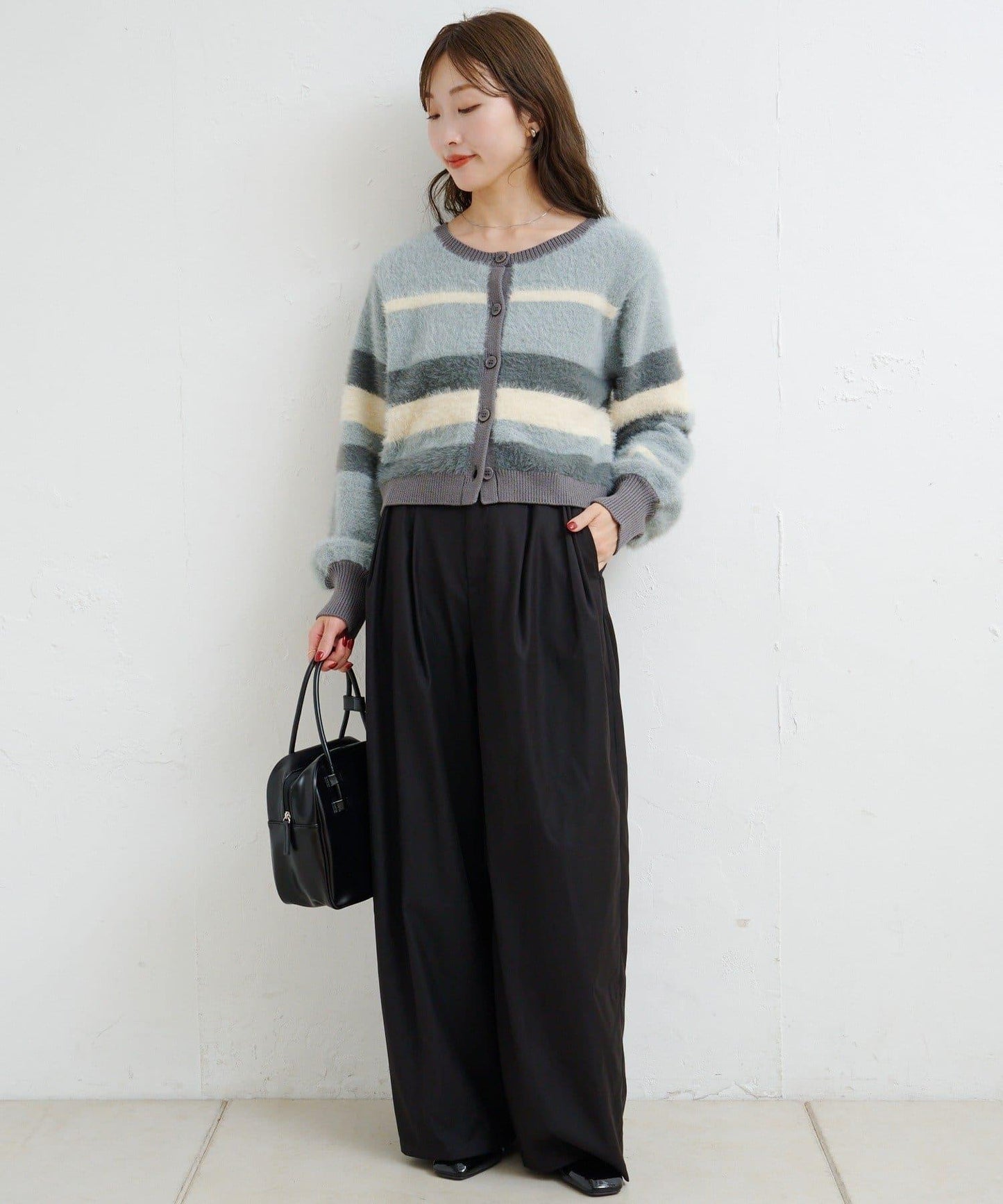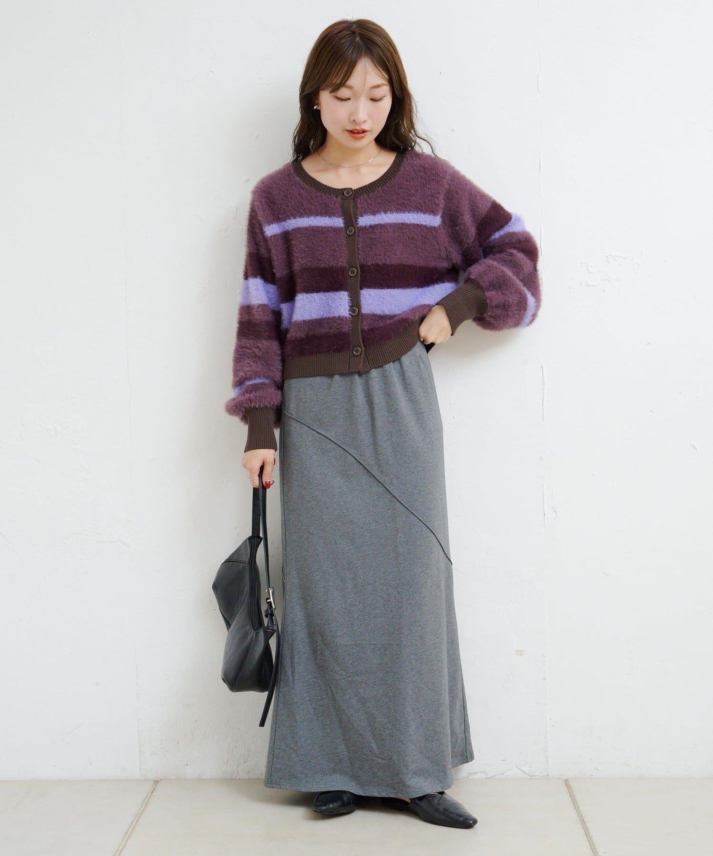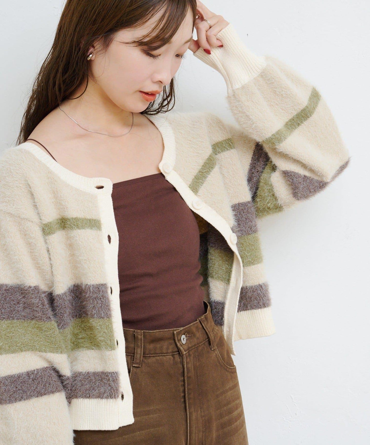 採用蓬鬆絨毛面料的雙向邊開衫。