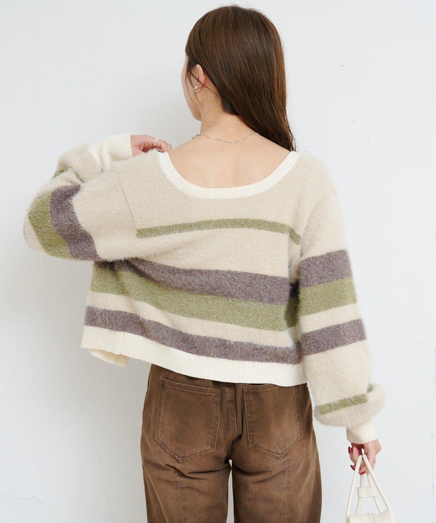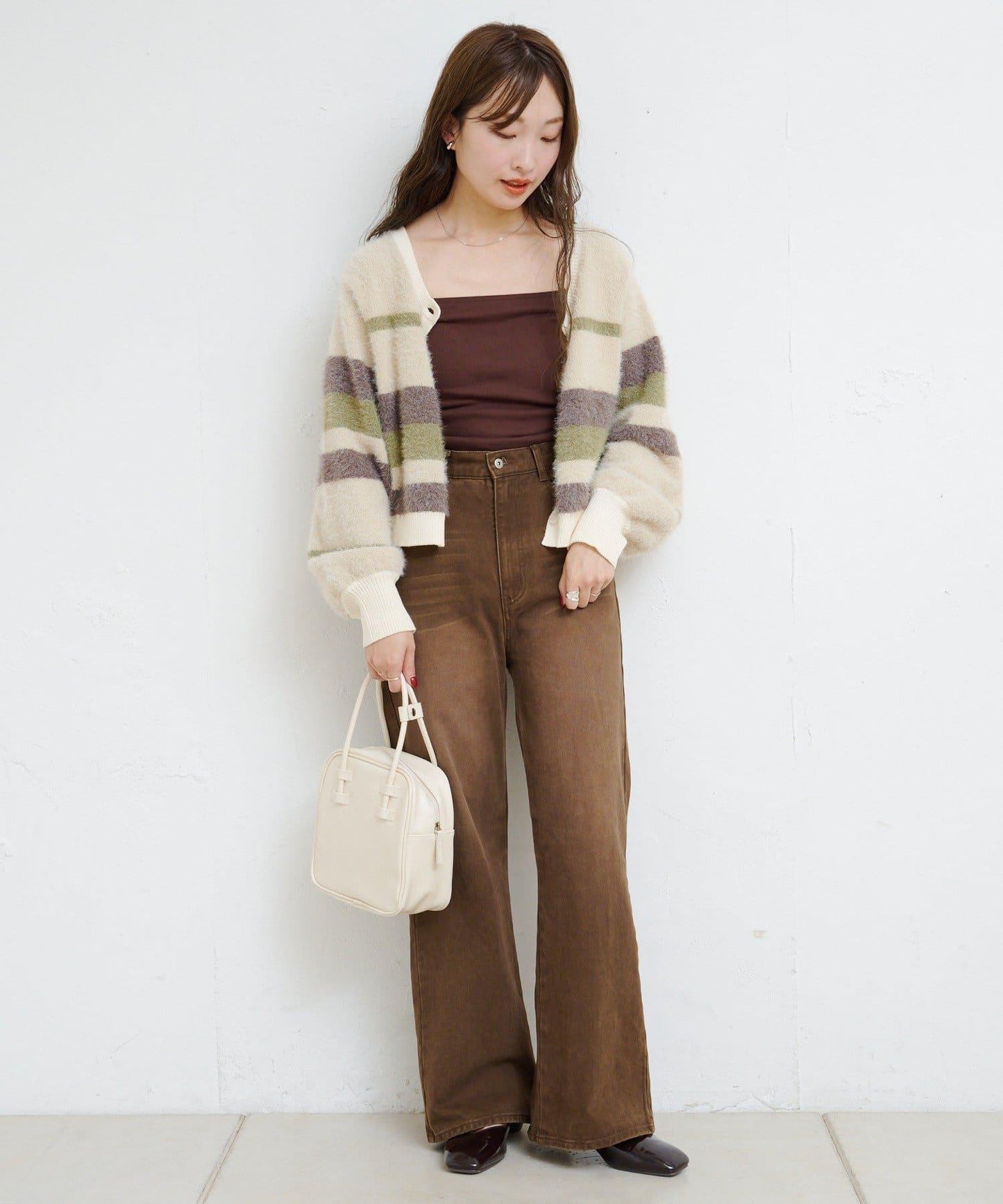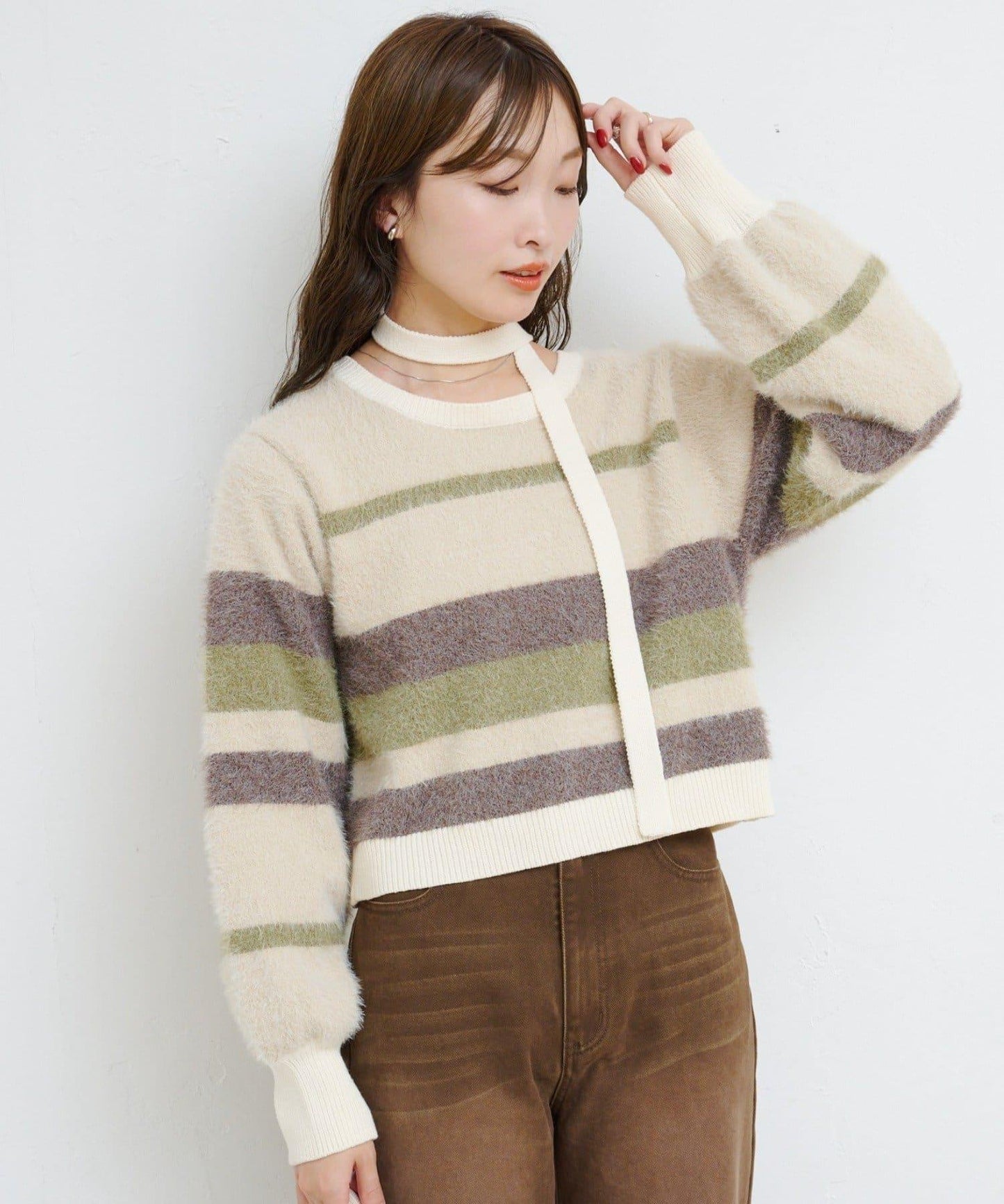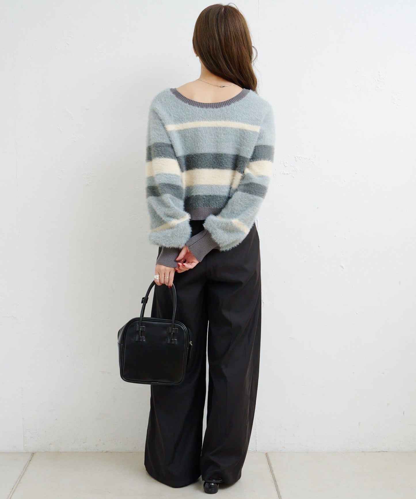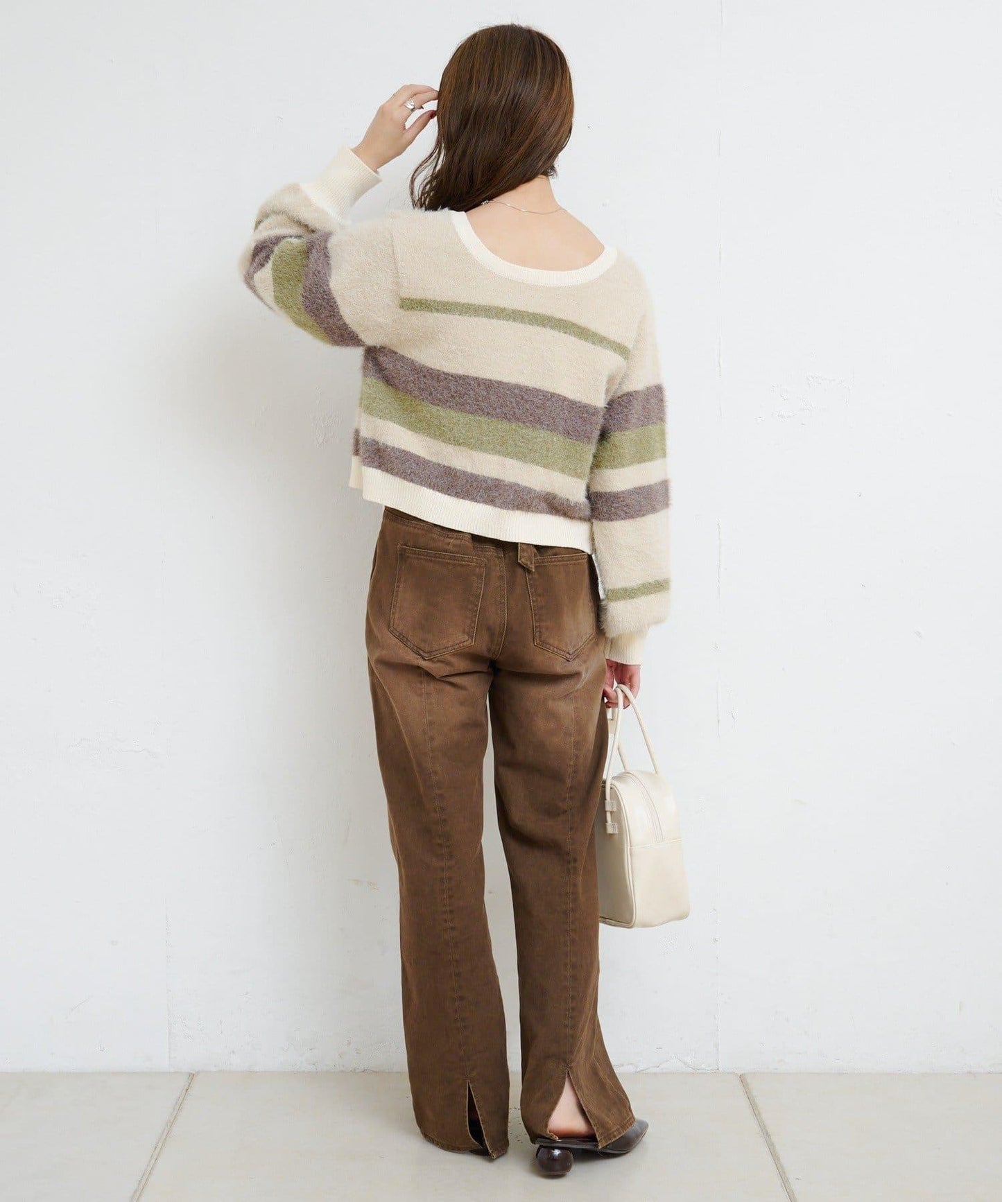 採用蓬鬆絨毛面料的雙向邊開衫。