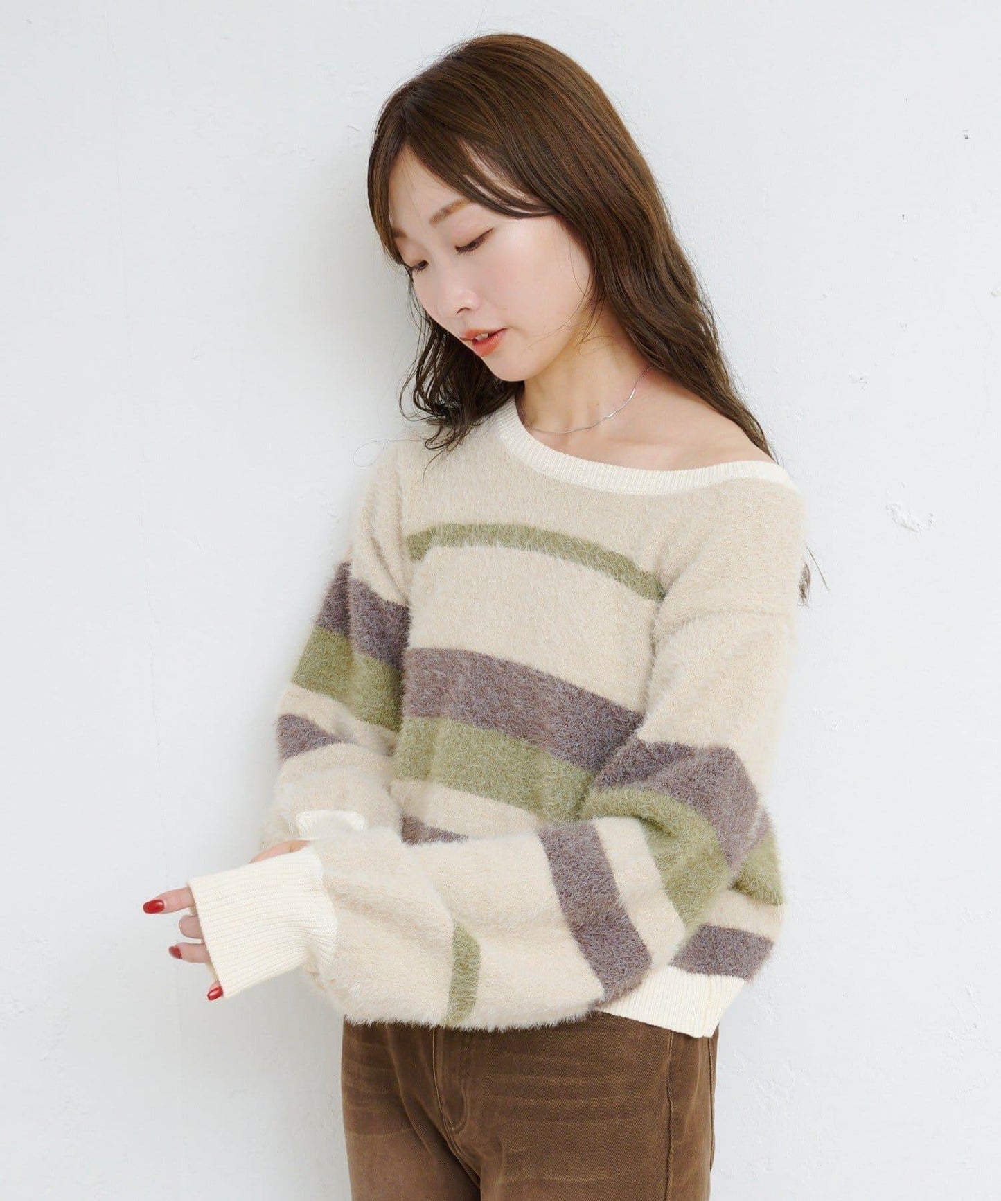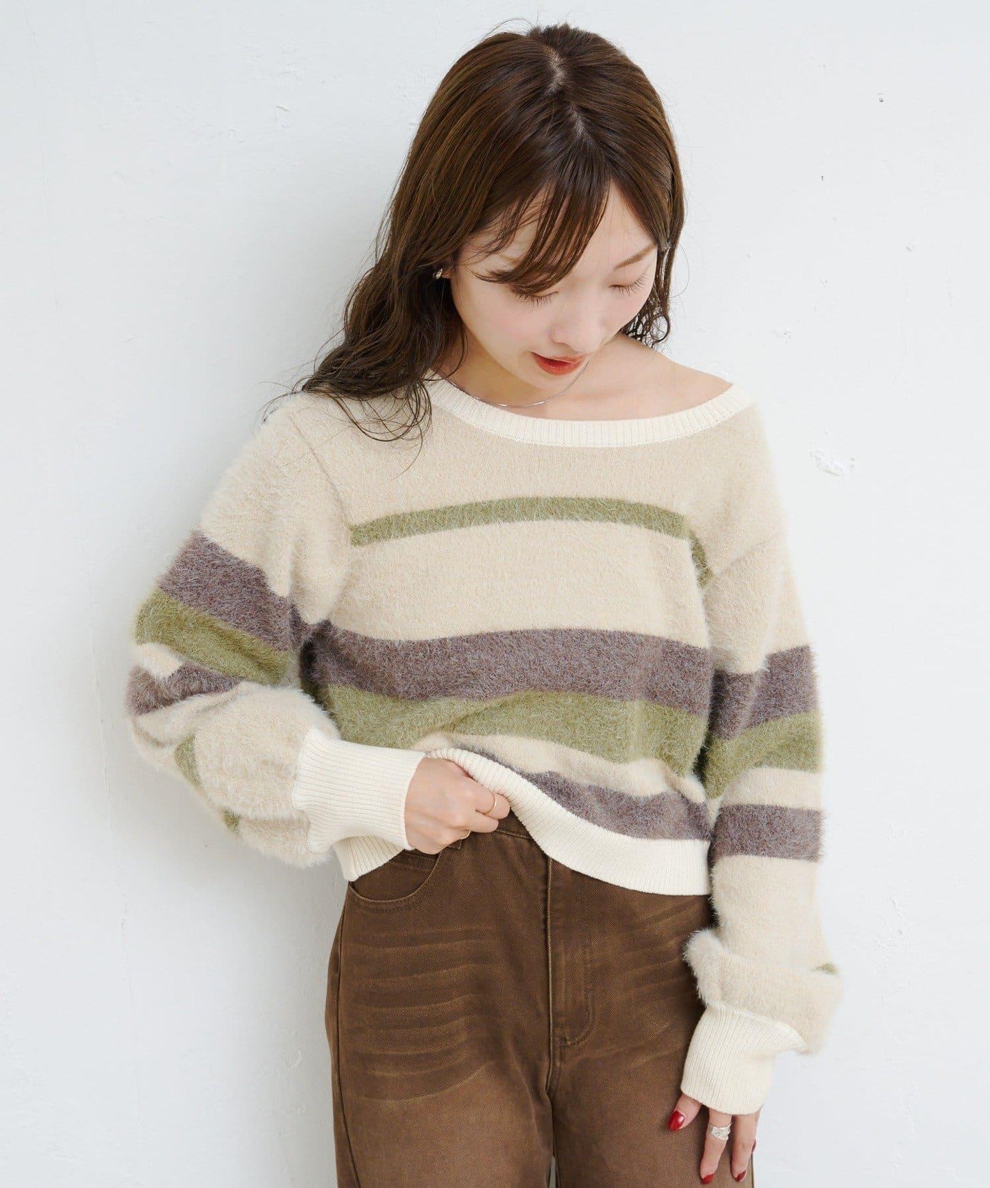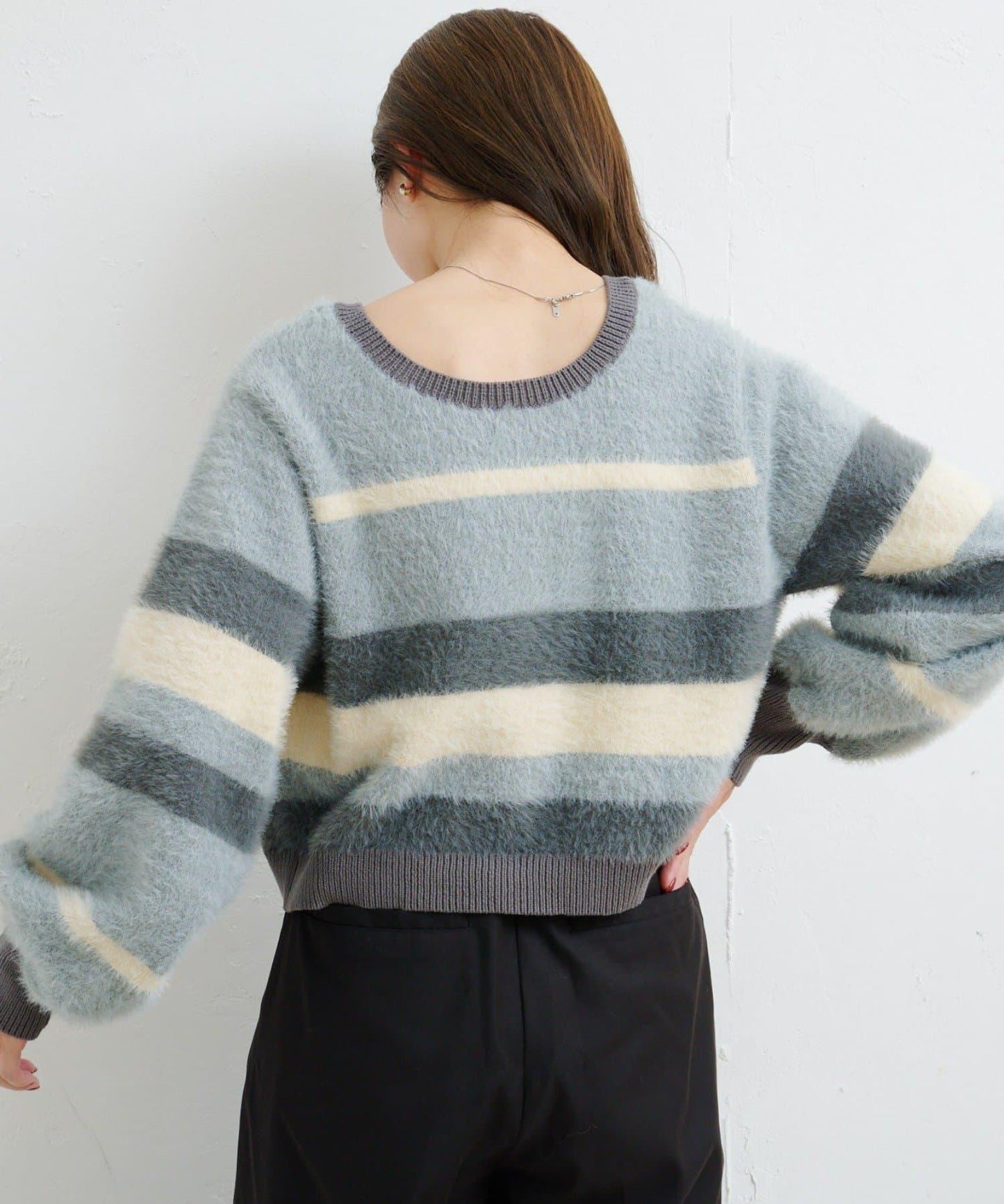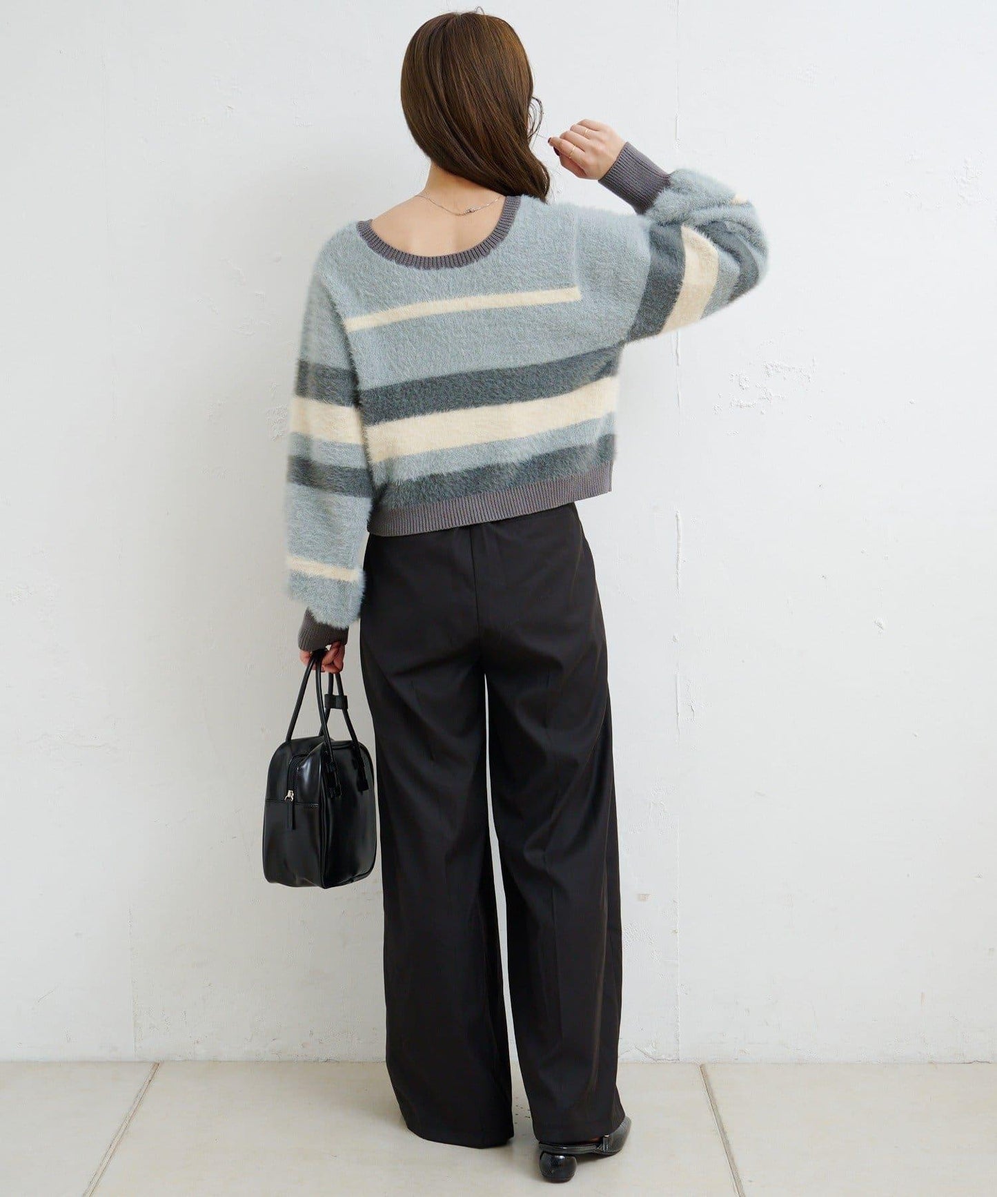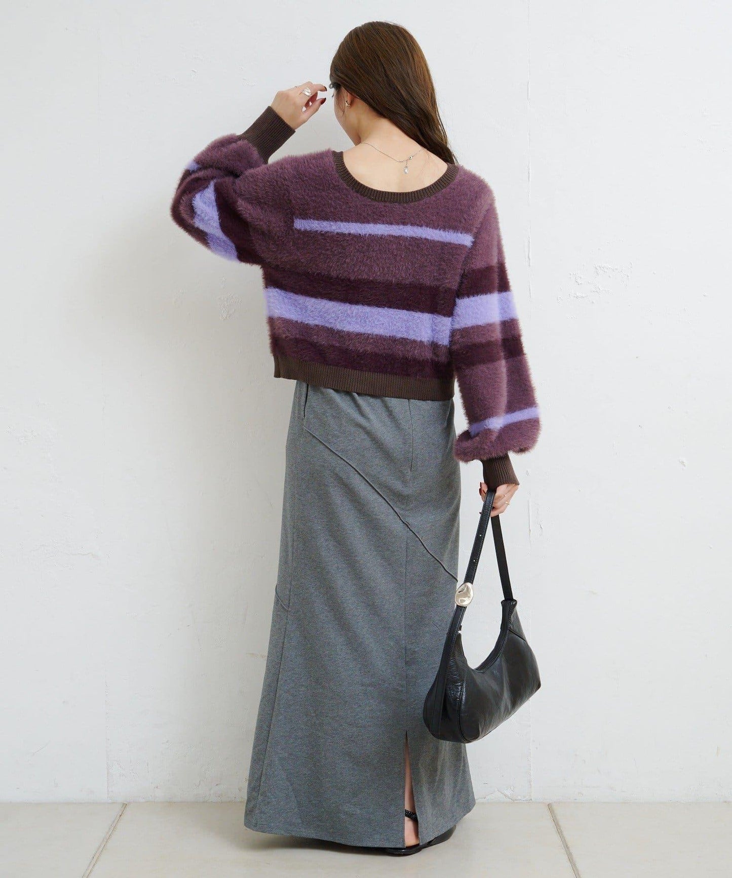 採用蓬鬆絨毛面料的雙向邊開衫。