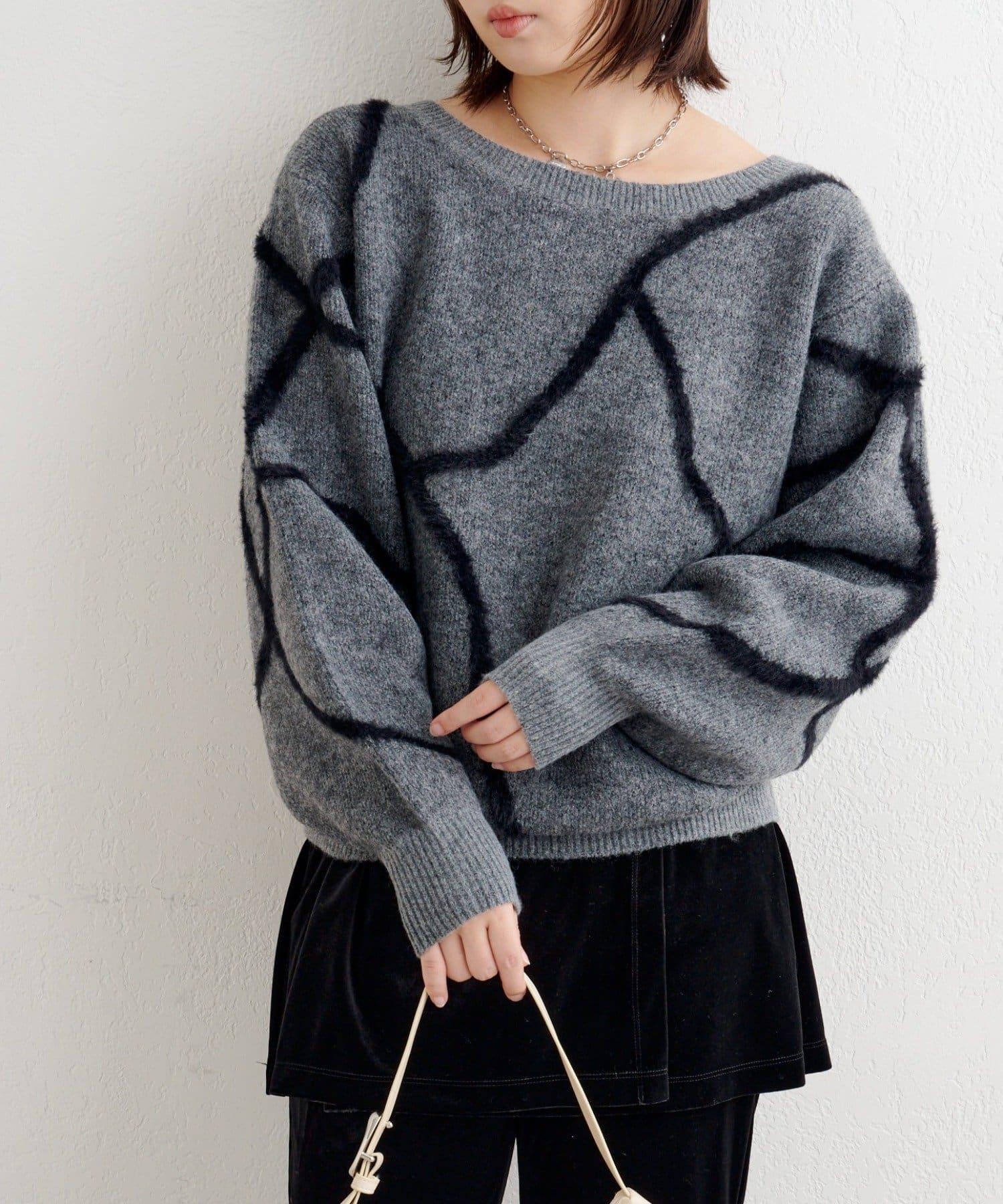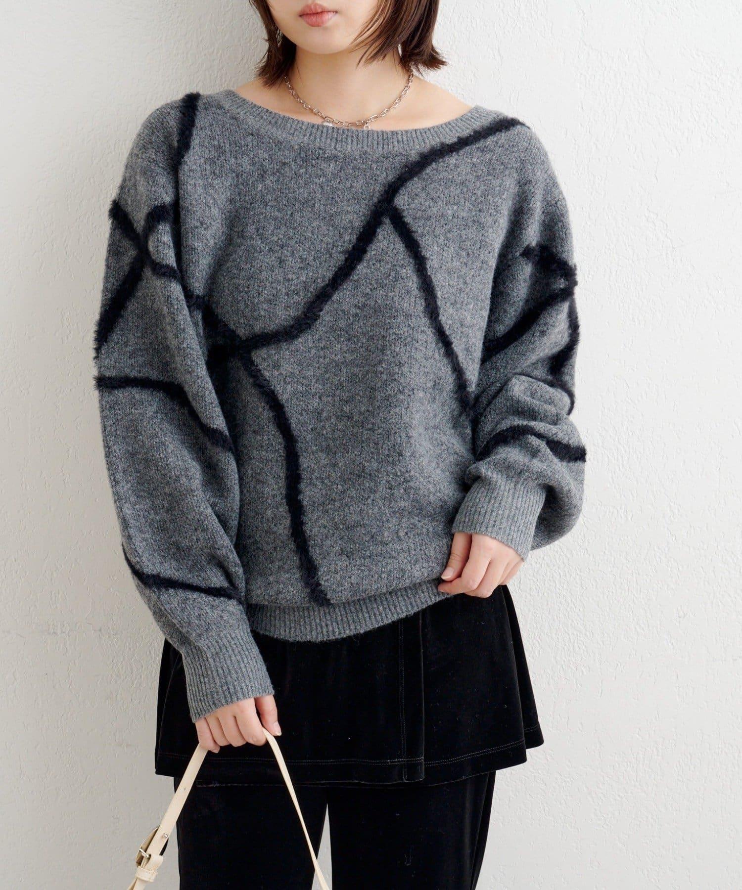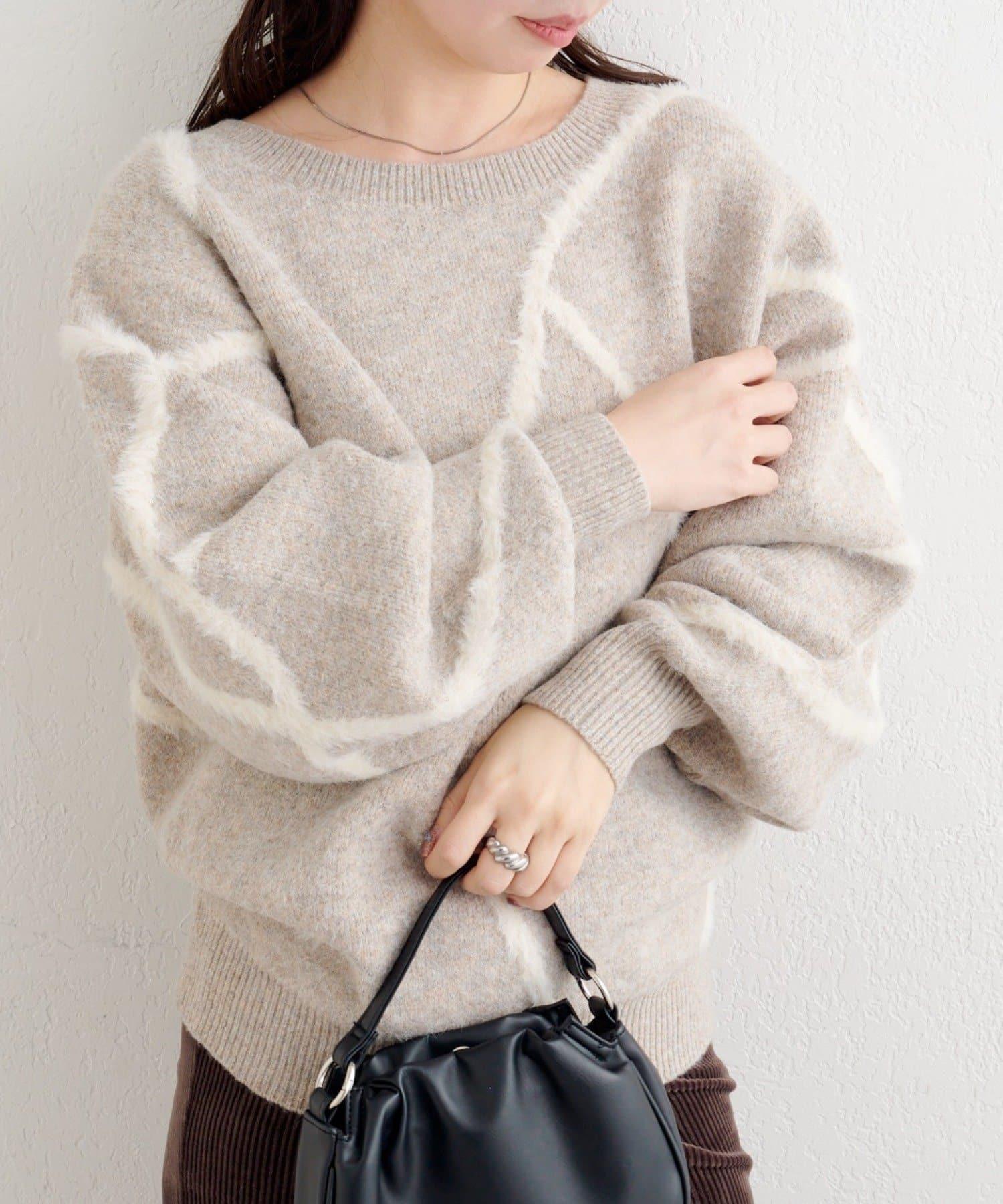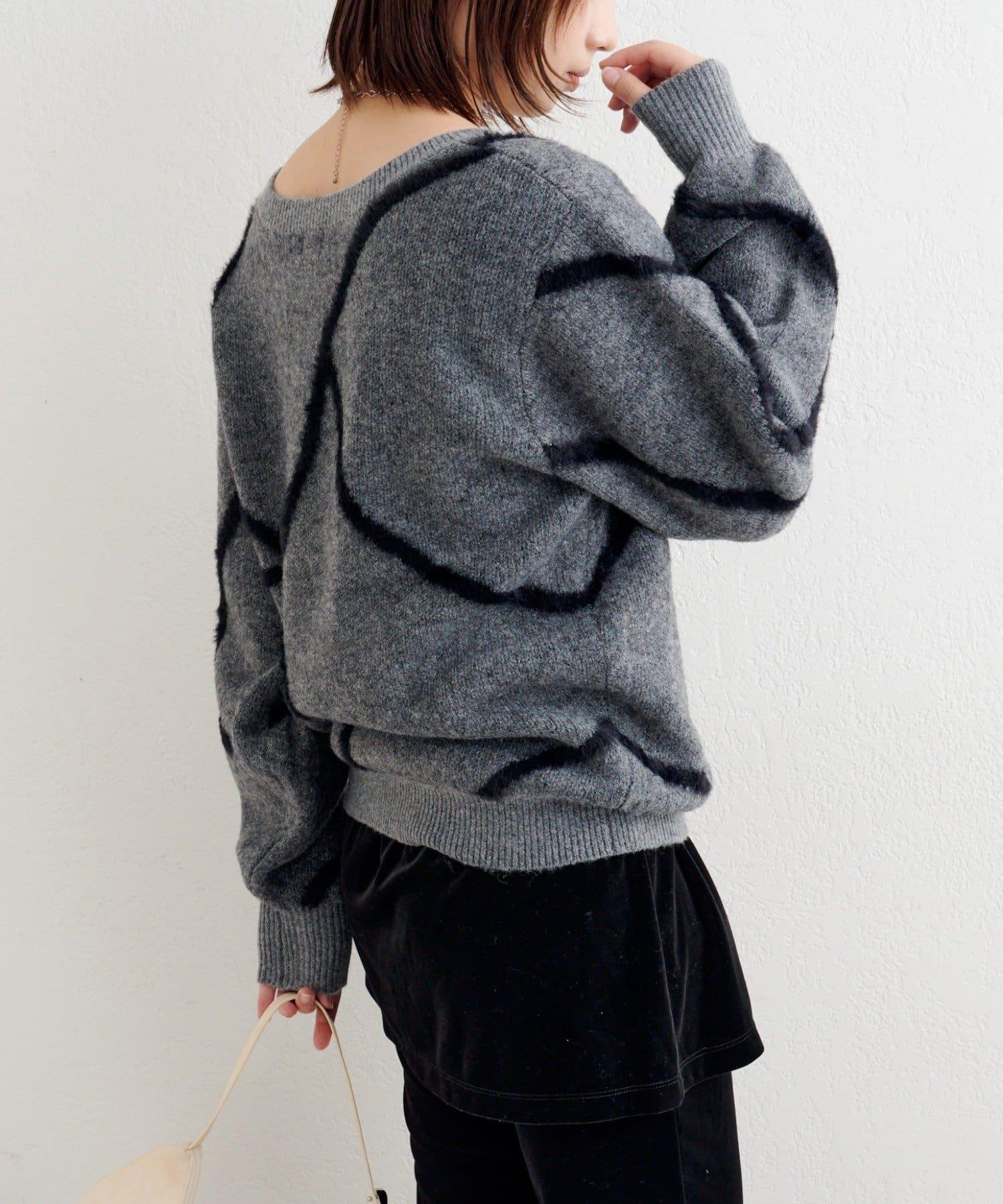 在粗糙的針織面料中加入了不同材質的絨毛線條,讓這款單品既有存在感,又不會過於簡單。
