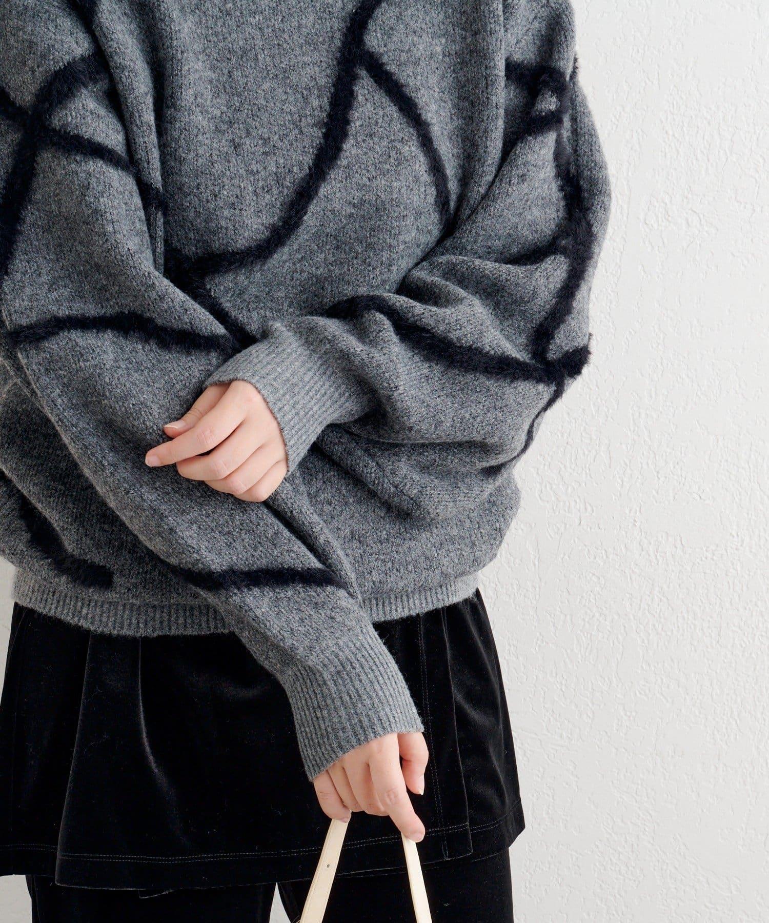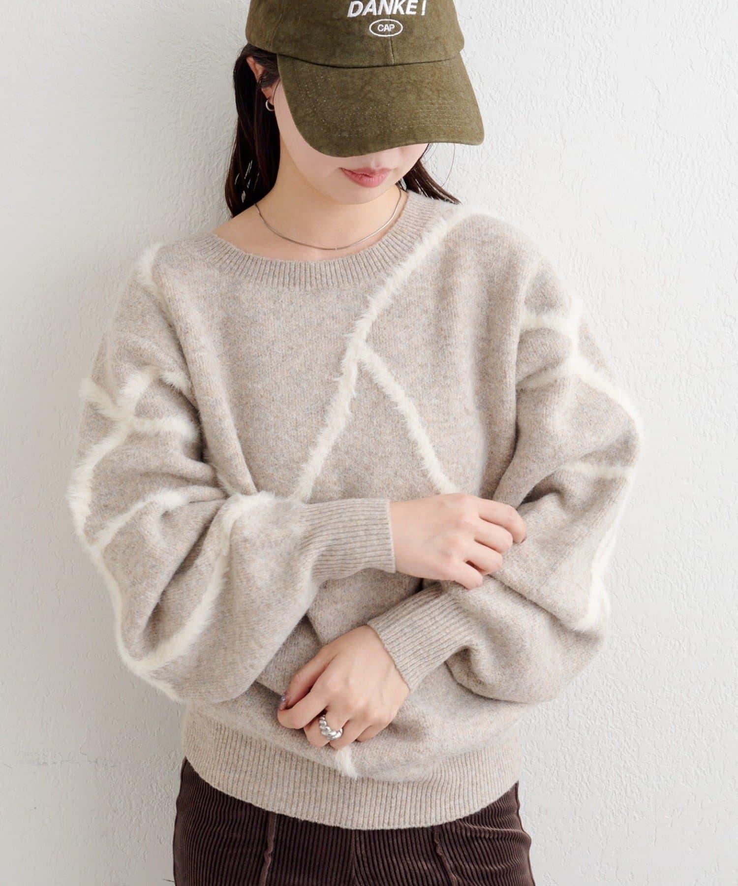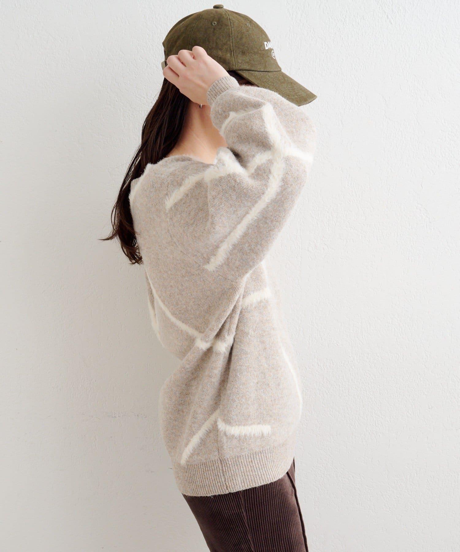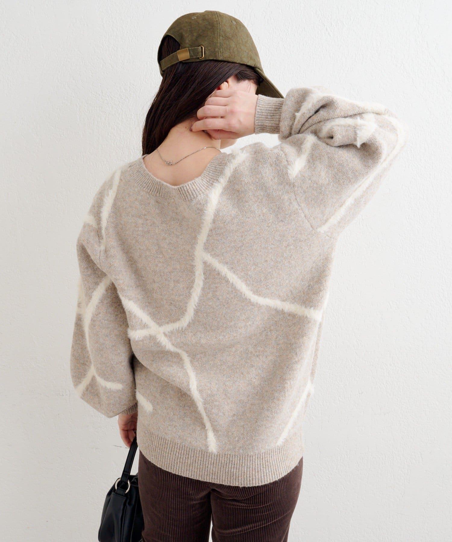 在粗糙的針織面料中加入了不同材質的絨毛線條,讓這款單品既有存在感,又不會過於簡單。