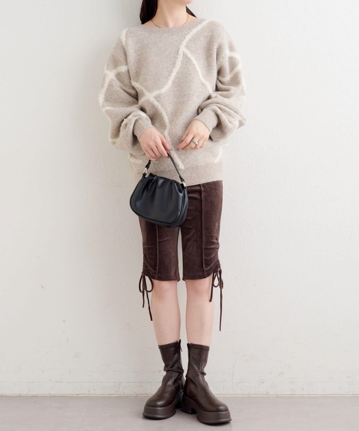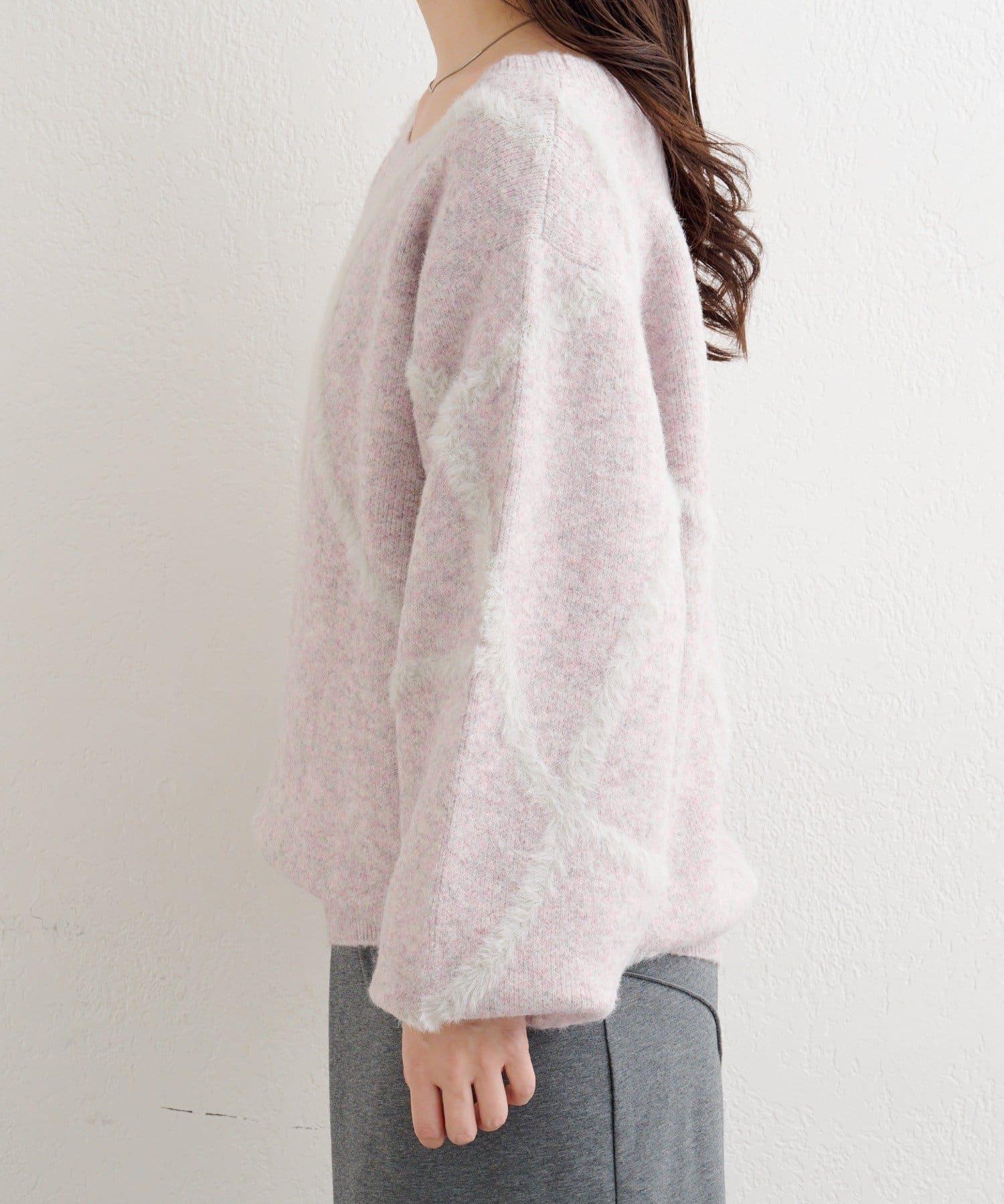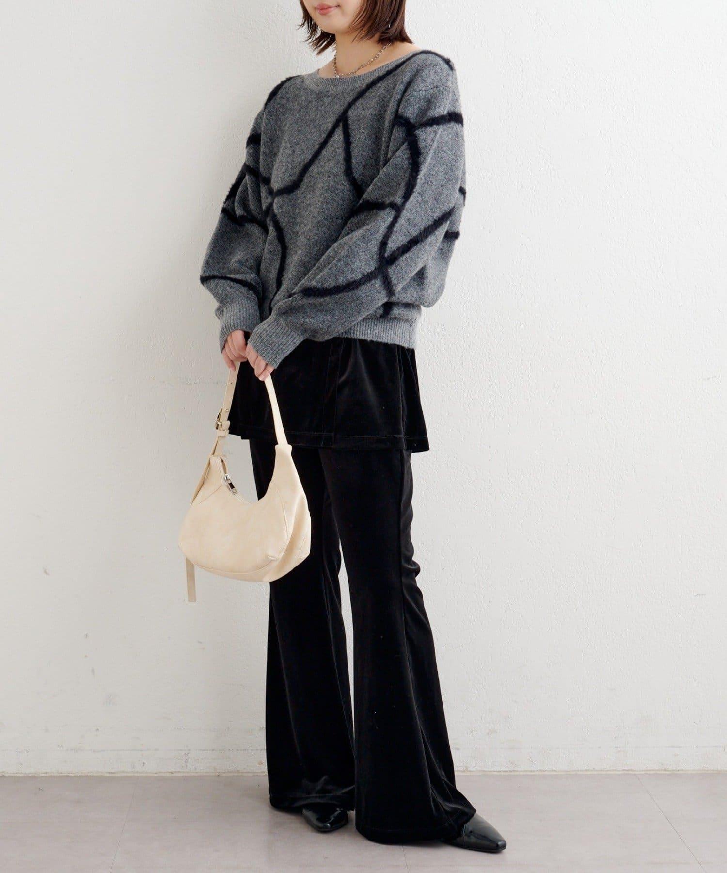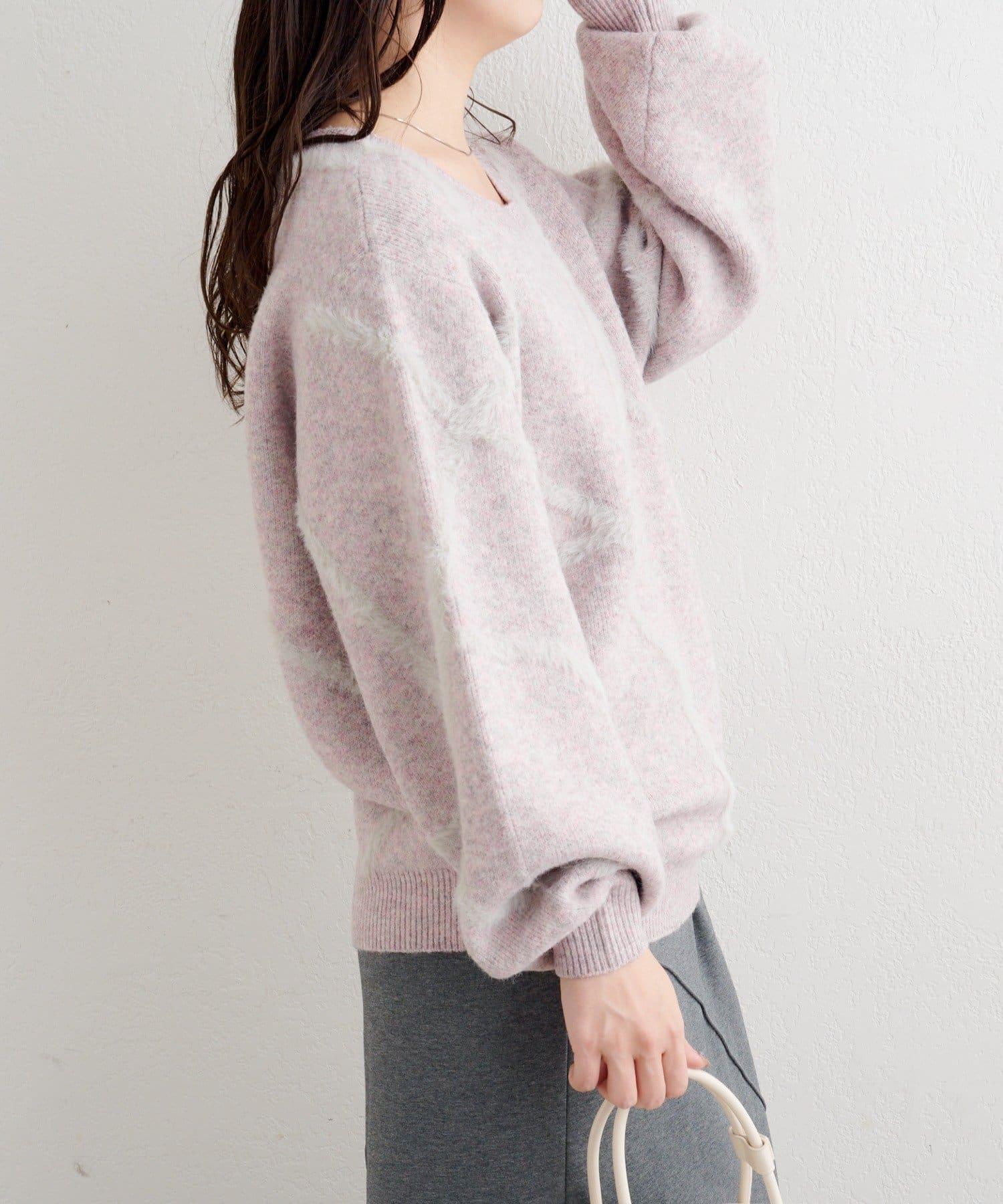 在粗糙的針織面料中加入了不同材質的絨毛線條,讓這款單品既有存在感,又不會過於簡單。