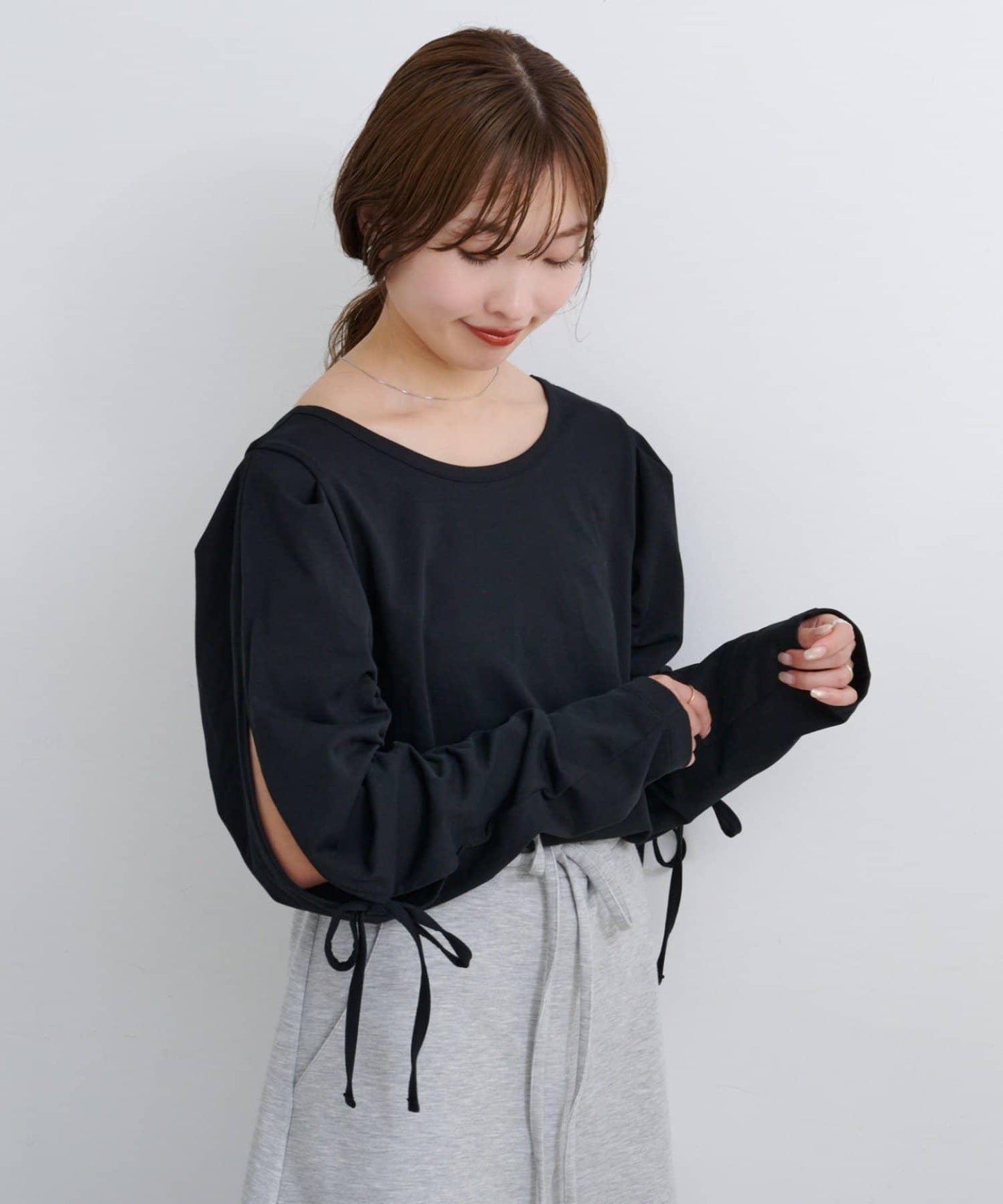 鏤空的袖子和絲帶細節增添了女性氣息。