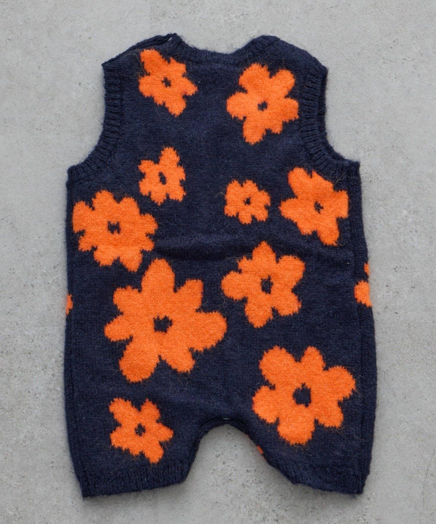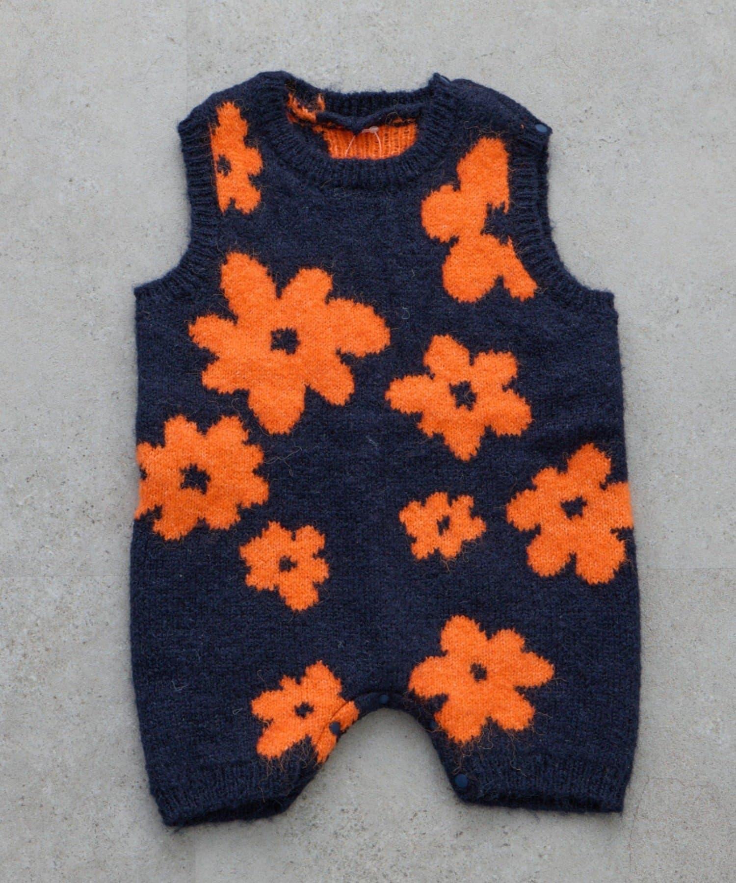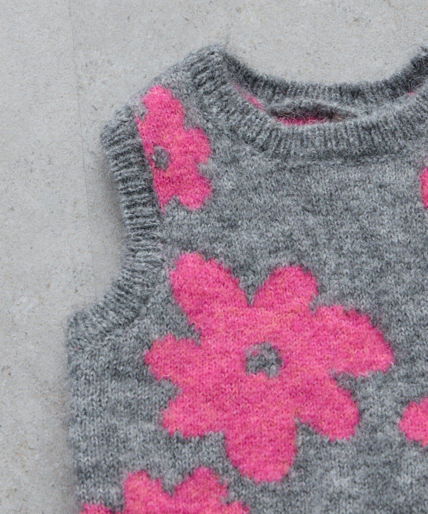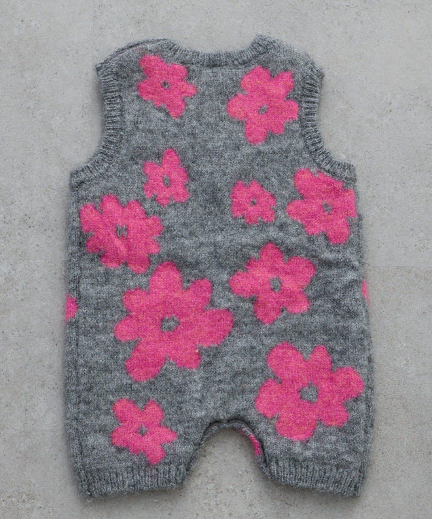 可愛的針織連衣裙上有醒目的花朵圖案。