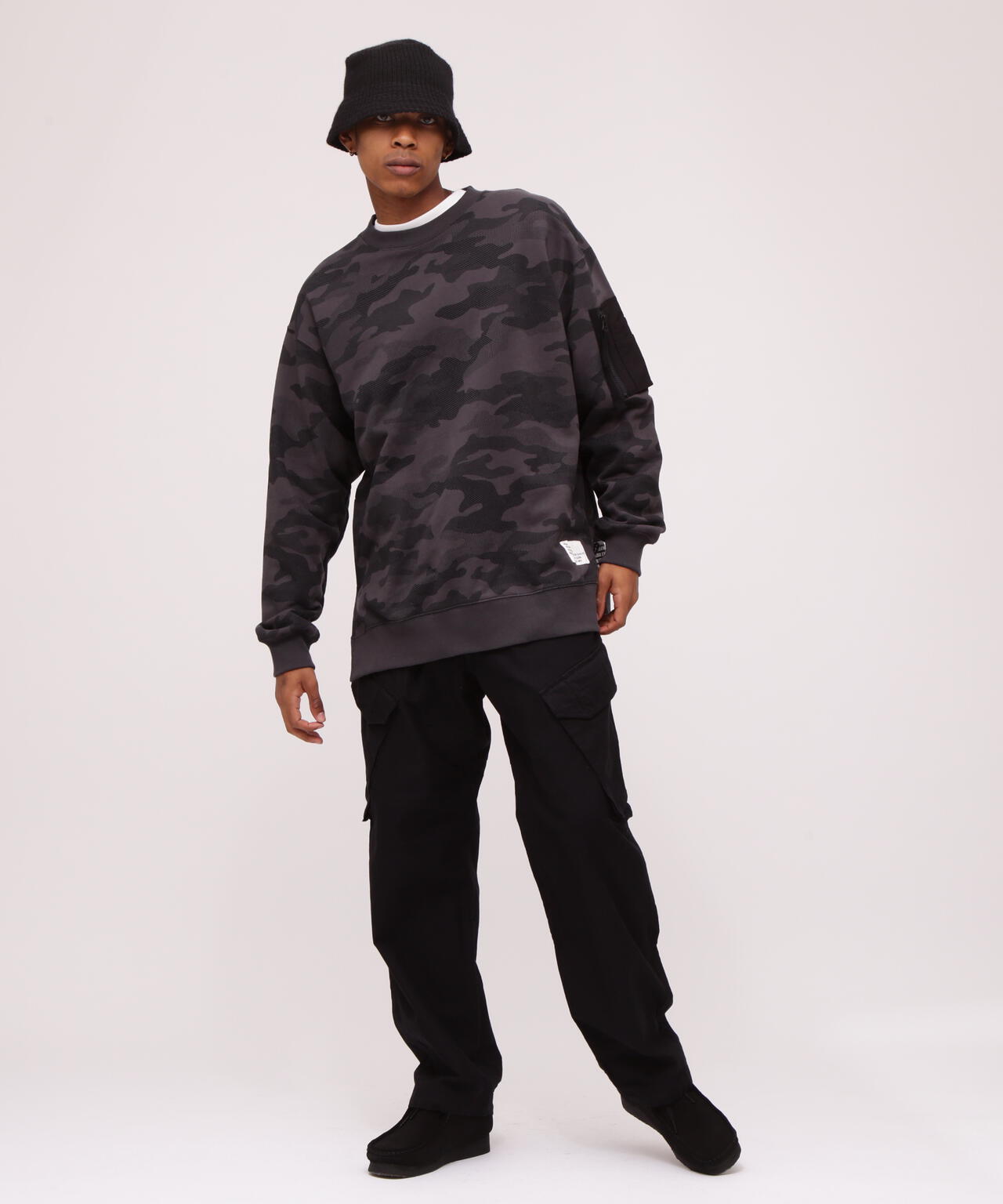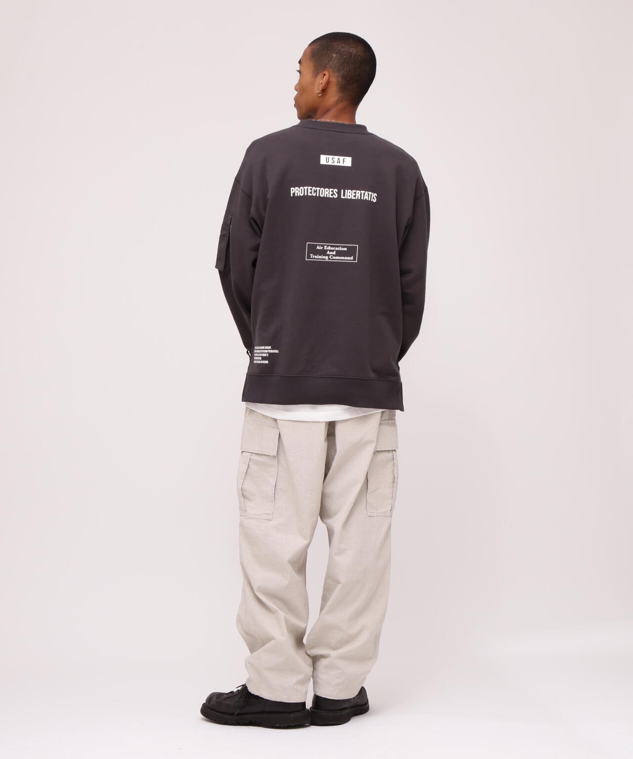 BAGGY FIT MIL. POCKET CREW NECK SWEAT
