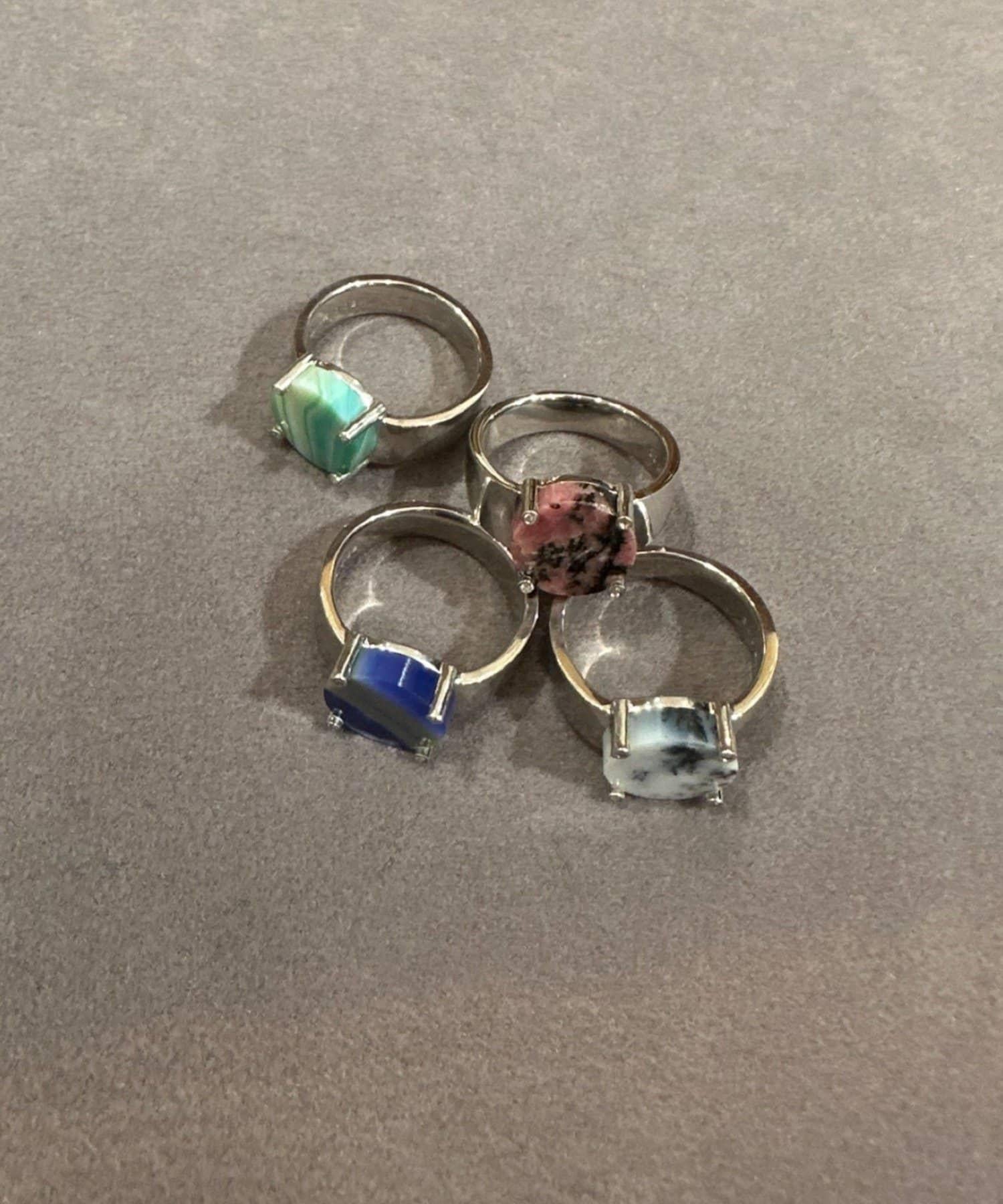 設計師 Ayako Mukasa 設計的珠寶品牌 ±BALANCE 的彩色寶石戒指。