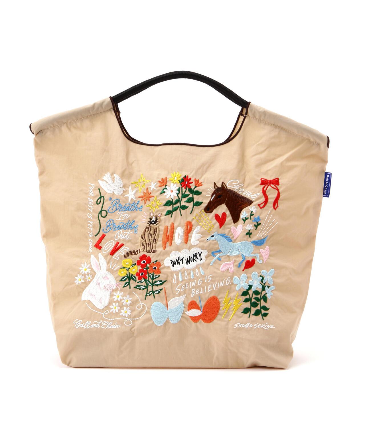 ★SEKINESHOGO系列 ★ 袋由實心聚酯製成。堅固厚實的材料提供了輕便性和穩定性。可摺疊成手掌大小,用附在外賣口的鬆緊帶即可輕鬆裝好。可作為環保袋攜帶,也可在有額外行李時作為副包攜帶,非常方便。建議用於小型購物旅行或作為禮物。將手柄向一側拉出,可作為雙肩包使用。Ball & Chain] BALL & CHAIN 的誕生源於通過設計和產品的力量為世界注入活力的願望。隨著社交媒體的普及,每個人都與他人聯繫在一起。