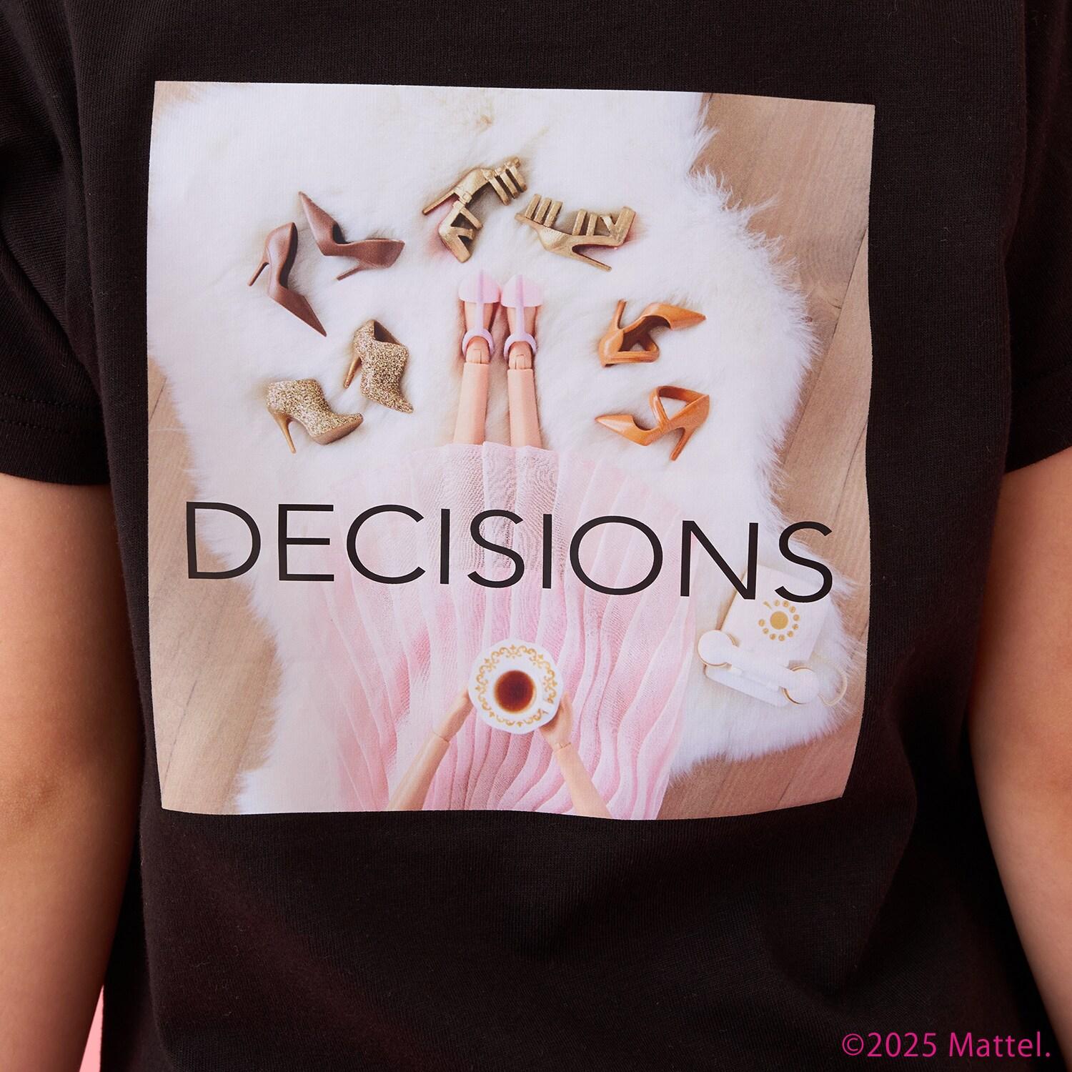 背面印有各種彩色印花,以及 "SUNDAY FUNDAY"、"BUSY TAKING CARE OF ME "和 "DECISIONS "等字樣。