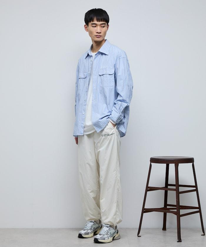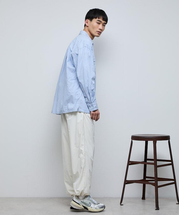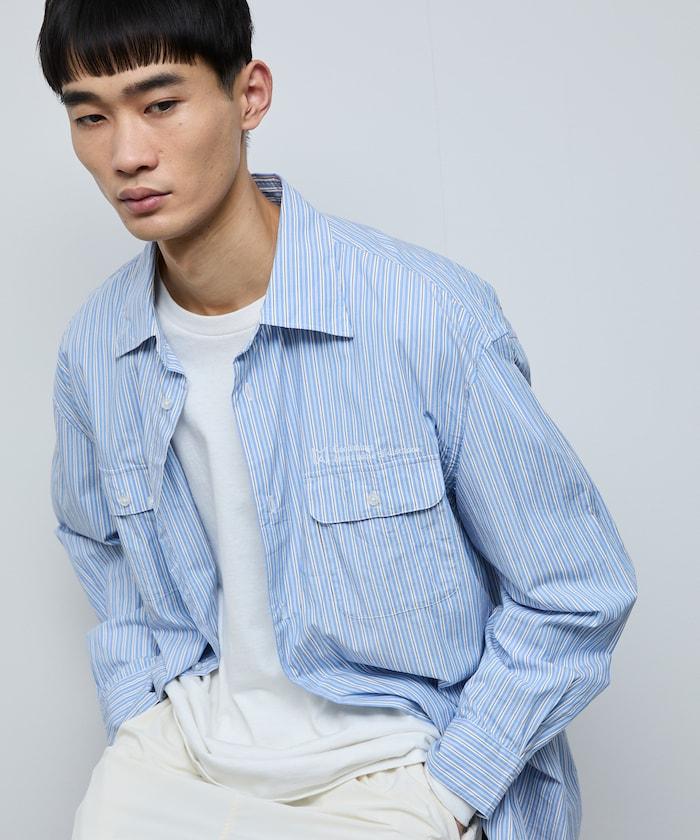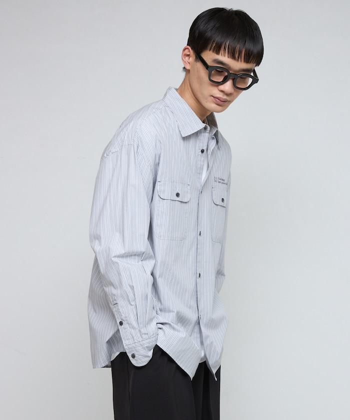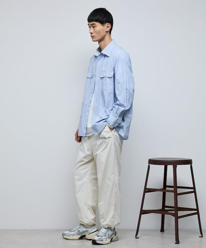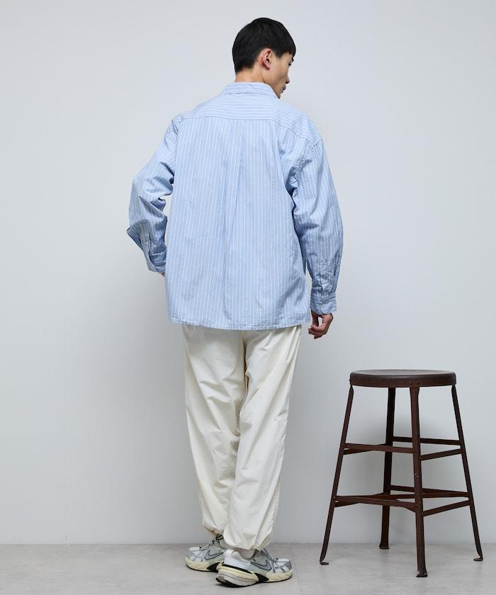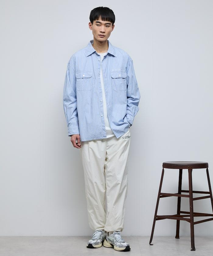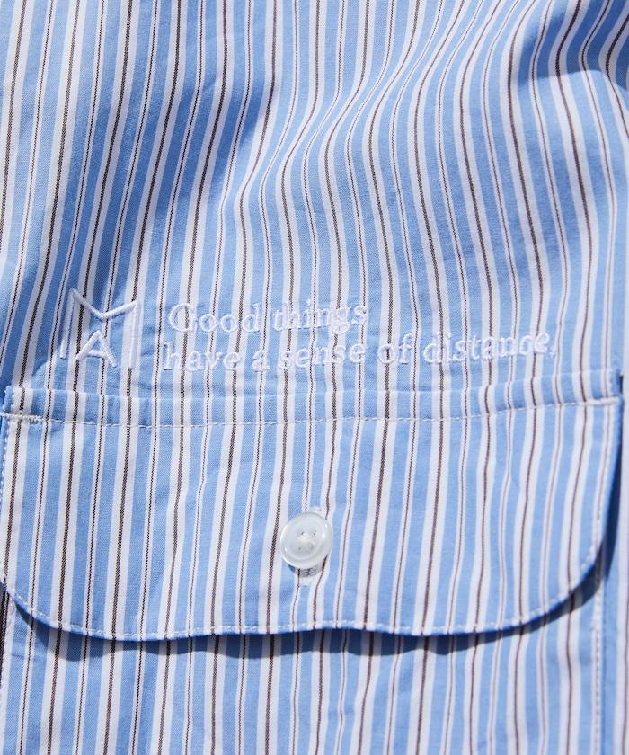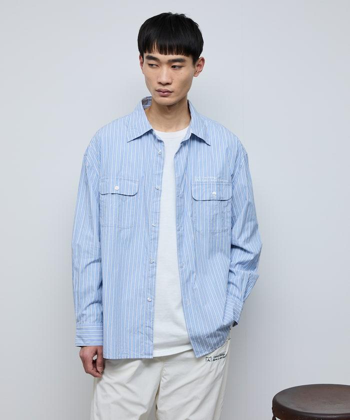 BASIC標誌刺繡寬鬆襯衫 條紋