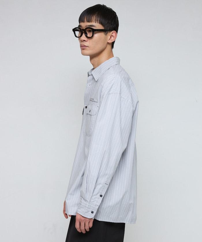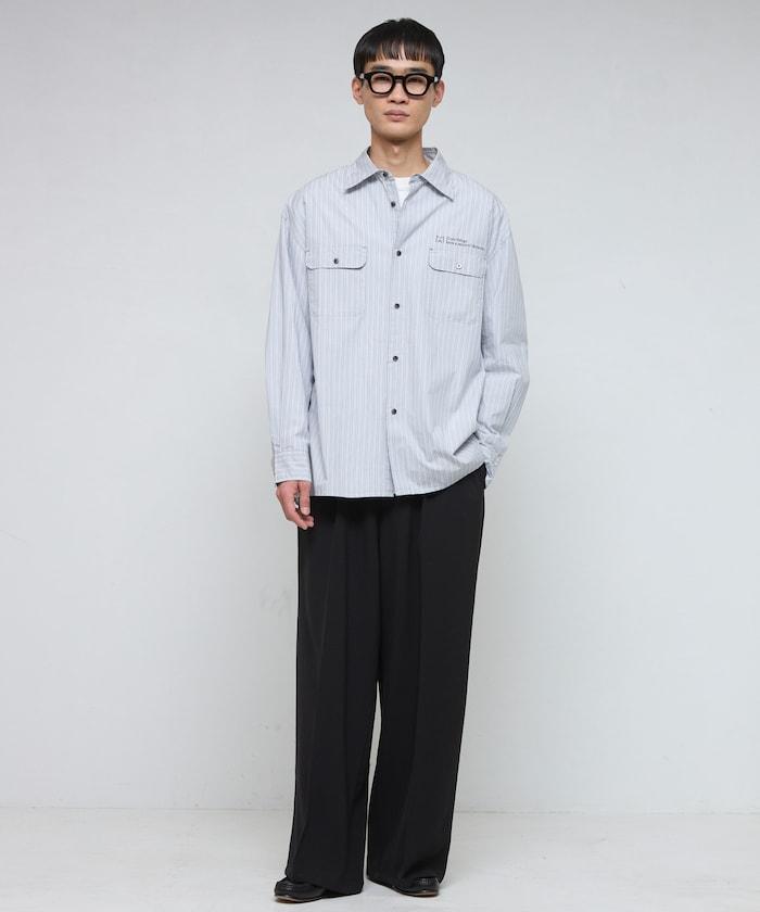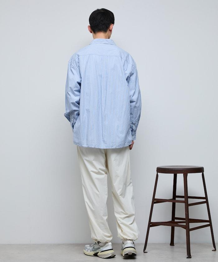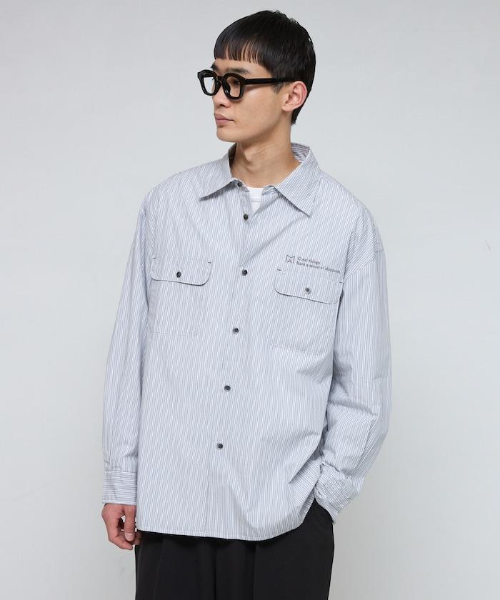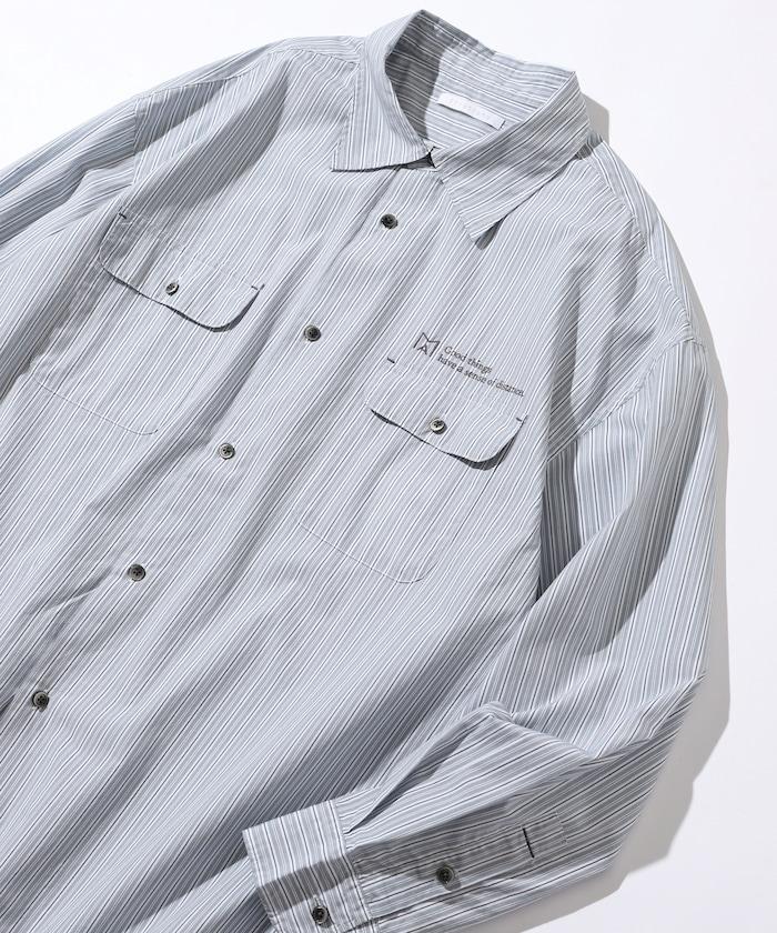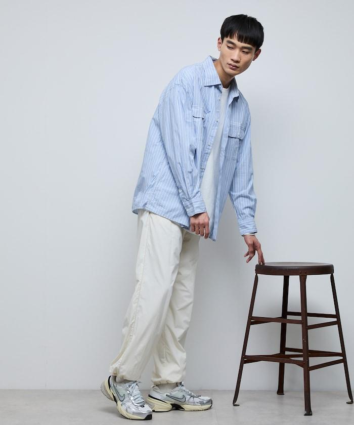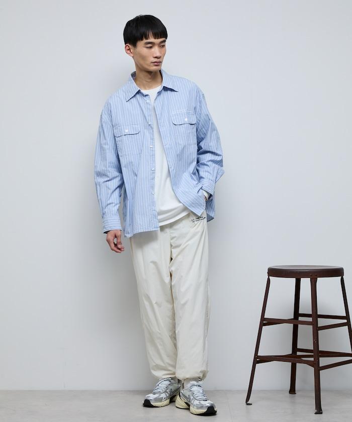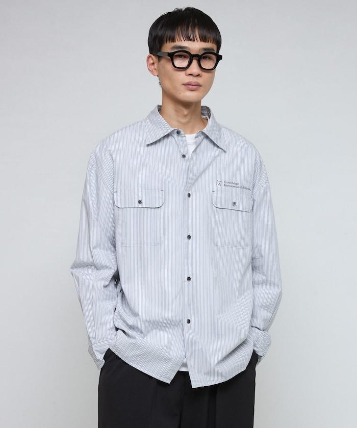 BASIC標誌刺繡寬鬆襯衫 條紋