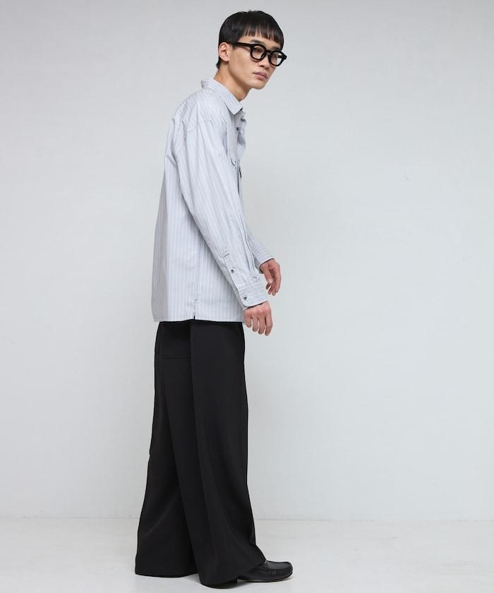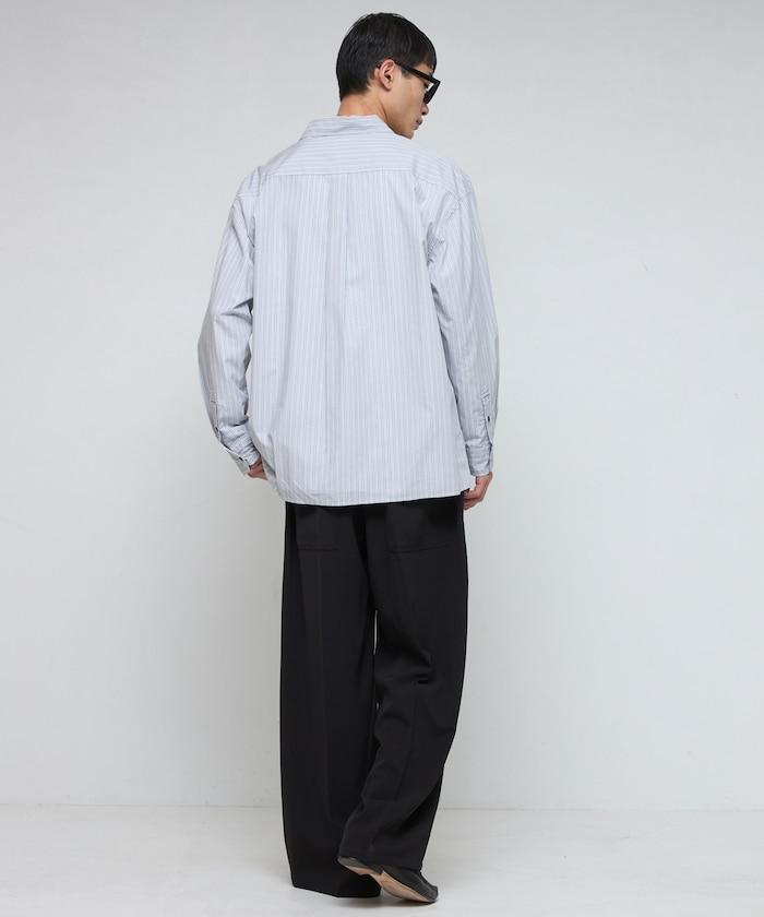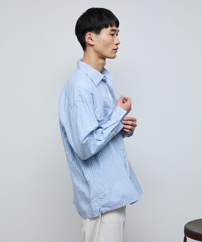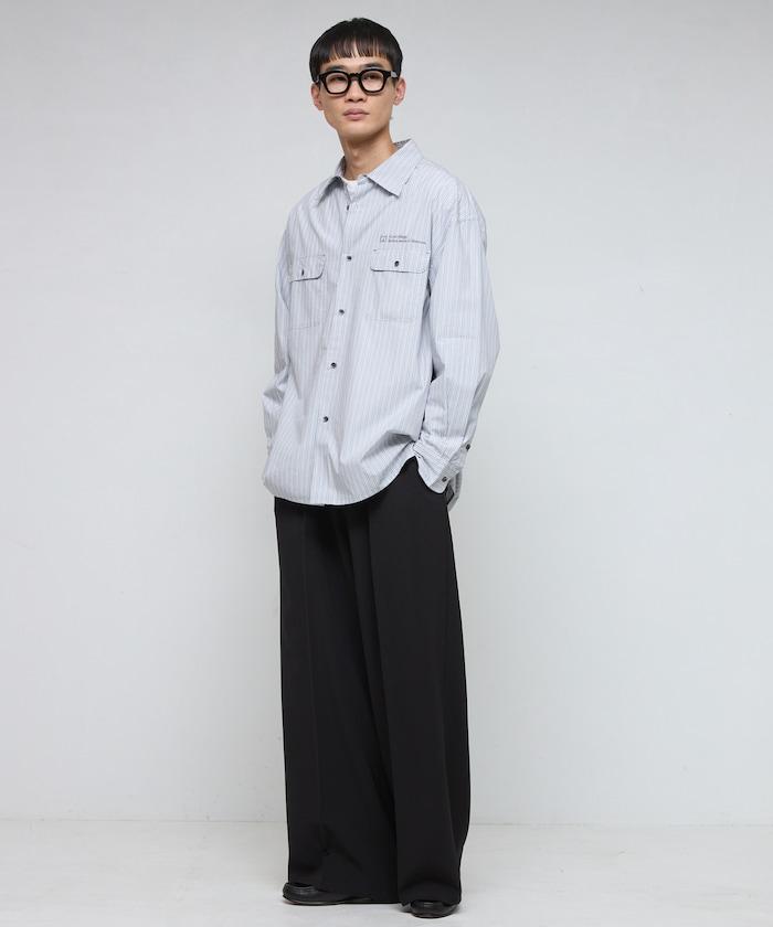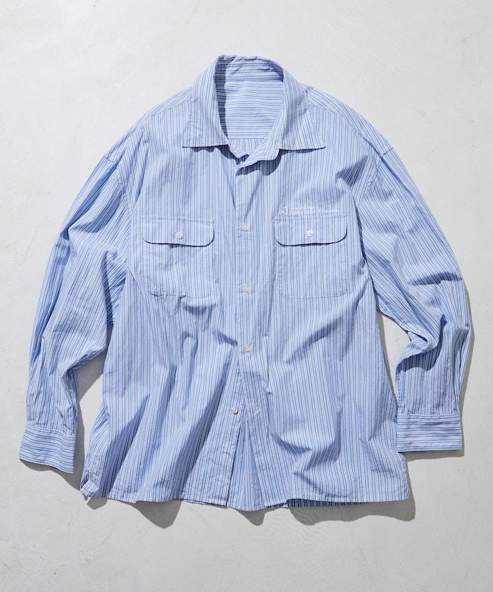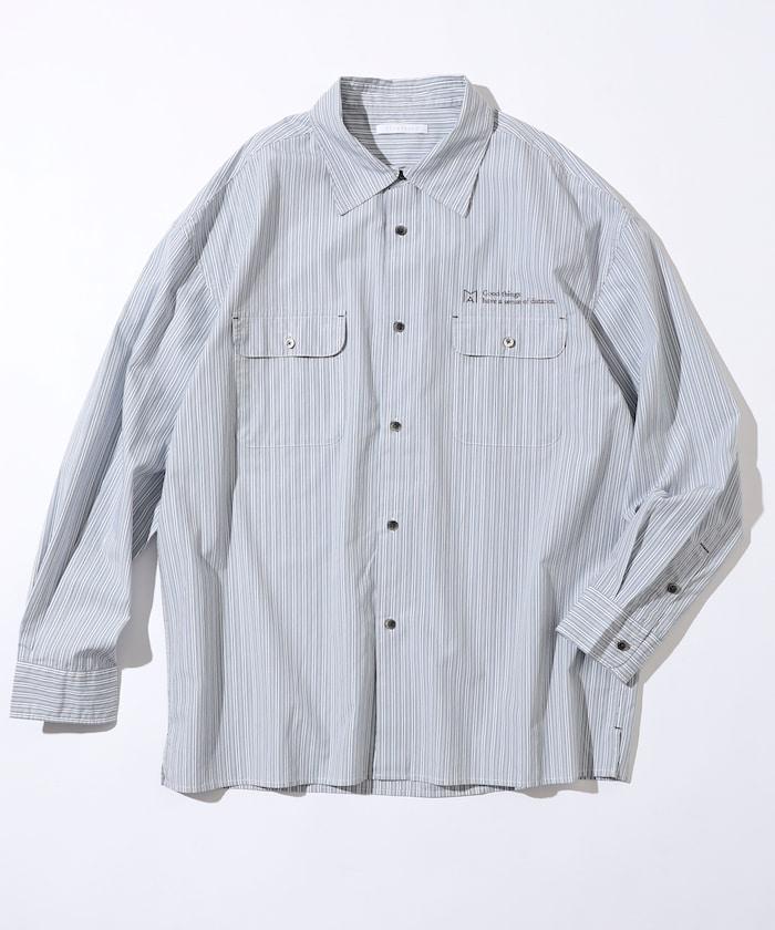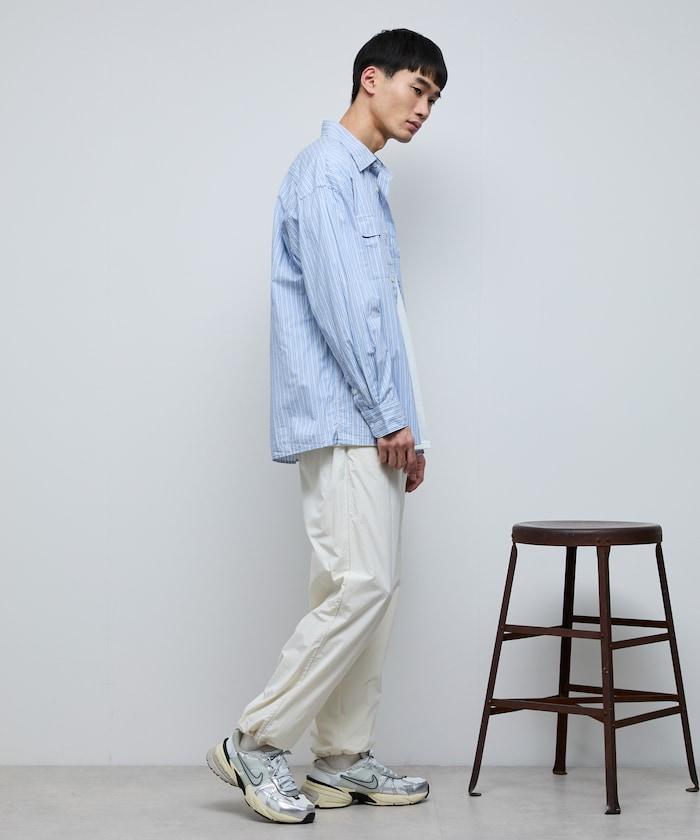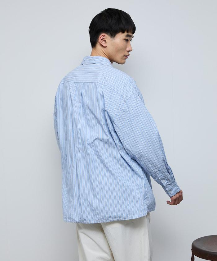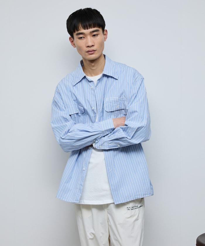 BASIC標誌刺繡寬鬆襯衫 條紋
