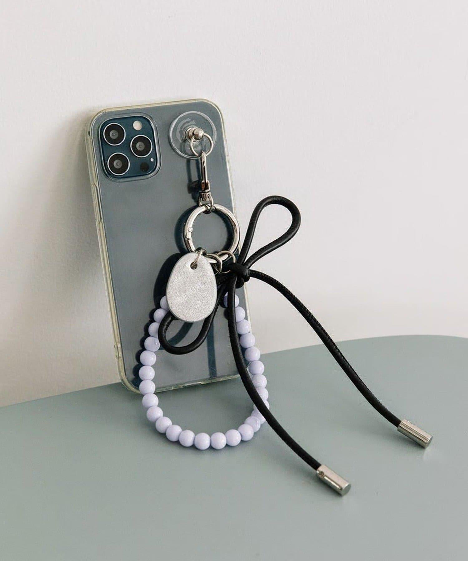 這款成人吊飾並不甜膩,將柔軟漂亮的珍珠串珠與絲帶形狀的皮革相結合。