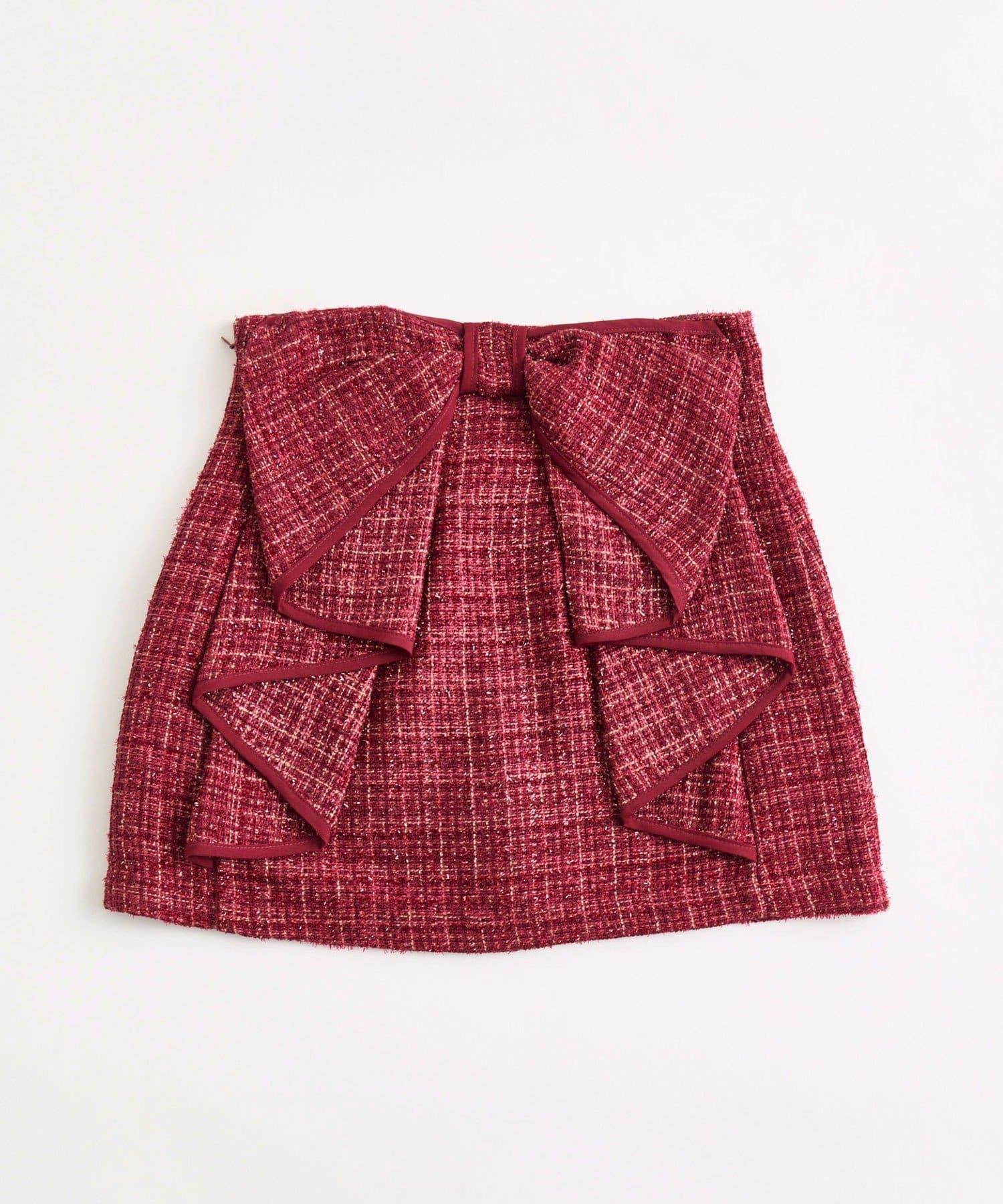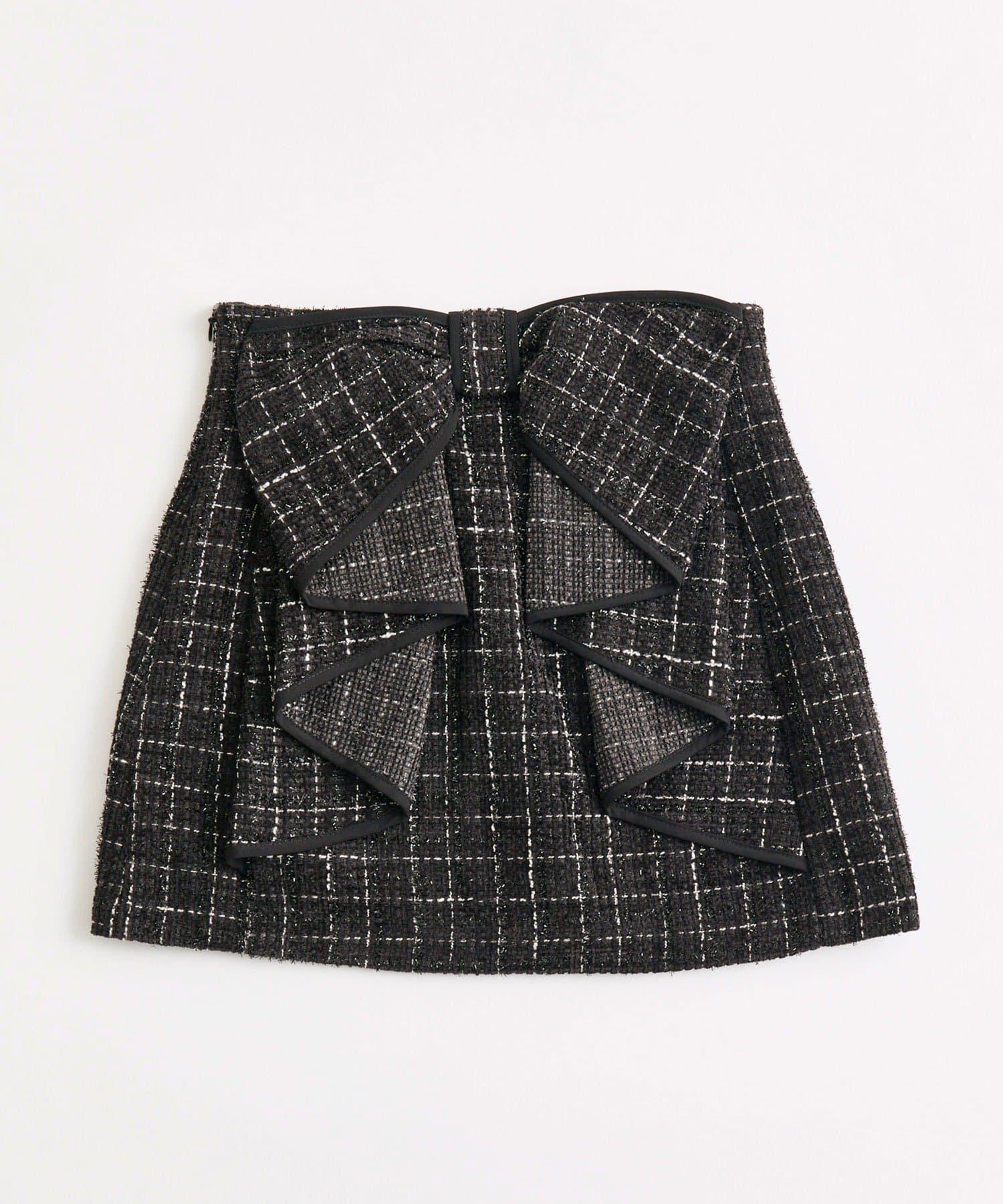 【Belle Charme】蝴蝶結裝飾粗花呢半身裙