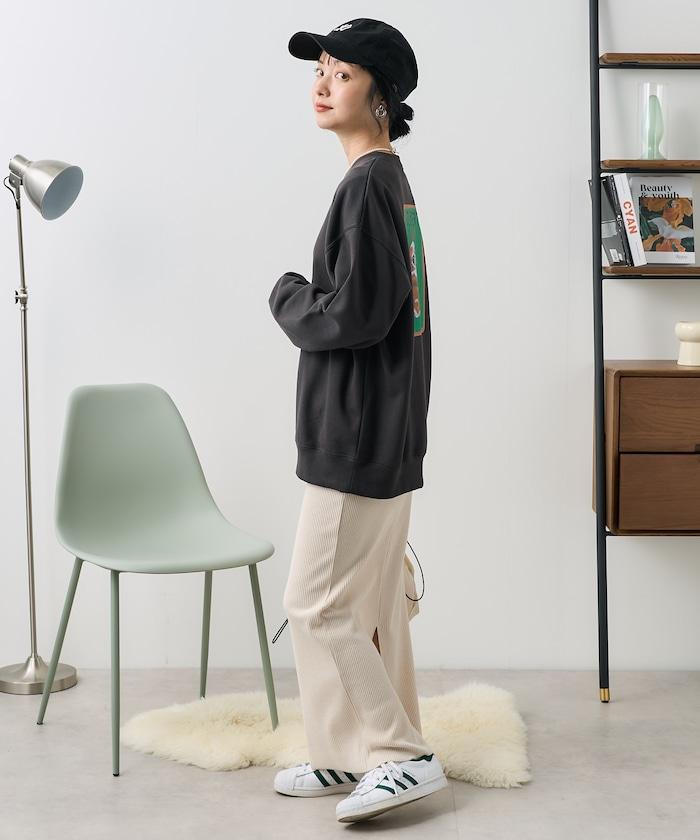 這款運動衫可與長褲搭配出男裝風格,也可與喇叭裙搭配出女性風格。