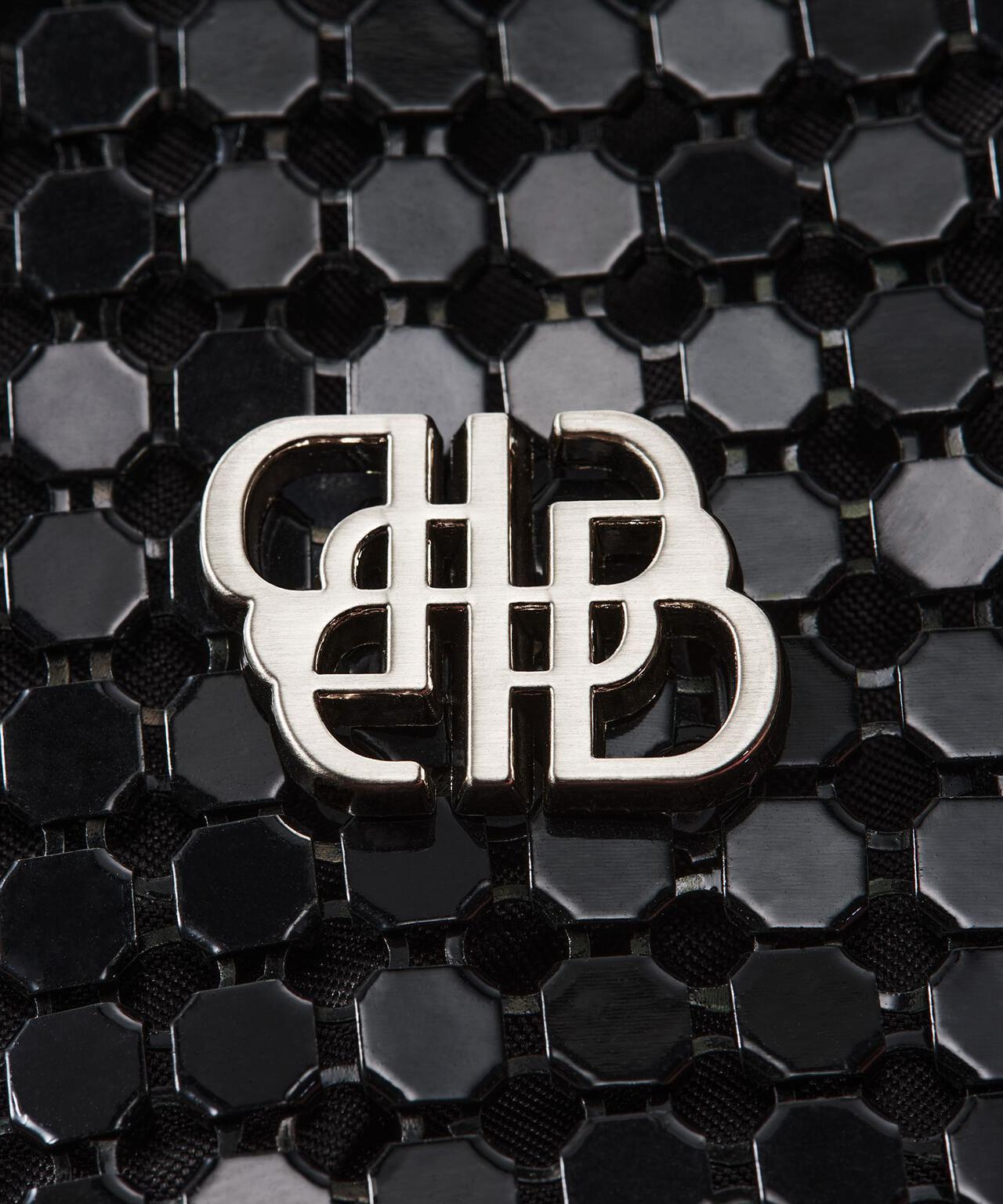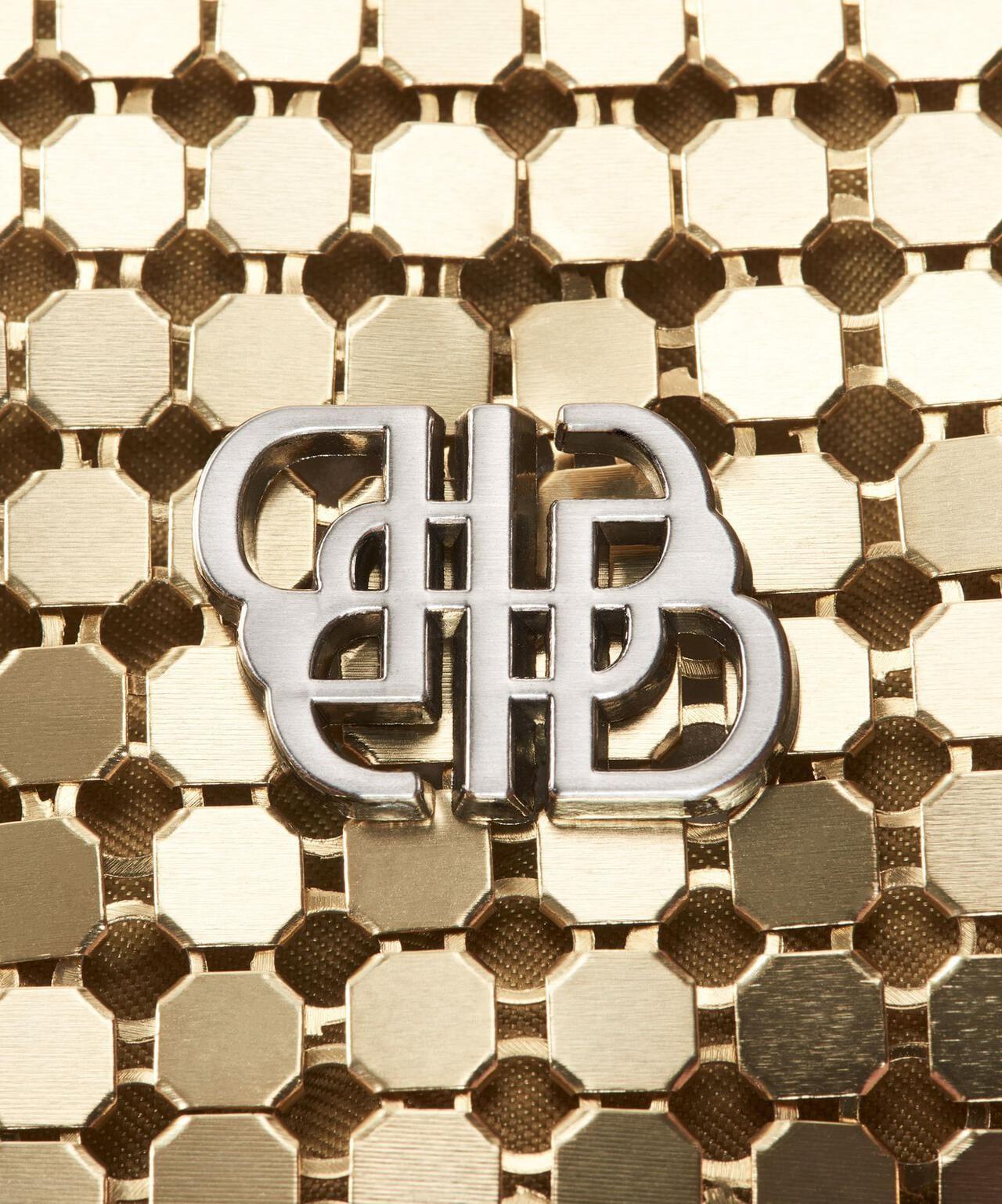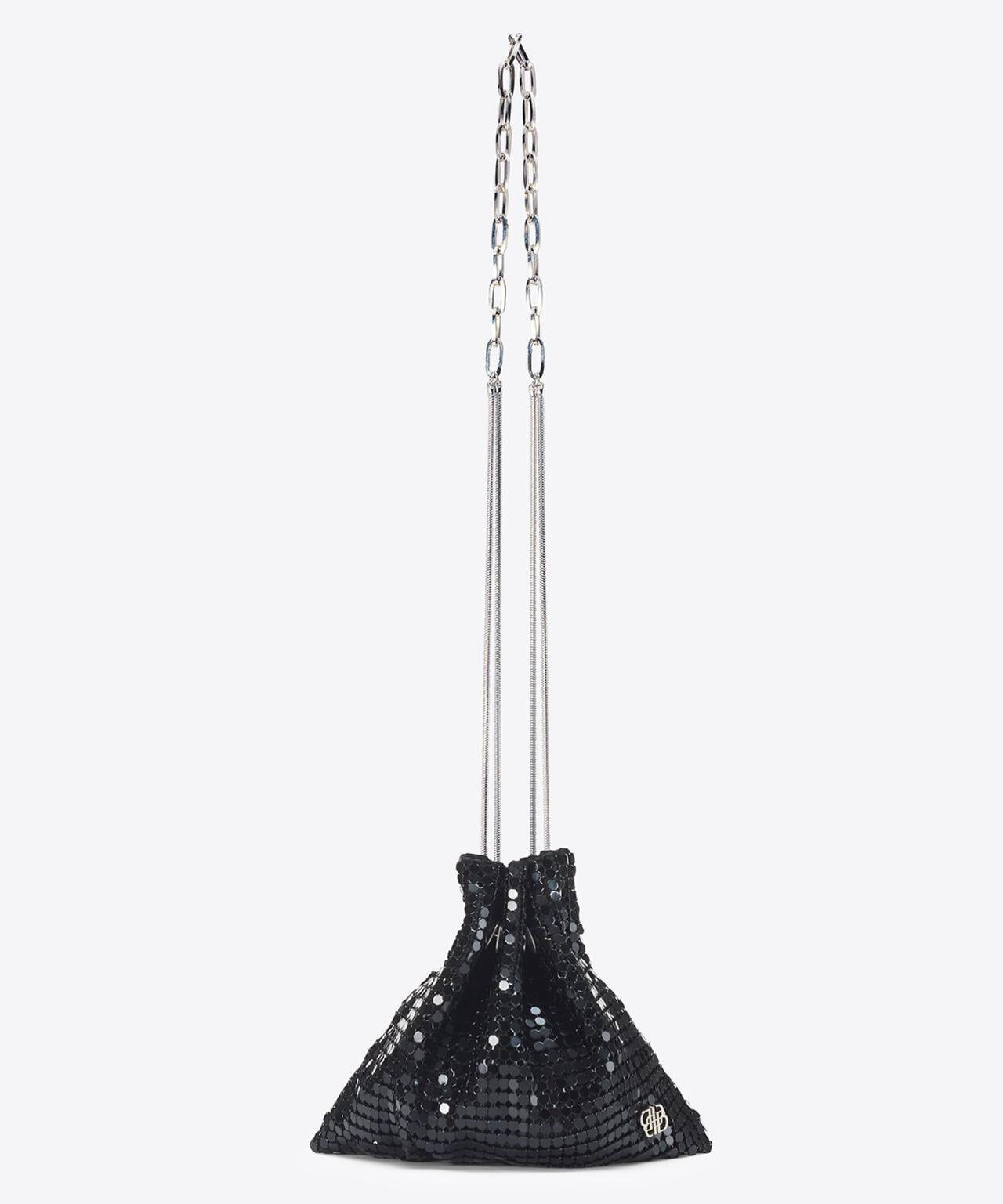 BIGOTRE Bigoter 的標誌性 PURSE METAL MINI 手袋採用亮片裝飾,極具存在感。它可搭配類似扁平包袋的抽繩和收口鏈條使用。肩鏈可長可短。正面下方有品牌標誌。內部設有一個拉鍊口袋,可存放小件物品。小巧的尺寸非常適合極簡主義者,可以攜帶智能手機、迷你錢包、鑰匙包和其他外出必備物品。由於材料的特性,本產品的顏色可能會因摩擦或汗水、雨水等溼氣而偏移。此外,本產品所使用的材料和裝飾配件都非常精緻。有可能因撞擊等原因造成損壞,因此請勿摘下。