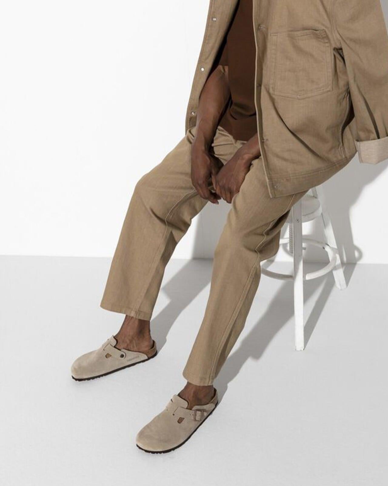 BIRKENSTOCK/BOSTON/麂皮皮革 - 淺褐色