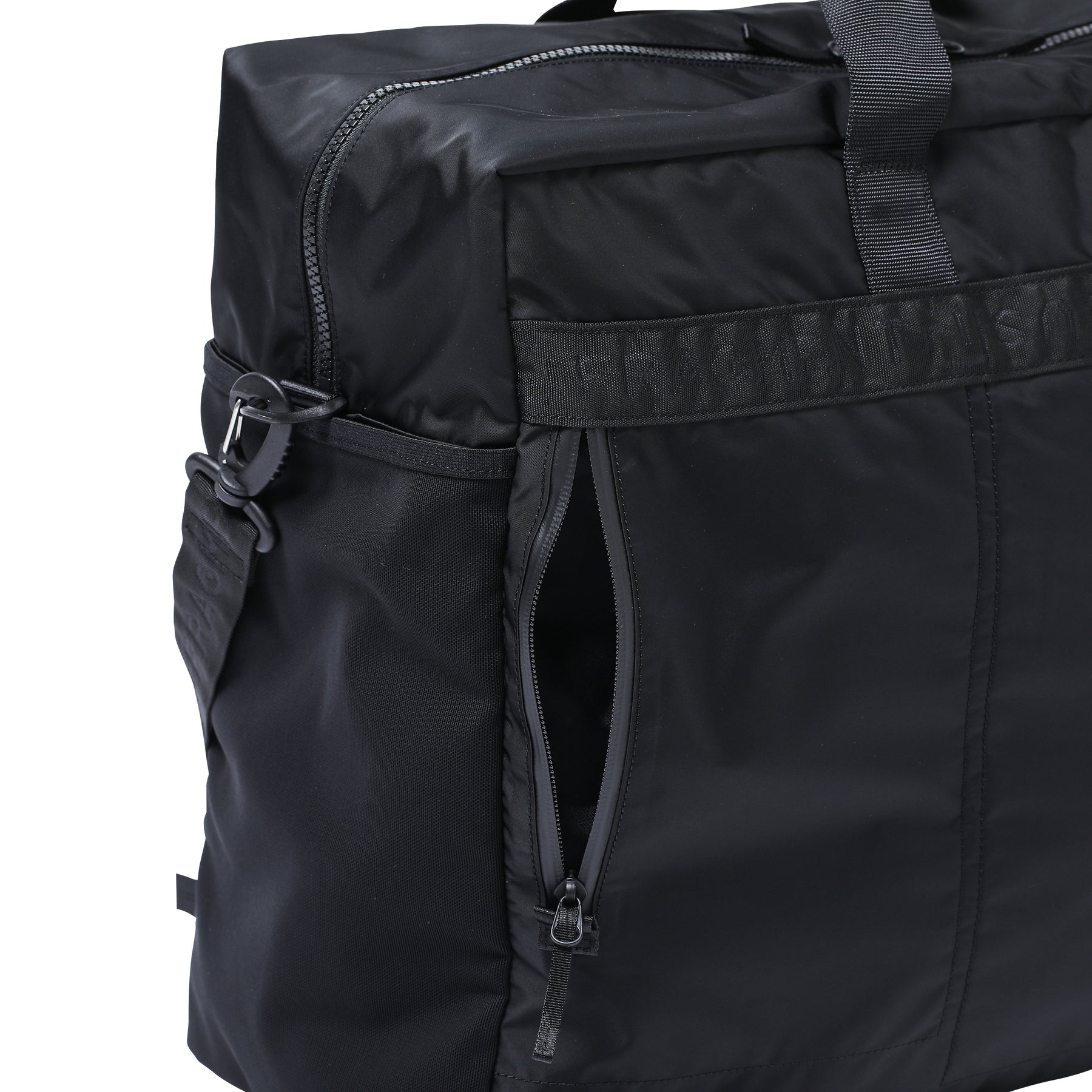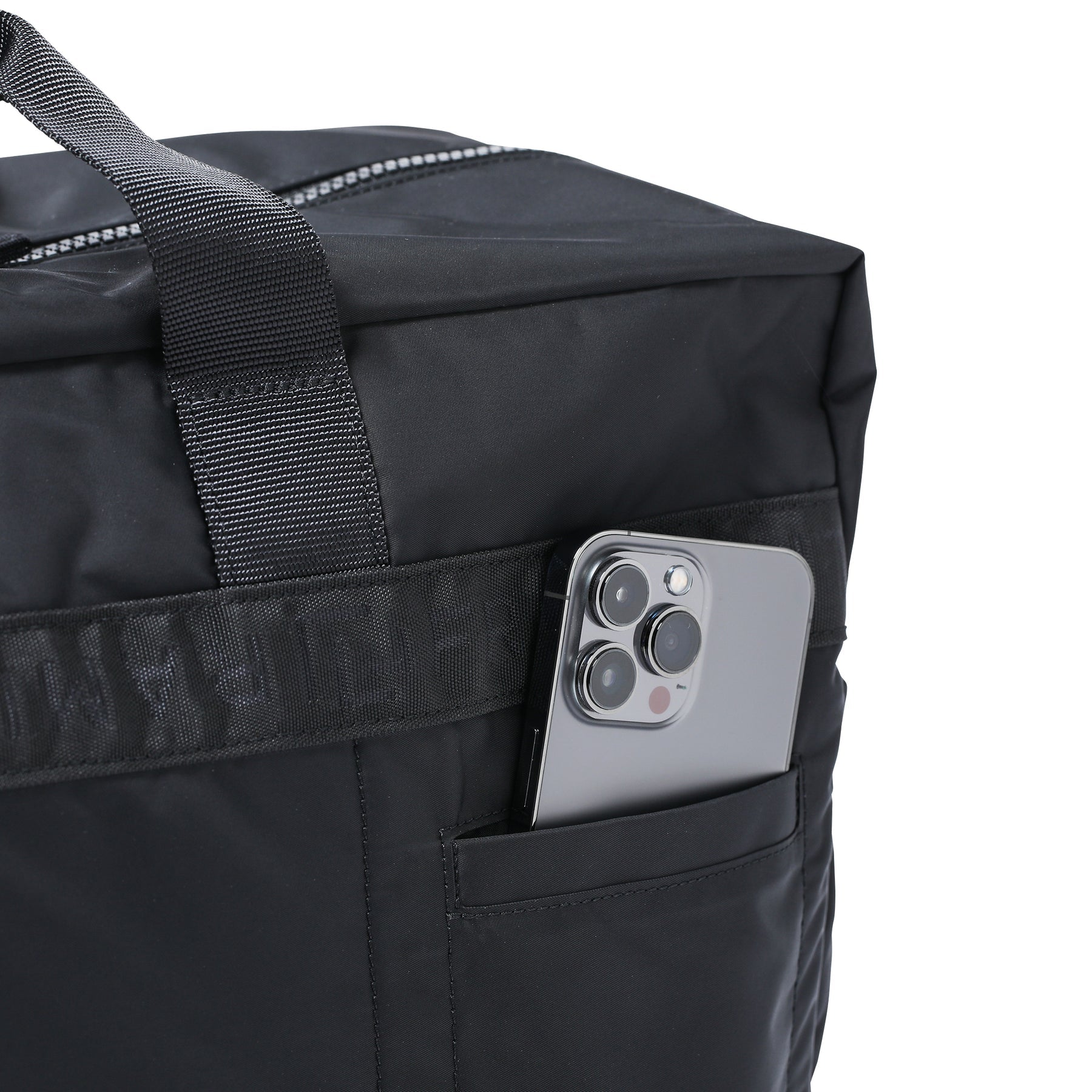 旅行包專為短途旅行設計,可靈活用作手提包或肩揹包。 主隔層設計為一個隔層,便於打包和查看。正面為全開拉鍊口袋,背面有兩個口袋,可放置智能手機和小件物品。一側口袋可放置肩帶,方便智能手持設備使用。Fragment 設計系列,正面、背面和肩帶上均印有兩個品牌的徽標帶。隨身行李尺寸,適用於國內航班。根據飛機座位數,可能無法攜帶登機。詳情請諮詢航空公司。